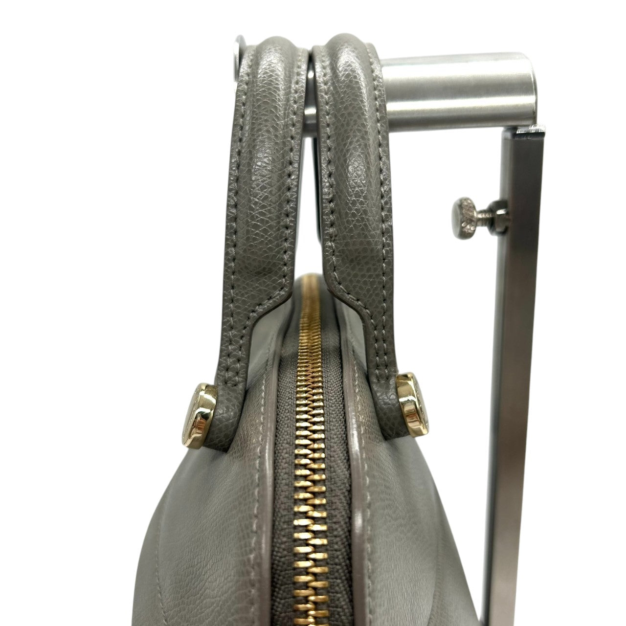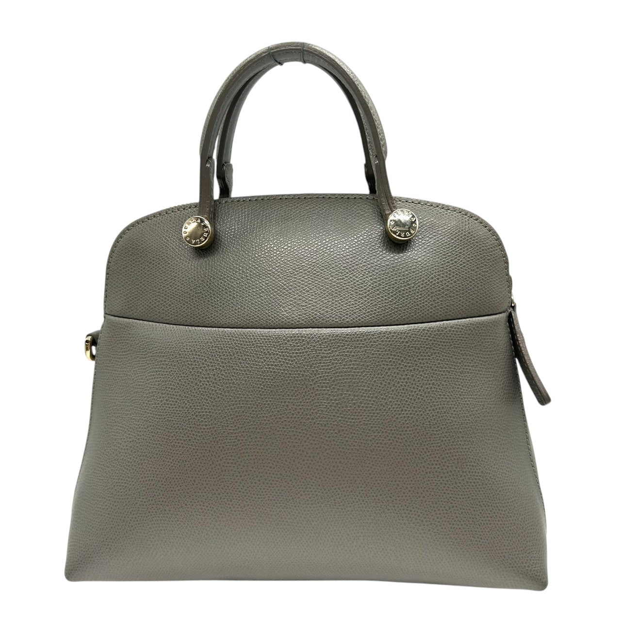 【美品】FURLA フルラ パイパー 2WAY ハンドバッグ ショルダーバッグ Mサイズ 斜め掛け可 自立可 ドーム型 本革 レザー グレー系 ゴールド金具 パドロックチャーム付き レディース ビジネス 通勤通学 エレガント クリーニング済み s57