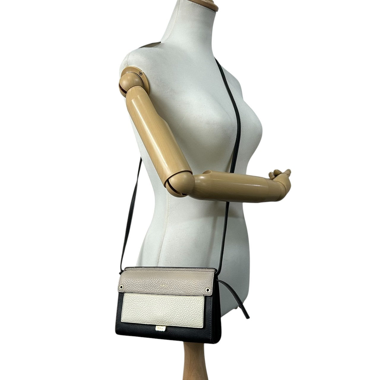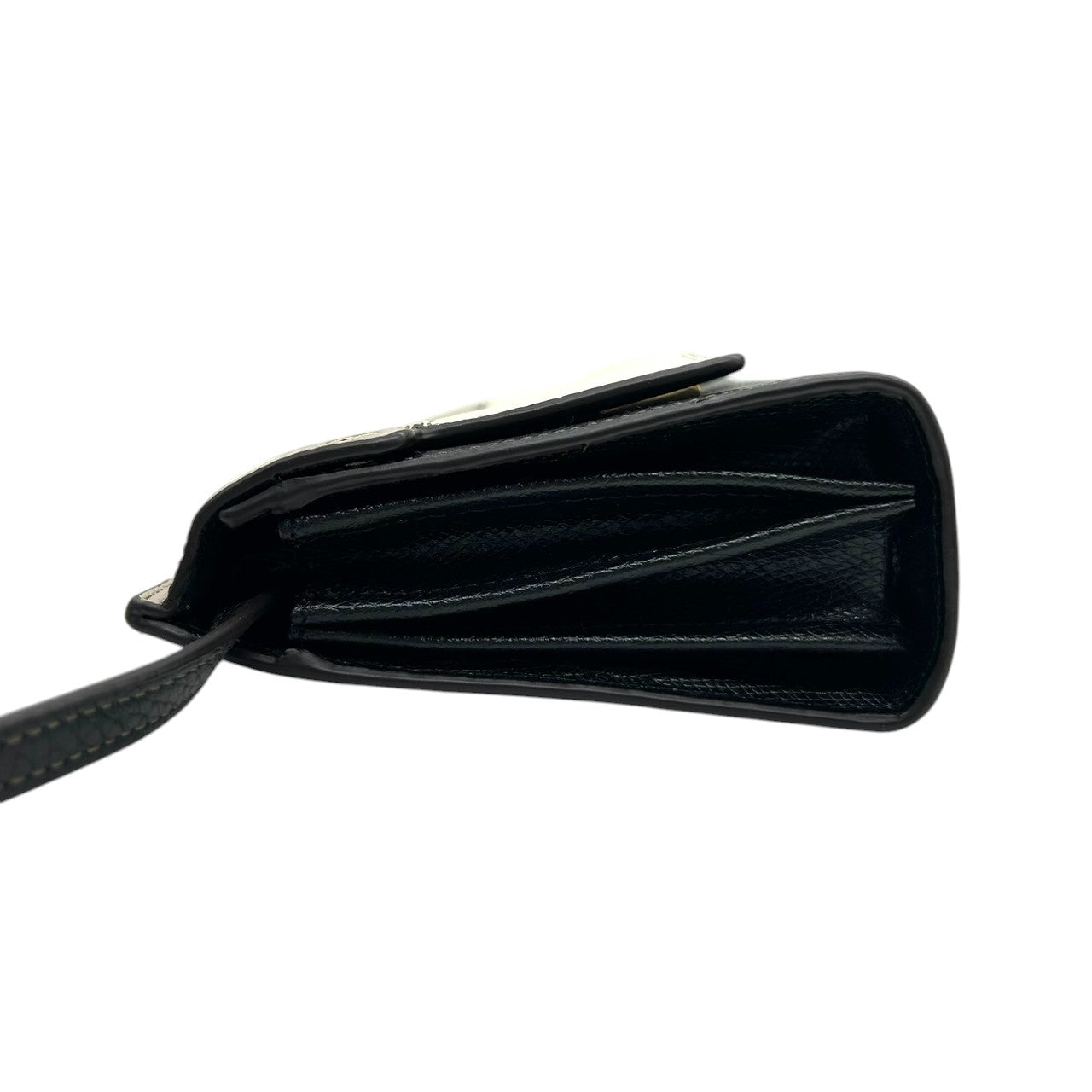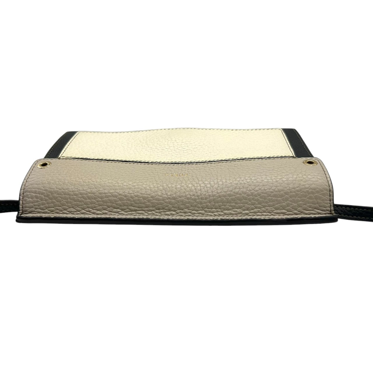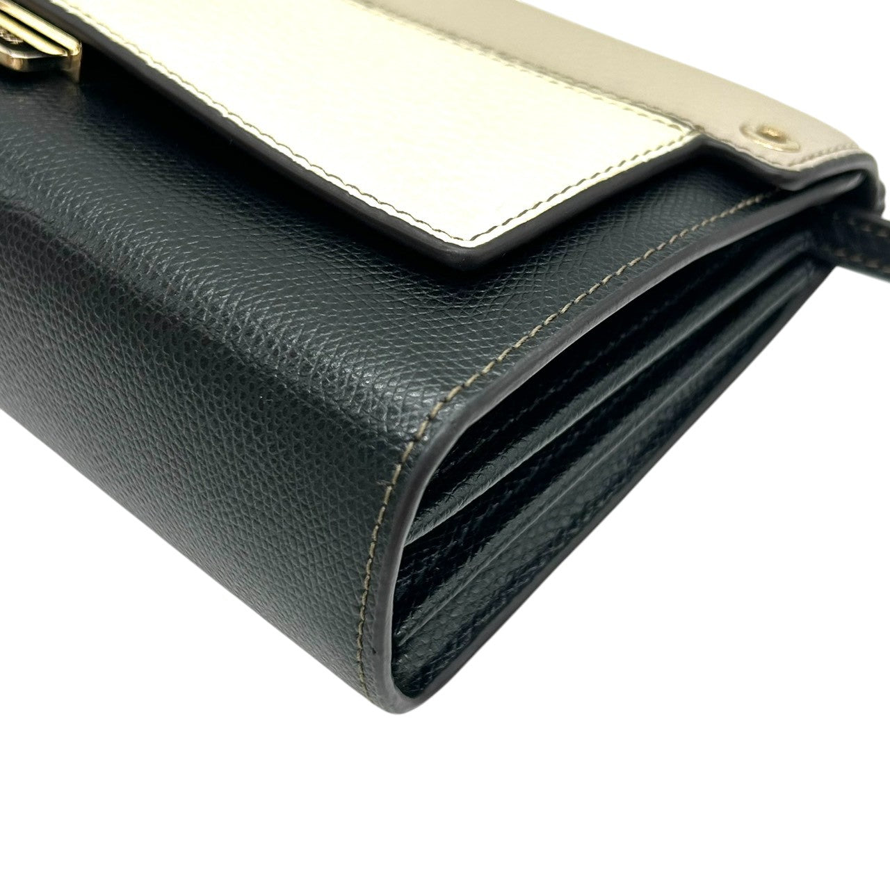 【未使用級/美品】FURLA フルラ ショルダーウォレット お財布ポシェット 2WAY クラッチバッグ 斜め掛け可 本革 レザー トリコロール ブラック グレー アイボリー ゴールド金具 カード多数収納 レディース 人気モデル クリーニング済み s57