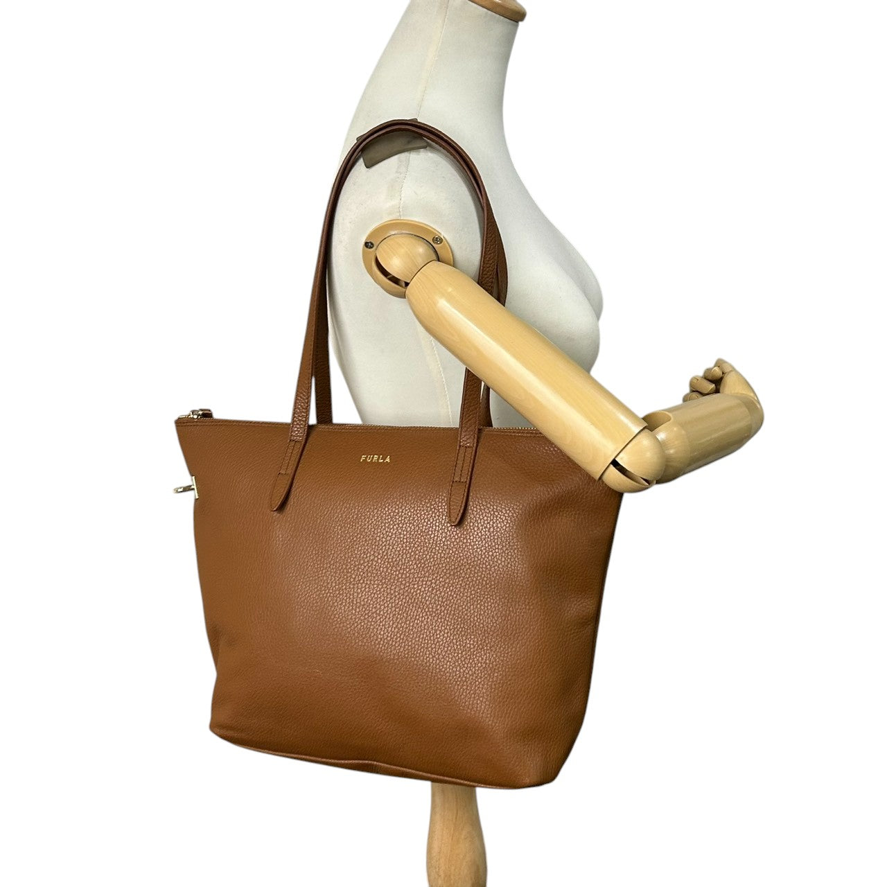 【未使用級/美品】FURLA フルラ トートバッグ ルーチェ ワンショルダー A4収納可 自立可 大容量 本革 ペブルドレザー ブラウン キャメル系 ゴールド金具 レディース ビジネスバッグ 通勤通学 エレガント 人気モデル クリーニング済み s57