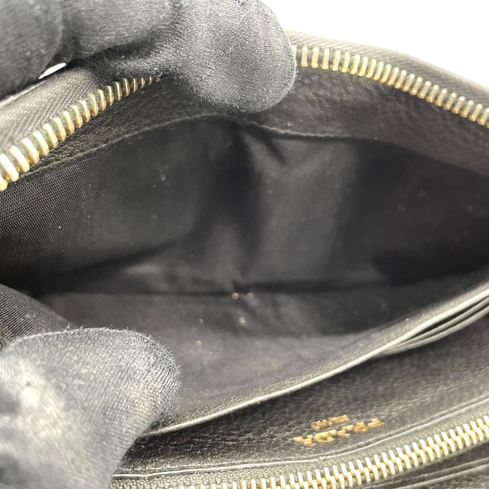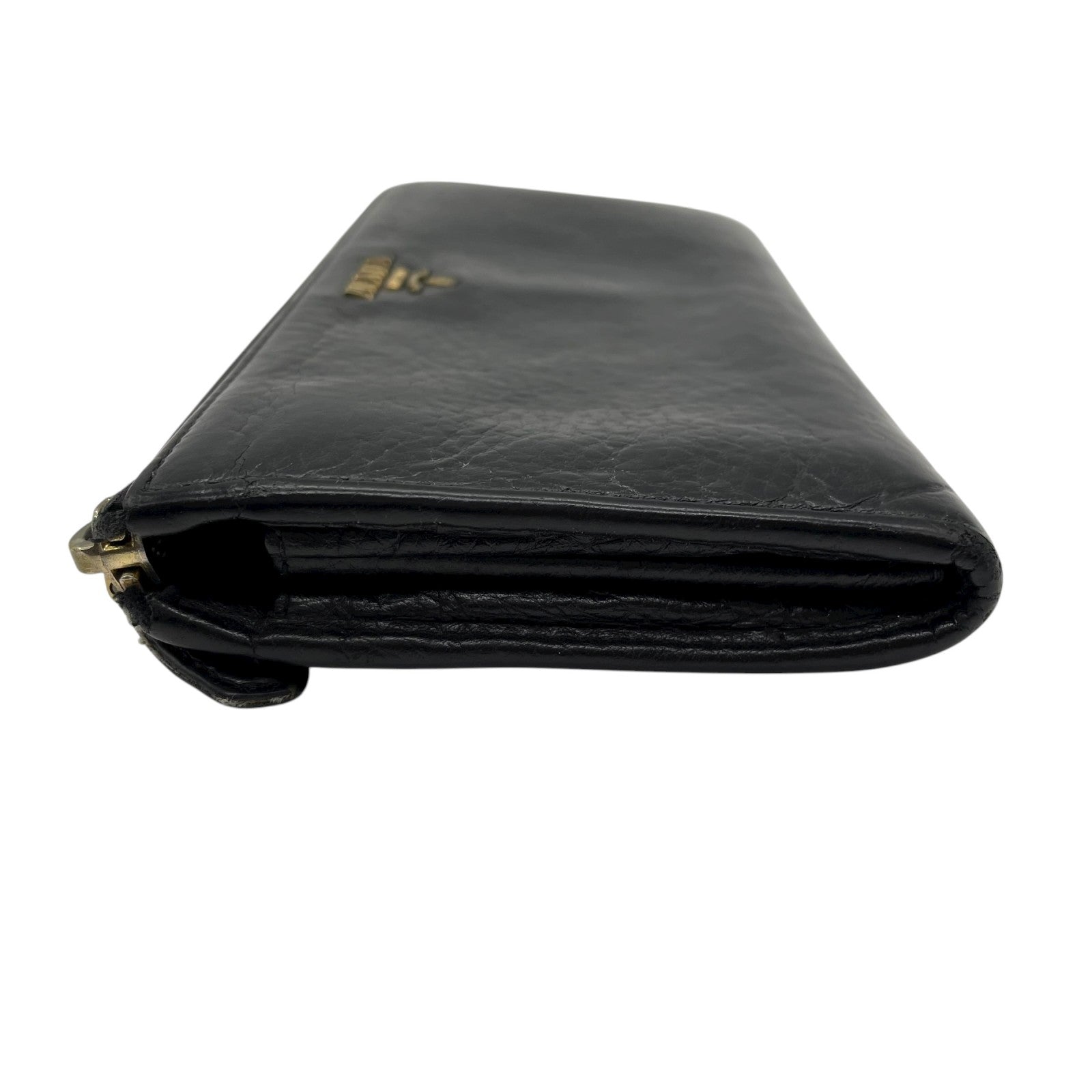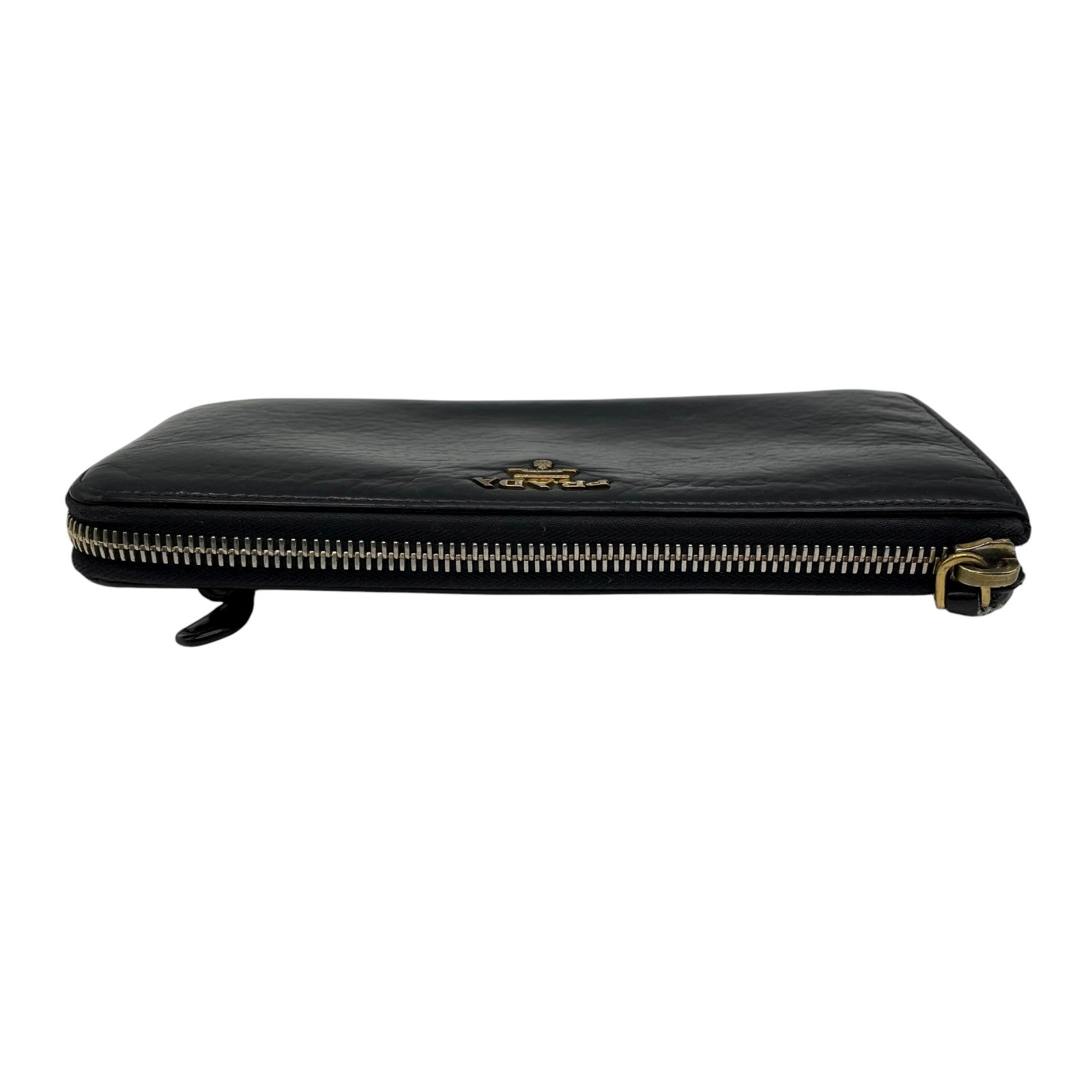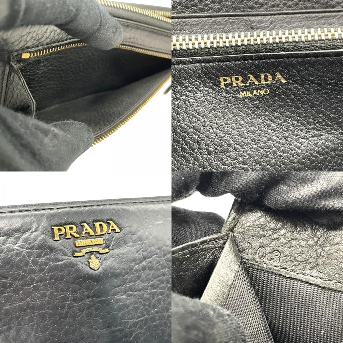 プラダ PRADA レザー ラウンドファスナー 長財布 黒 ブラック 金金具 ゴールドロゴ L字ファスナー 本革 ジップアラウンドウォレット M5