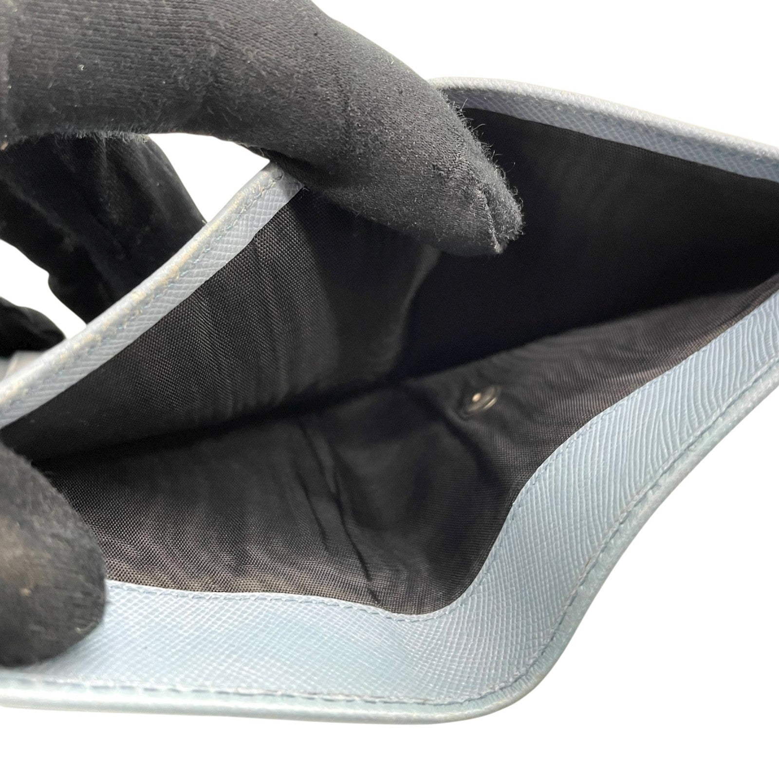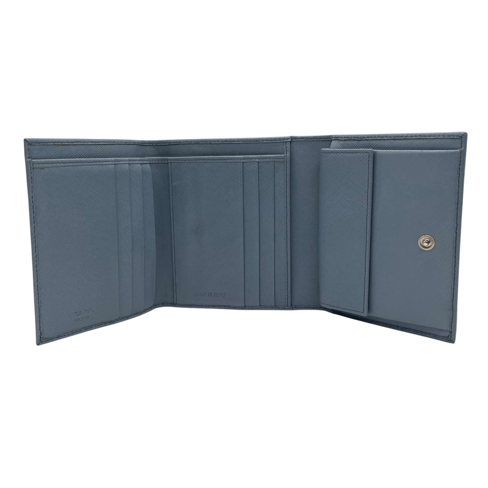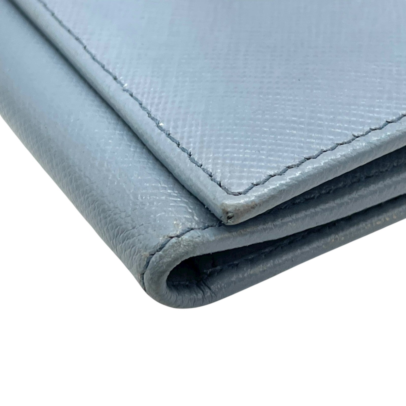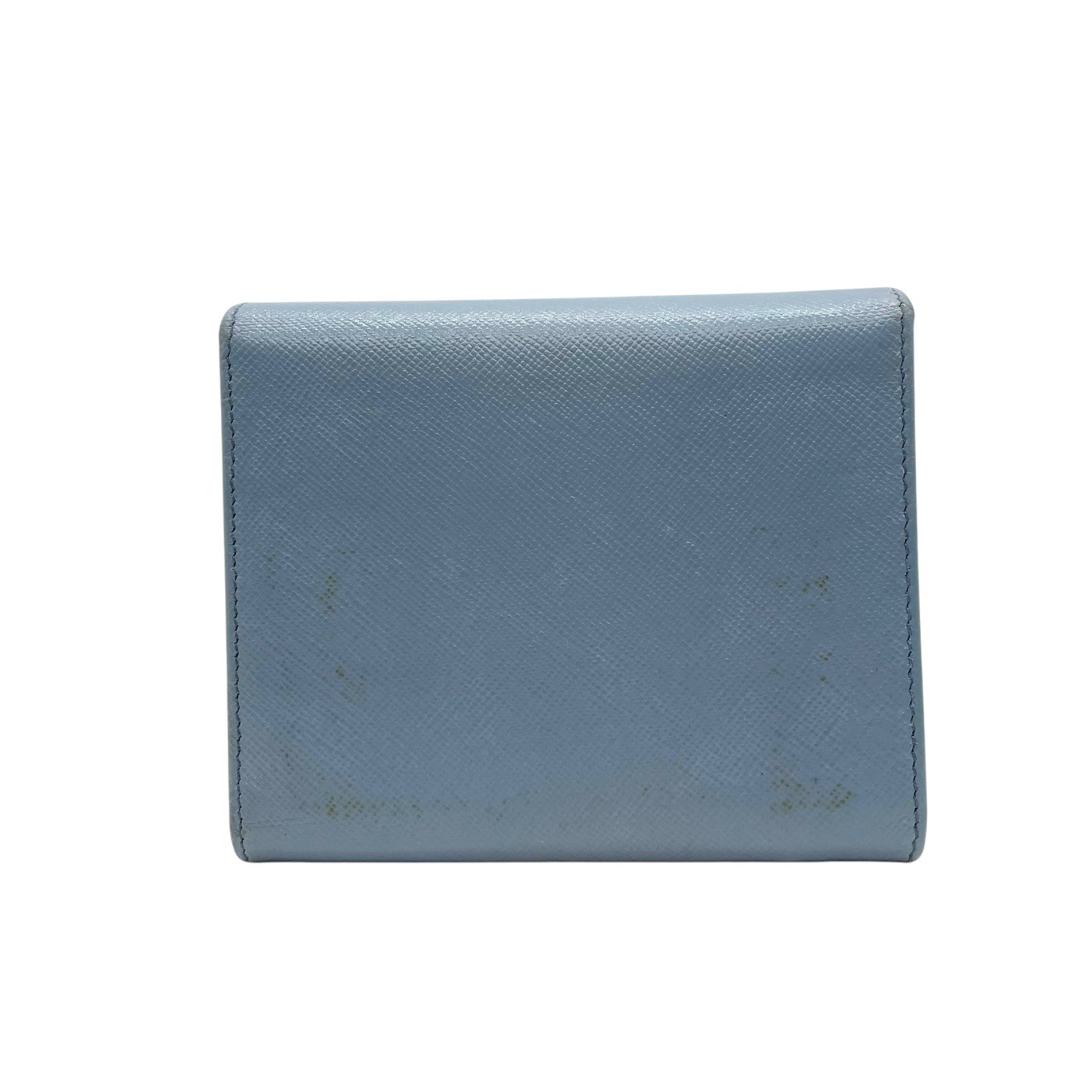 美品 プラダ PRADA サフィアーノレザー 二つ折り財布 トライアングルロゴ 水色 ライトブルー レディース コンパクトウォレット M5