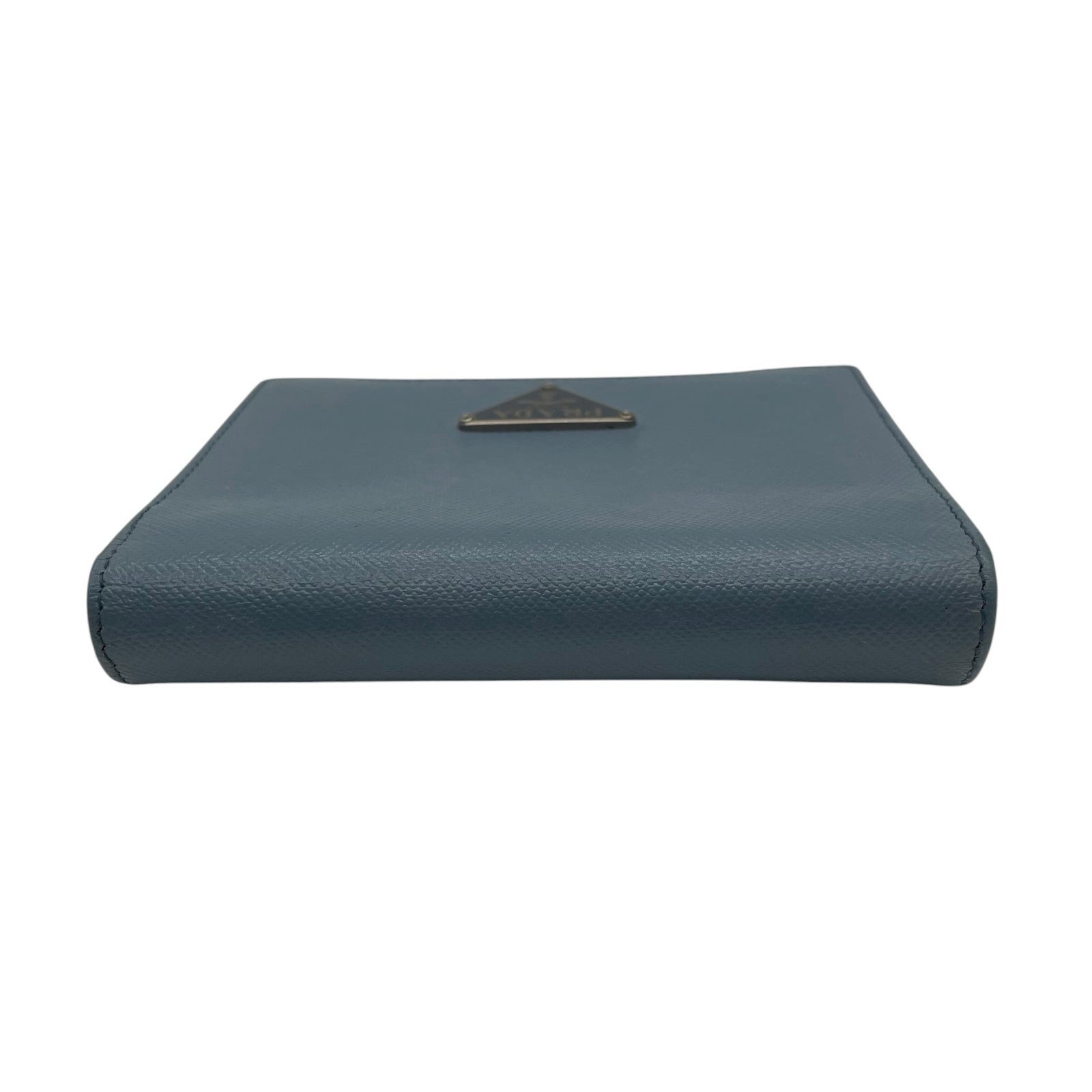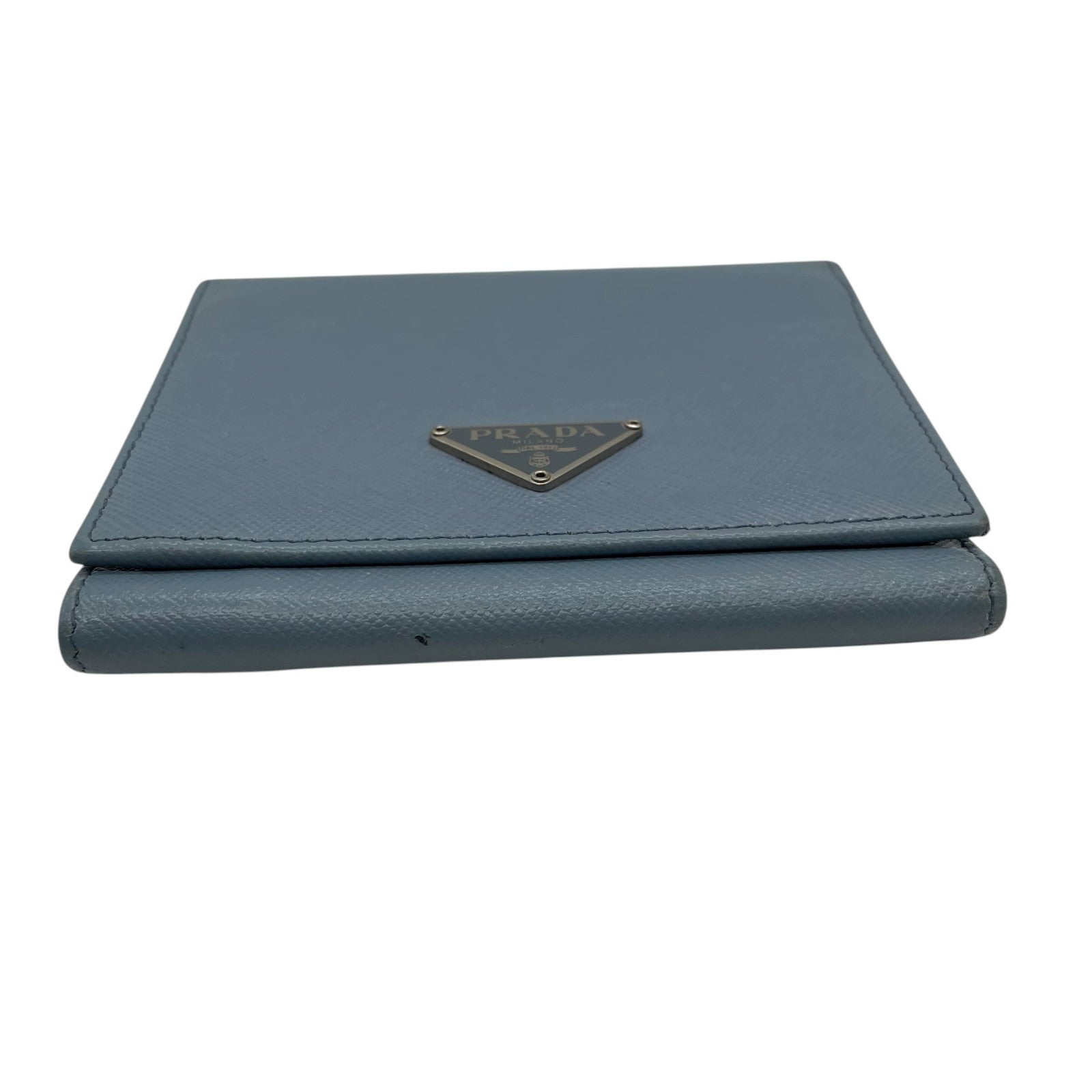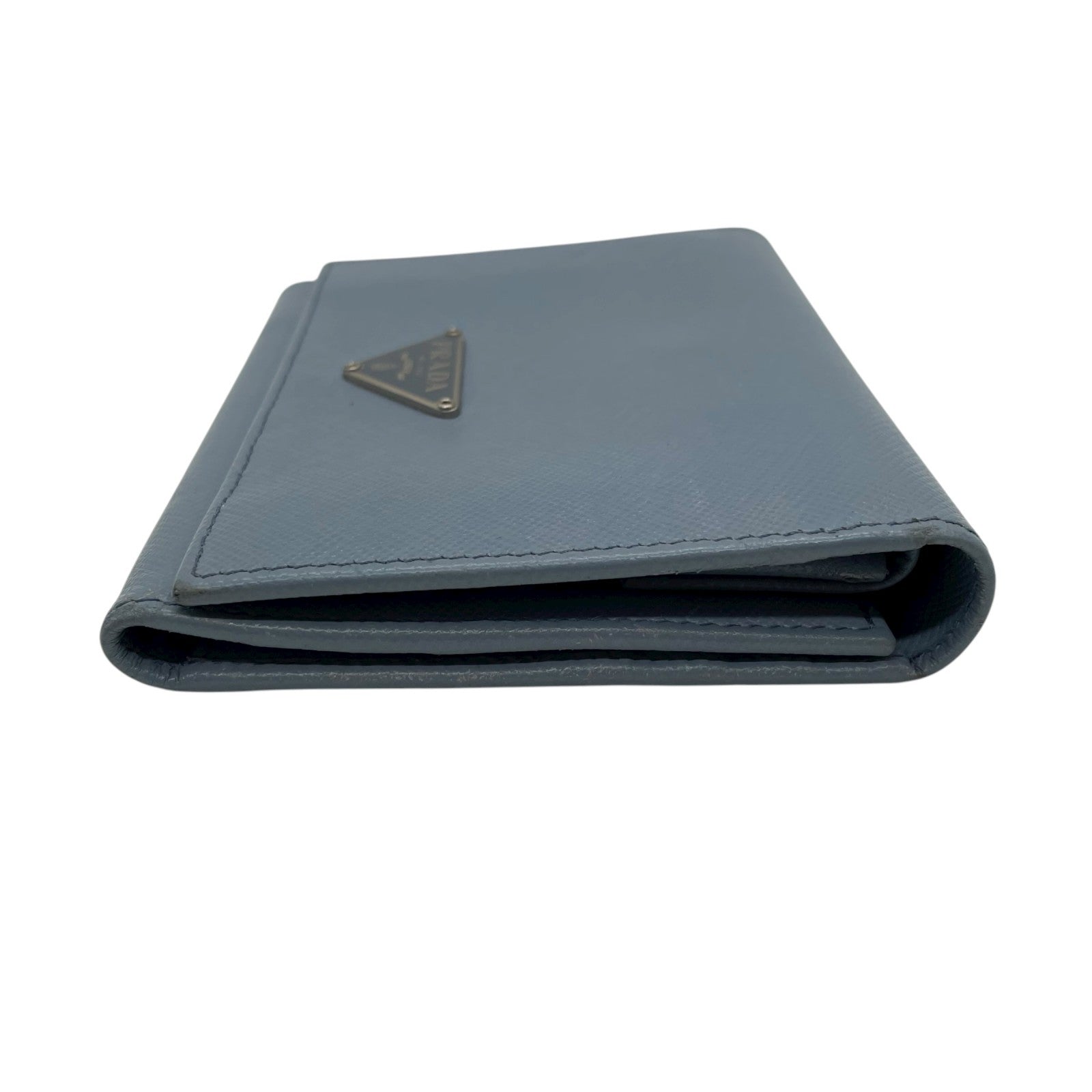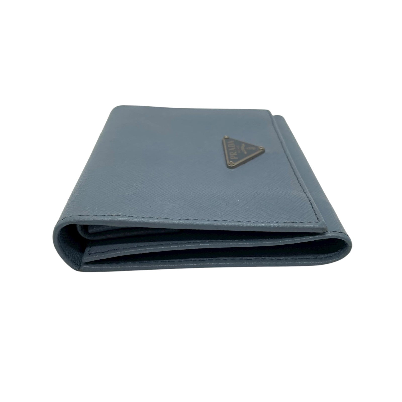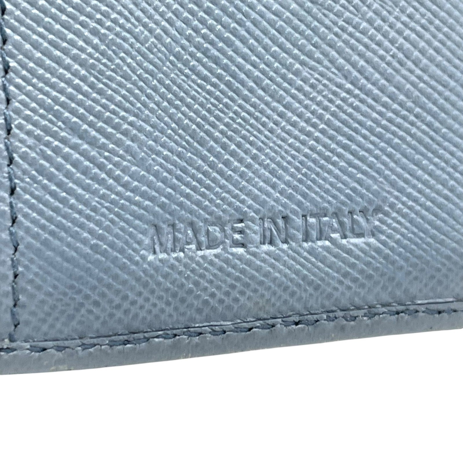 美品 プラダ PRADA サフィアーノレザー 二つ折り財布 トライアングルロゴ 水色 ライトブルー レディース コンパクトウォレット M5