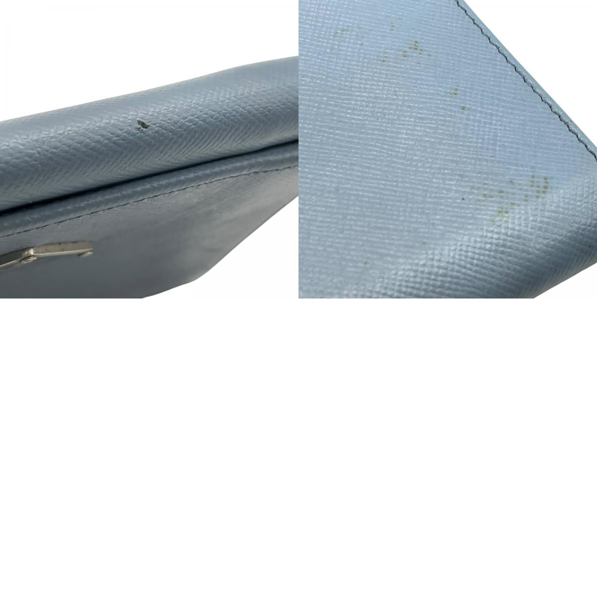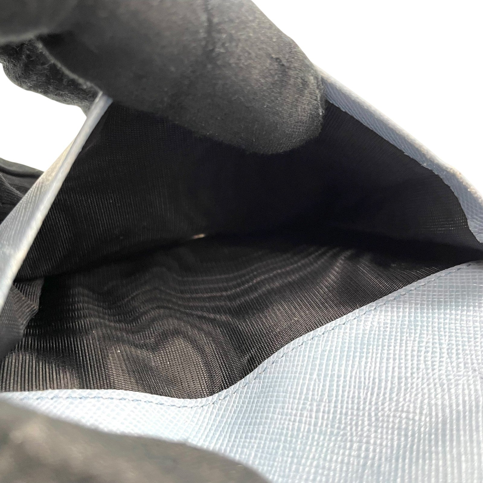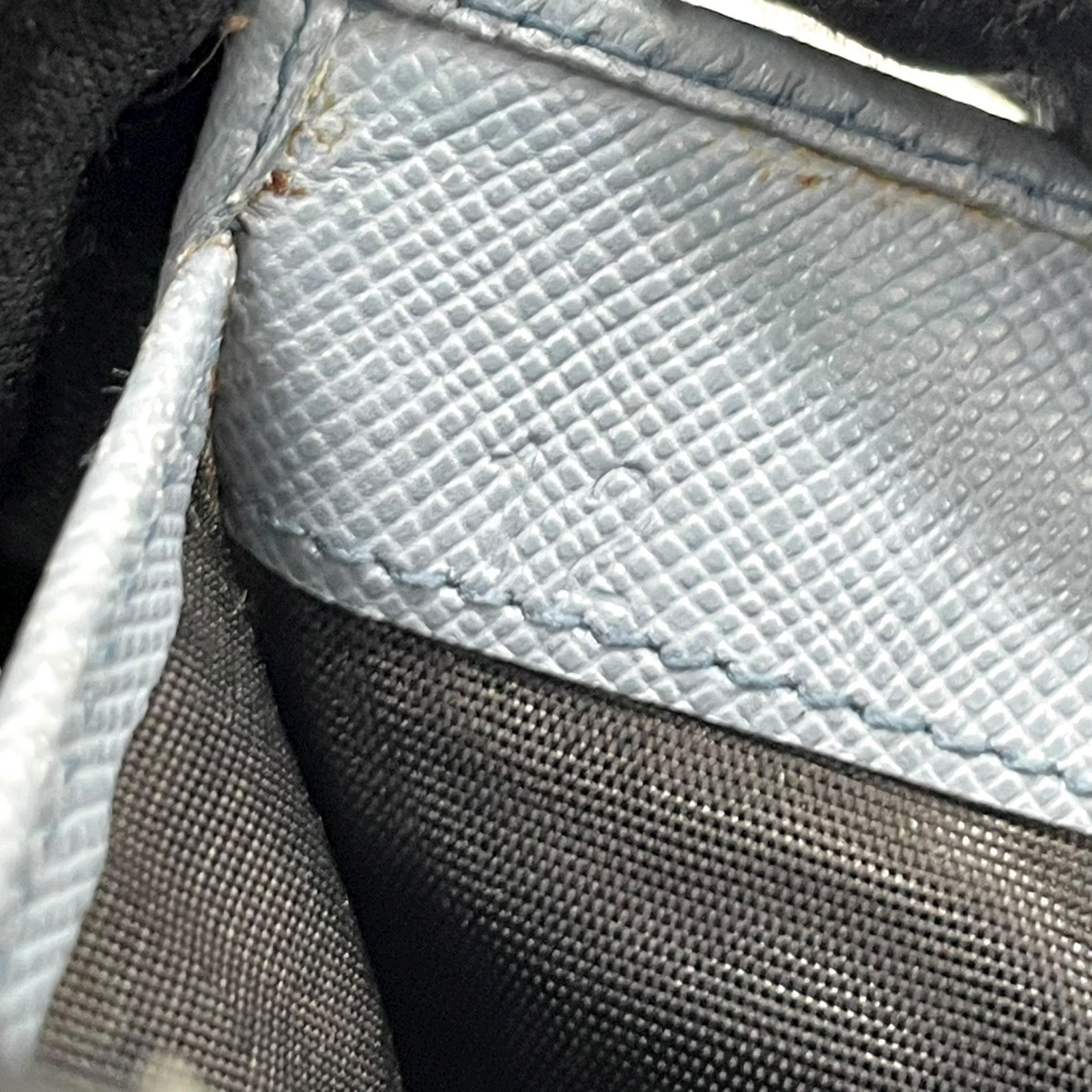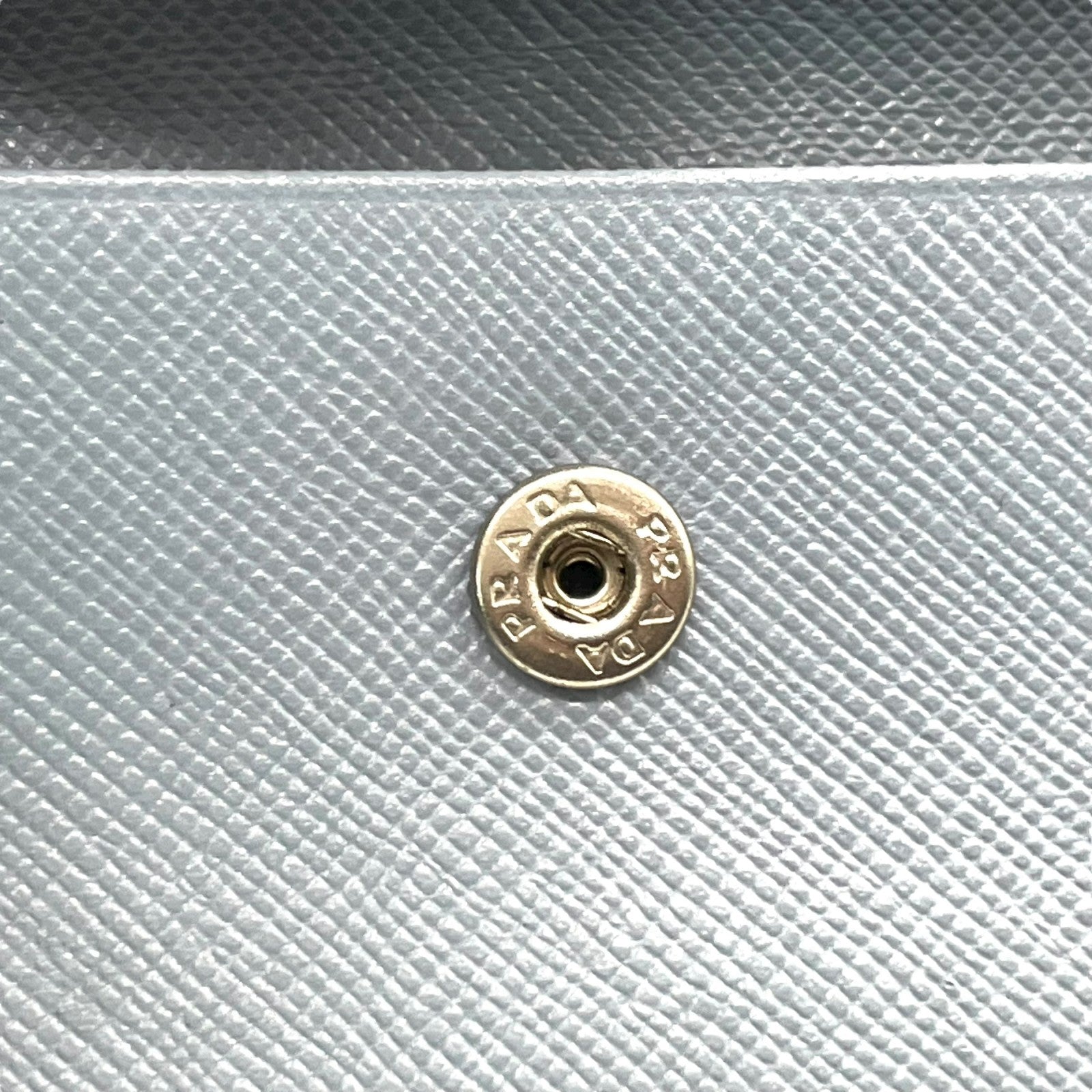 美品 プラダ PRADA サフィアーノレザー 二つ折り財布 トライアングルロゴ 水色 ライトブルー レディース コンパクトウォレット M5