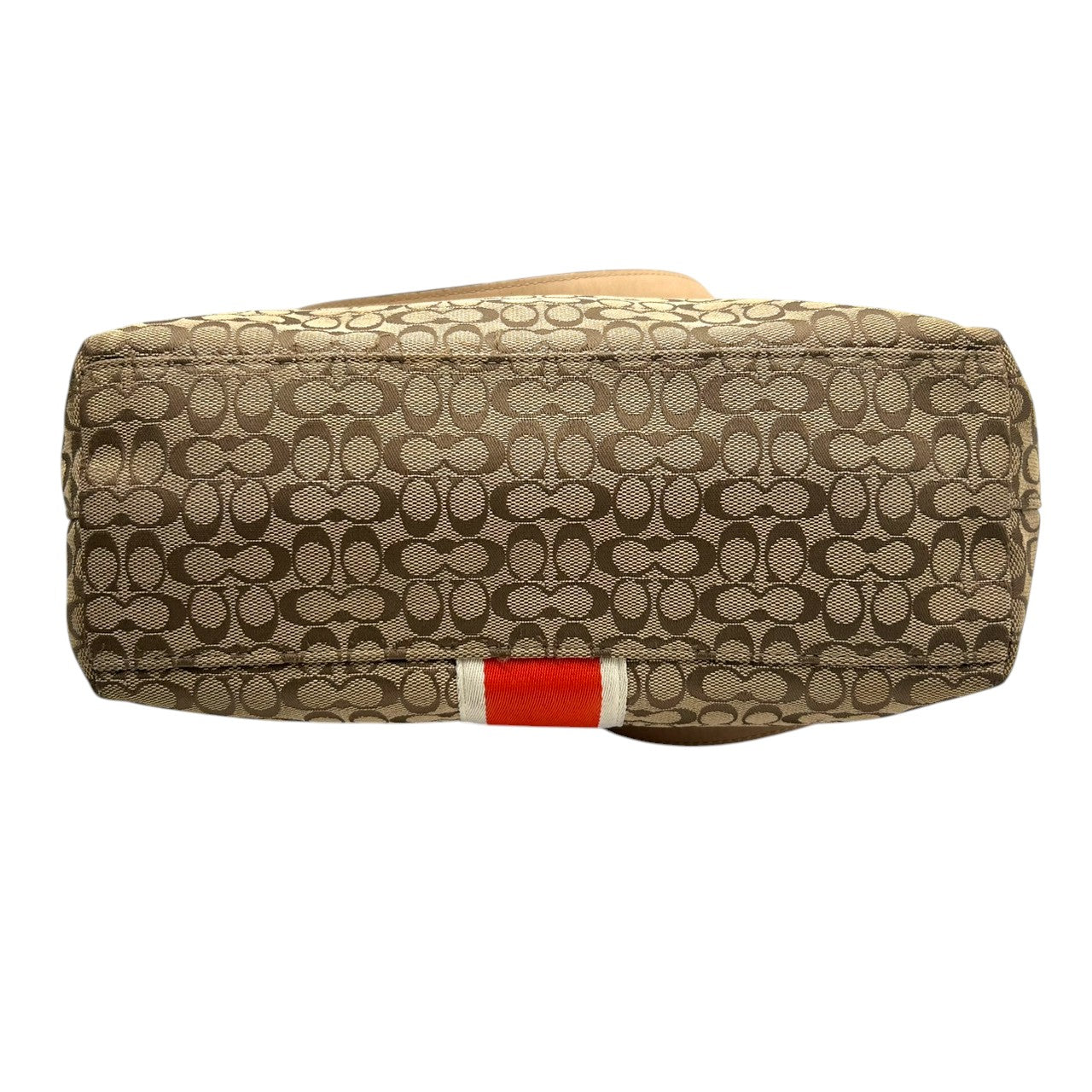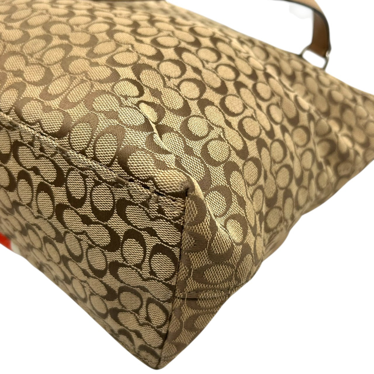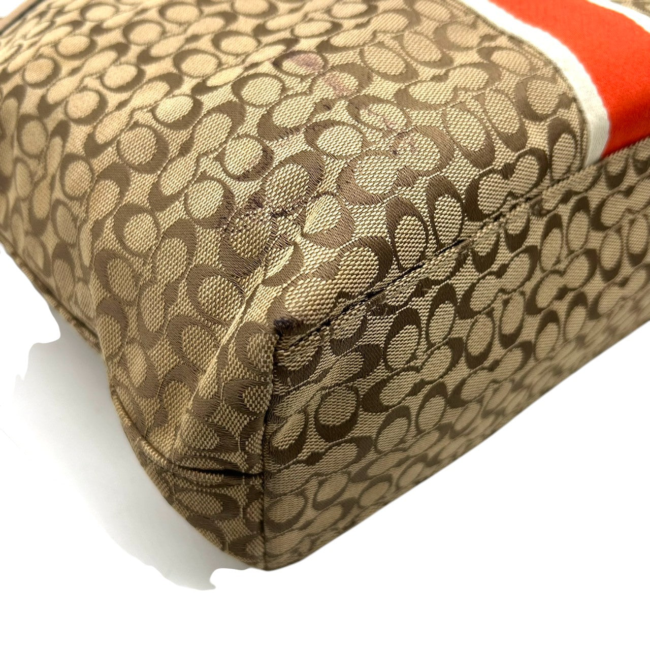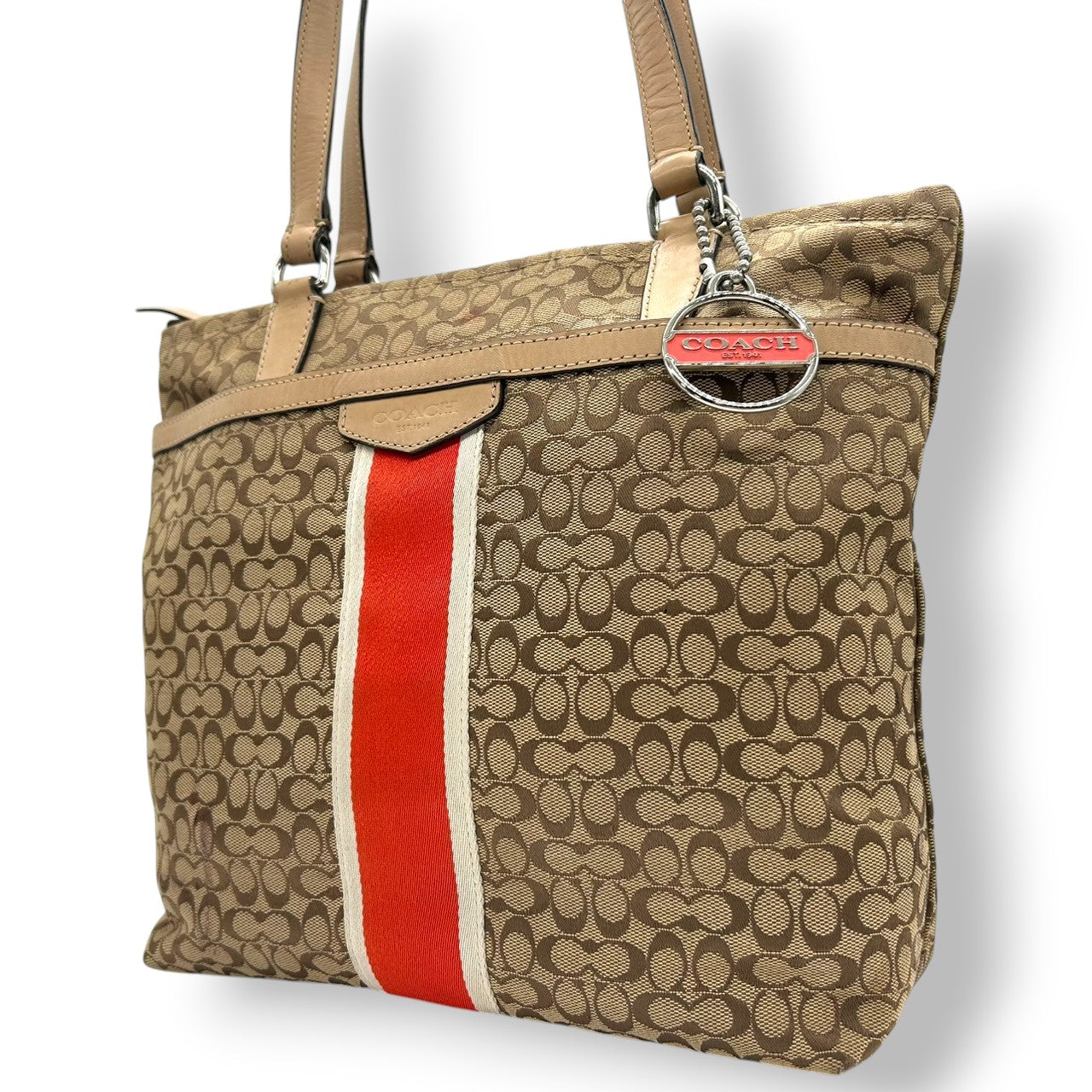 【COACH】コーチ トートバッグ ワンショルダー F27008 ミニシグネチャー キャンバス レザー ブラウン オレンジストライプ A4収納可 レディース 通勤通学 カジュアル チャーム付き 定番人気モデル クリーニング済み s35