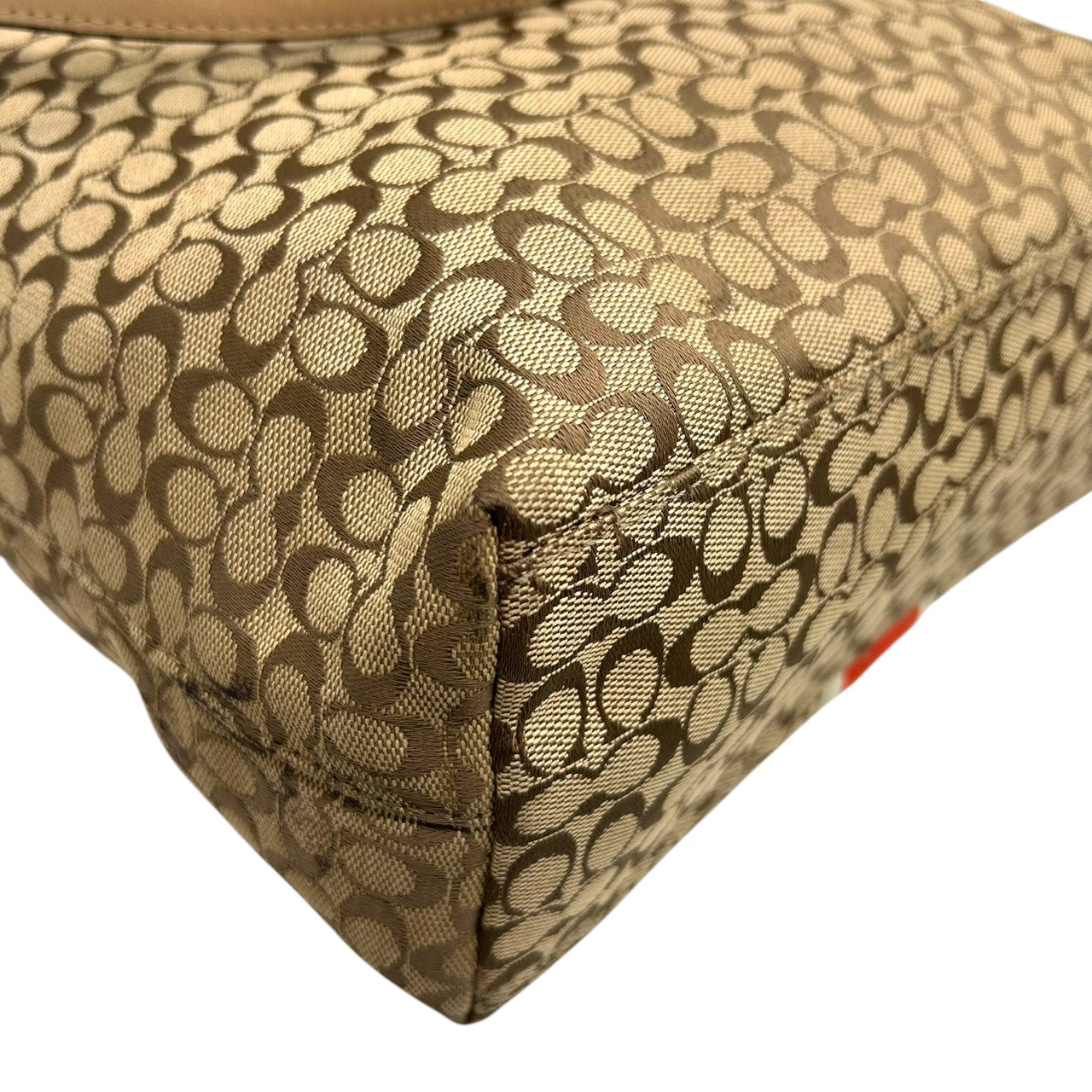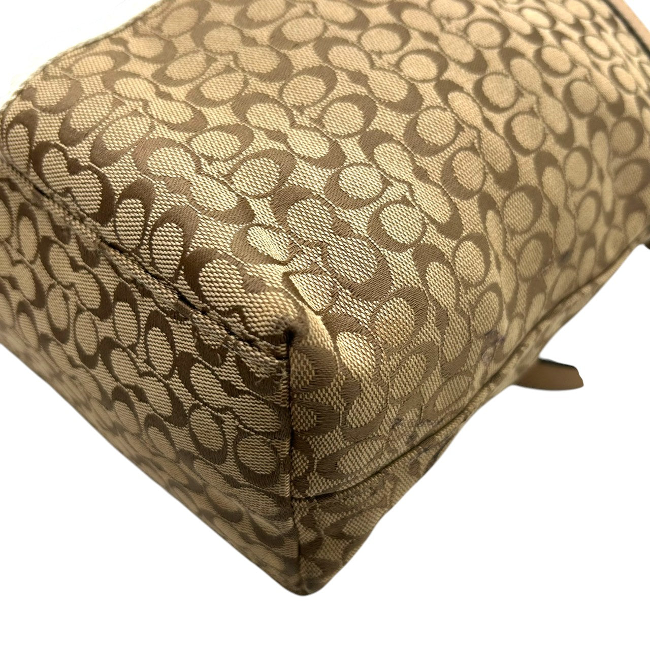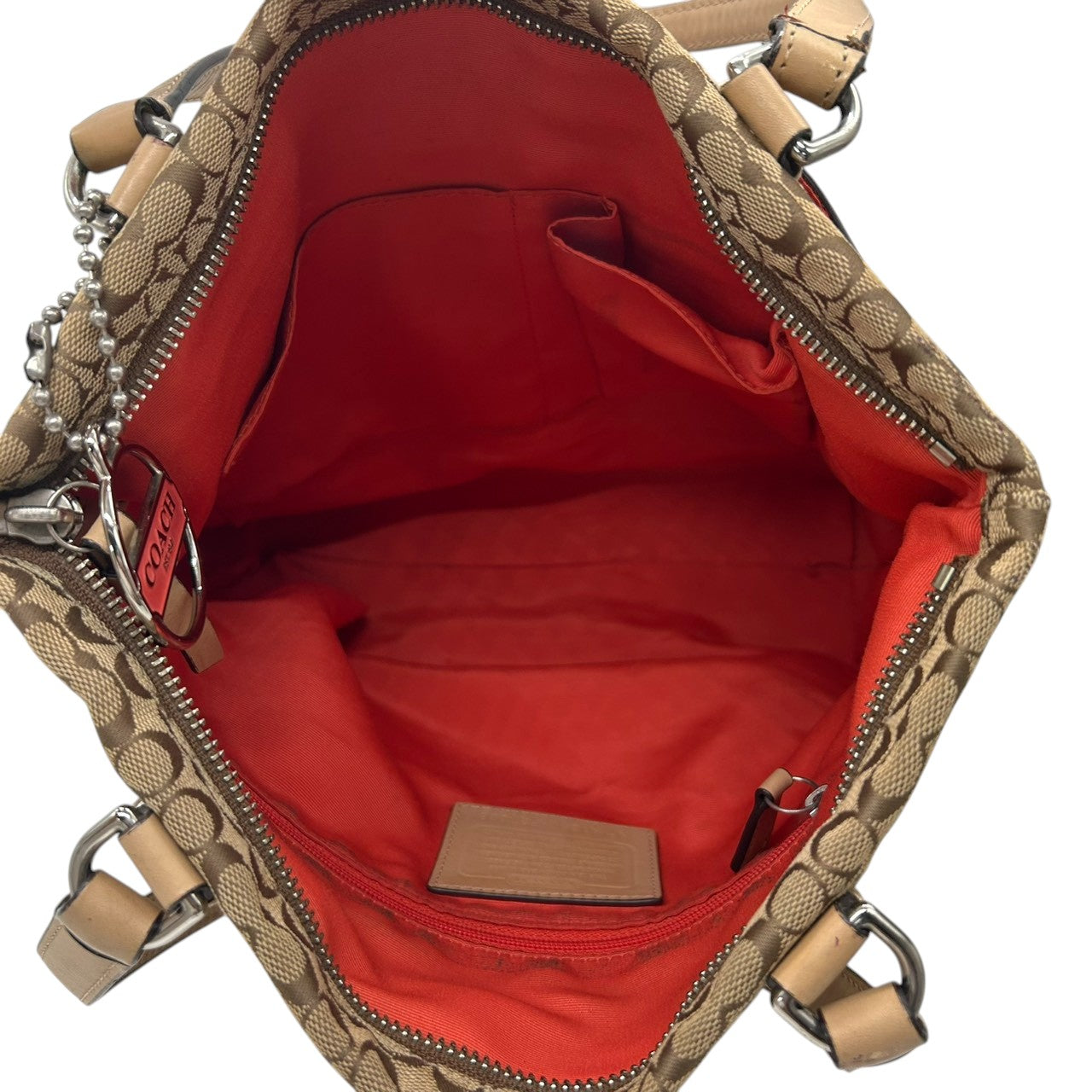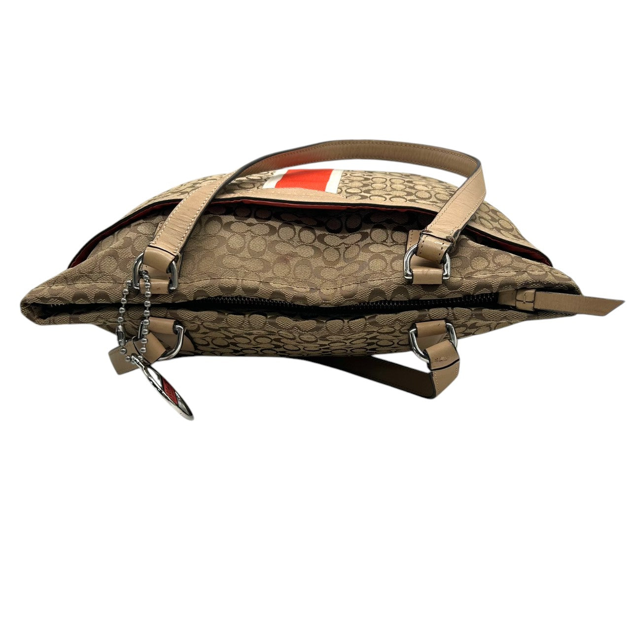 【COACH】コーチ トートバッグ ワンショルダー F27008 ミニシグネチャー キャンバス レザー ブラウン オレンジストライプ A4収納可 レディース 通勤通学 カジュアル チャーム付き 定番人気モデル クリーニング済み s35