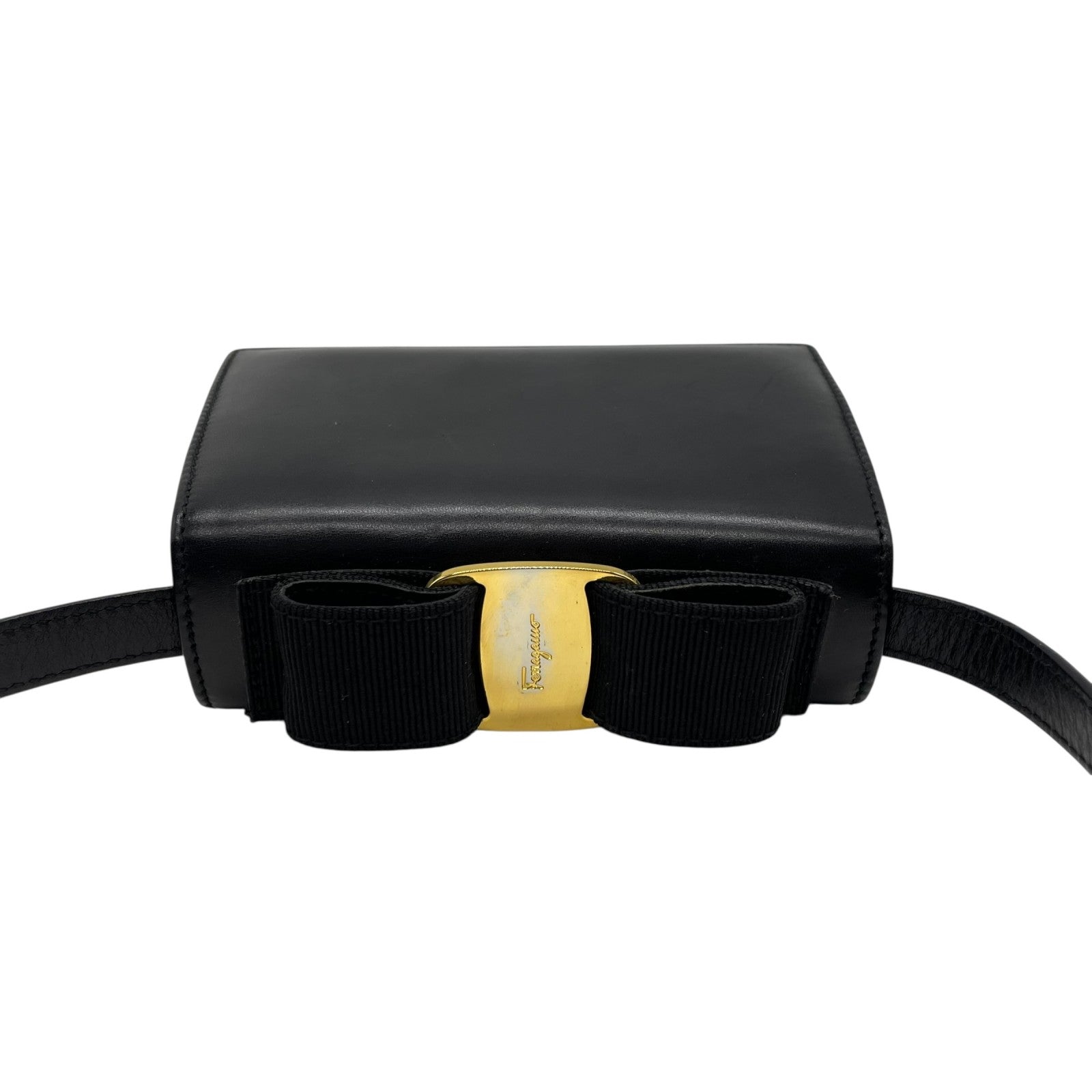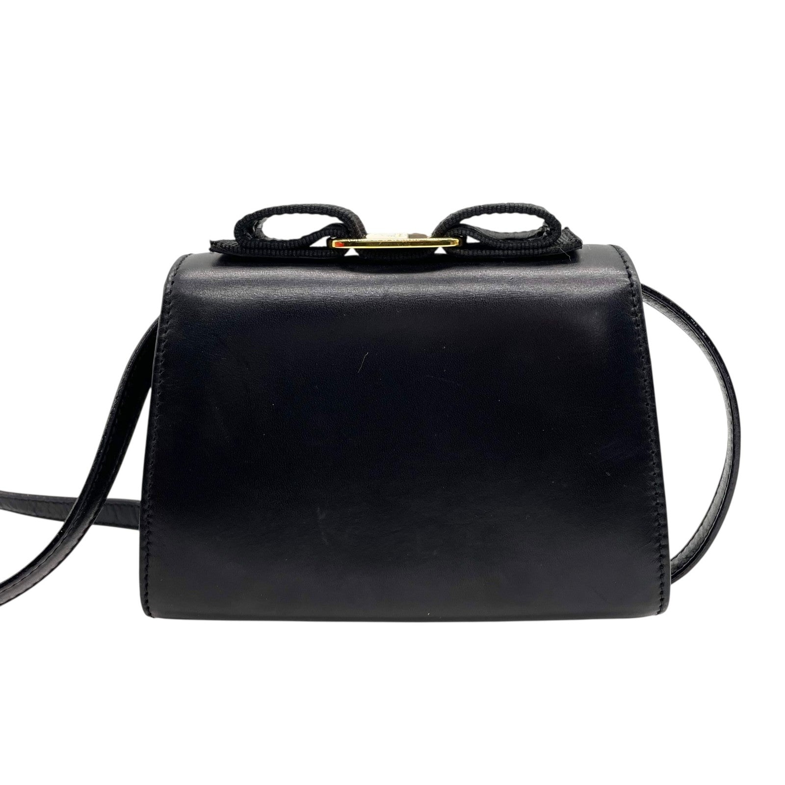 美品 Salvatore Ferragamo フェラガモ ショルダーバッグ ミニバッグ ヴァラリボン 黒 ブラック ゴールド金具 レザー アクセサリーポーチ マイクロミニ レディース R