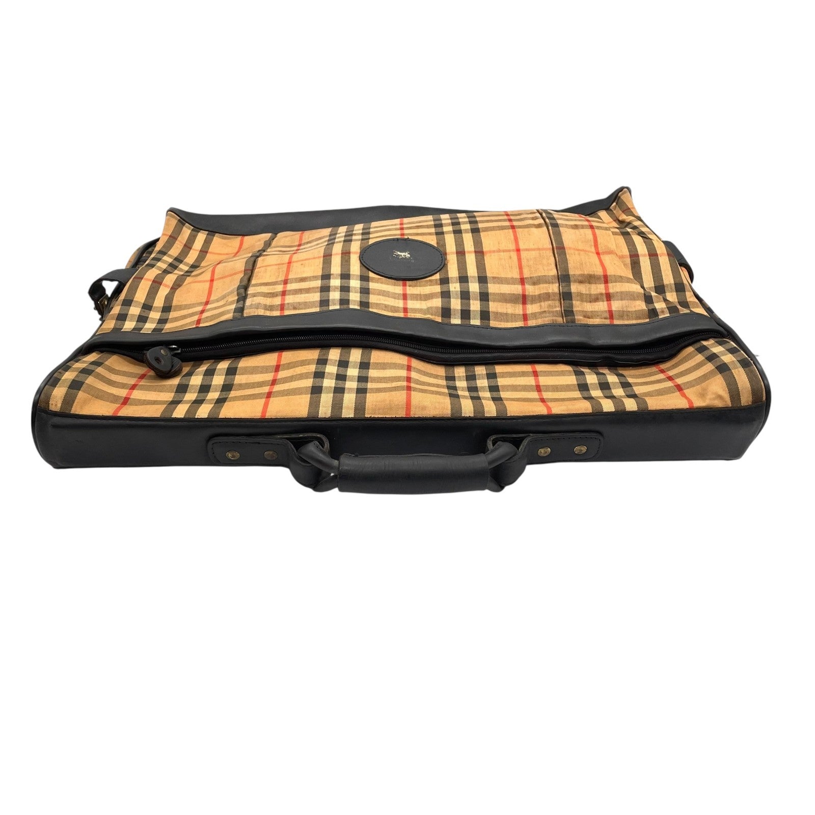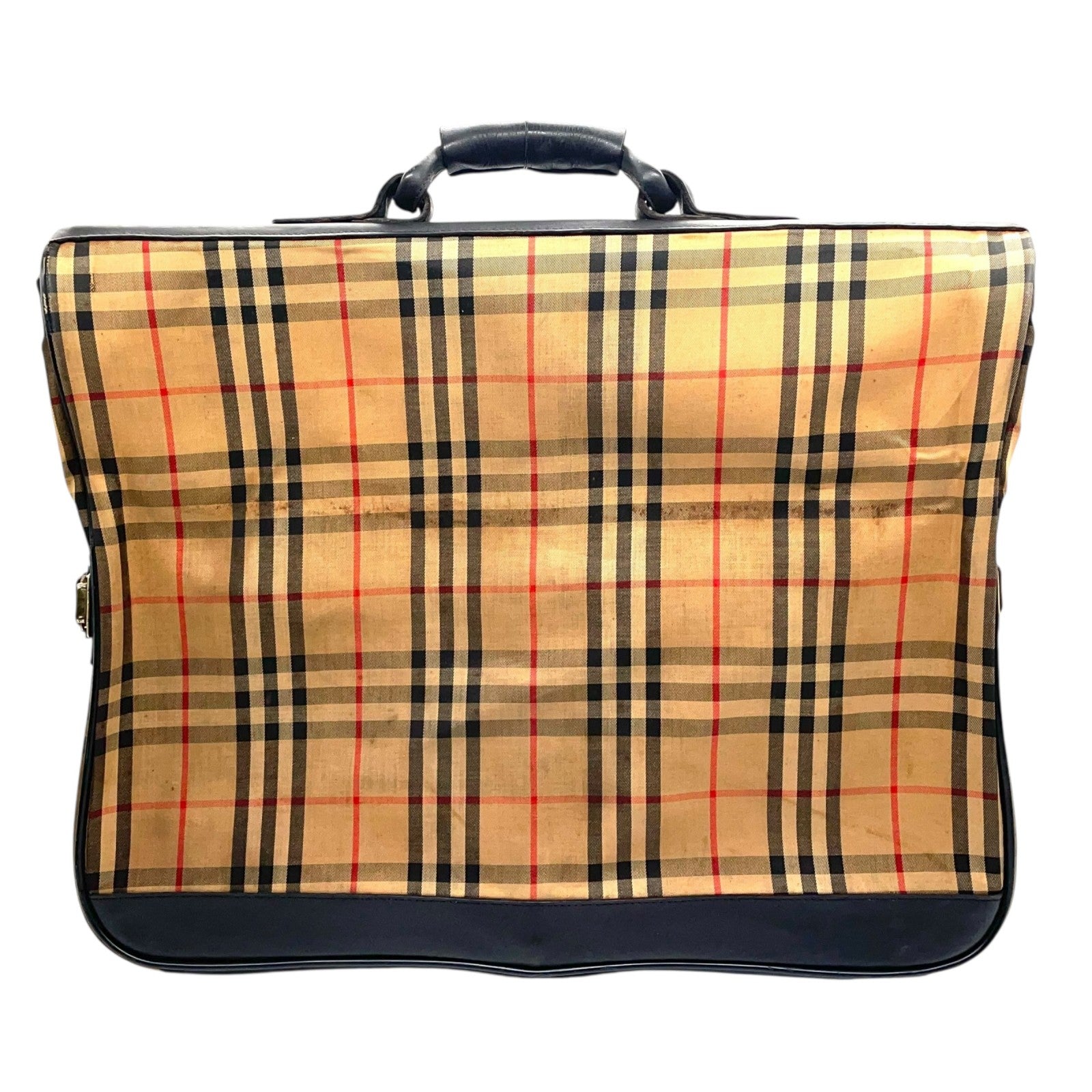 BURBERRY バーバリー ガーメントバッグ ノバチェック トラベルバッグ ベージュ ブラック キャンバス レザー ゴールド金具 ヴィンテージ メンズ X