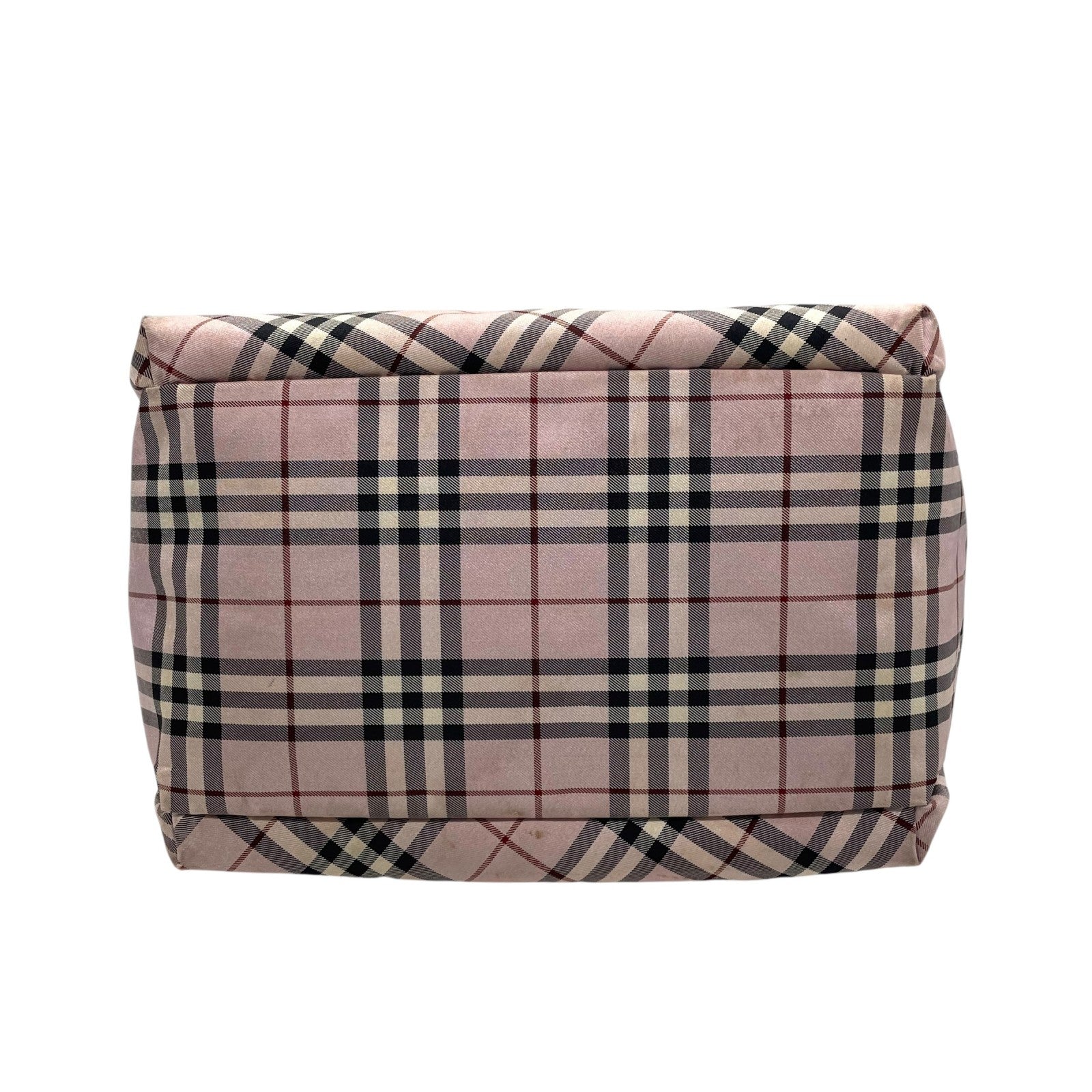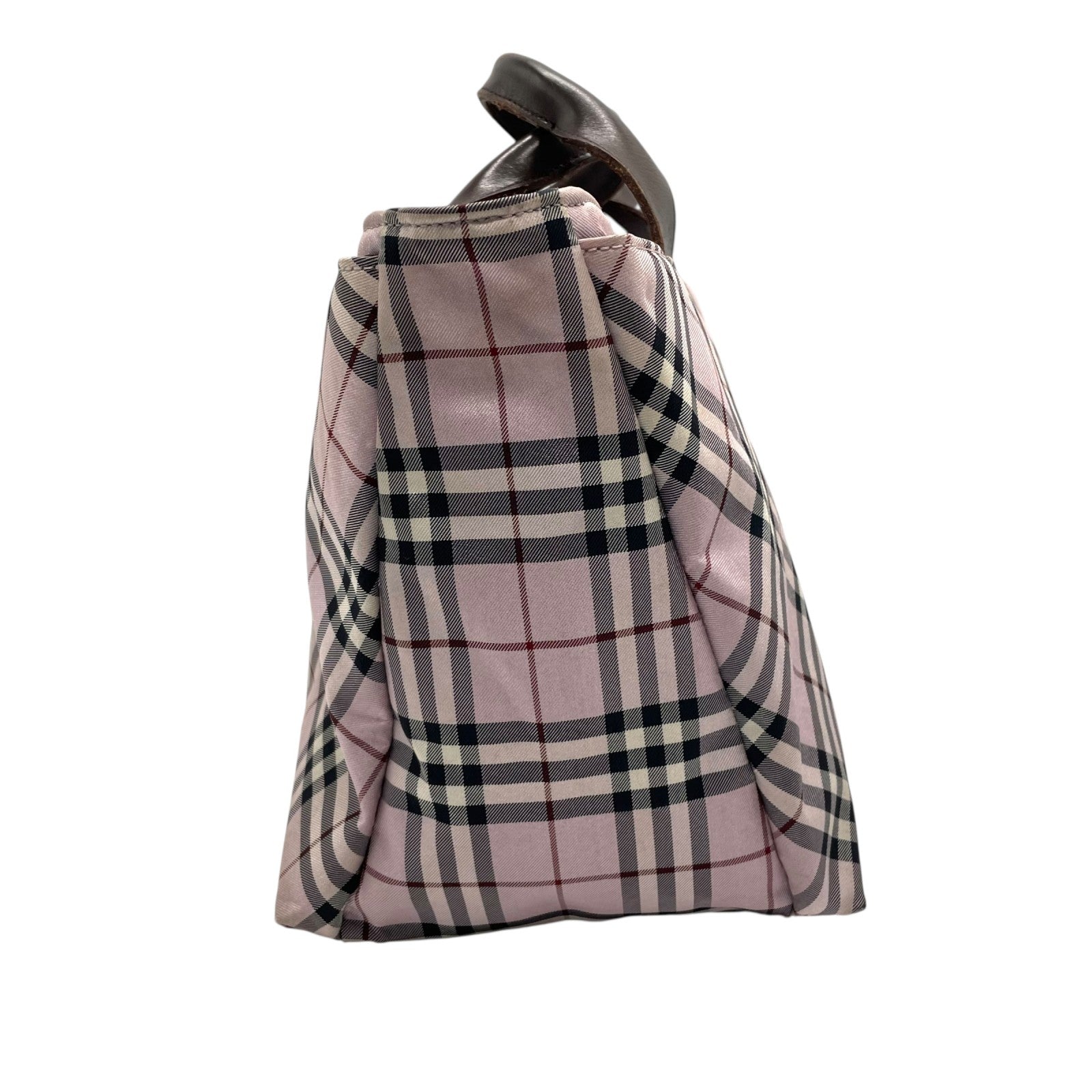 BURBERRY BLUE LABEL バーバリーブルーレーベル ハンドバッグ ノバチェック ピンク ブラウン シルバー金具 ナイロン レザー ファスナー開閉 ミニトート 手提げ ヴィンテージ レディース U9