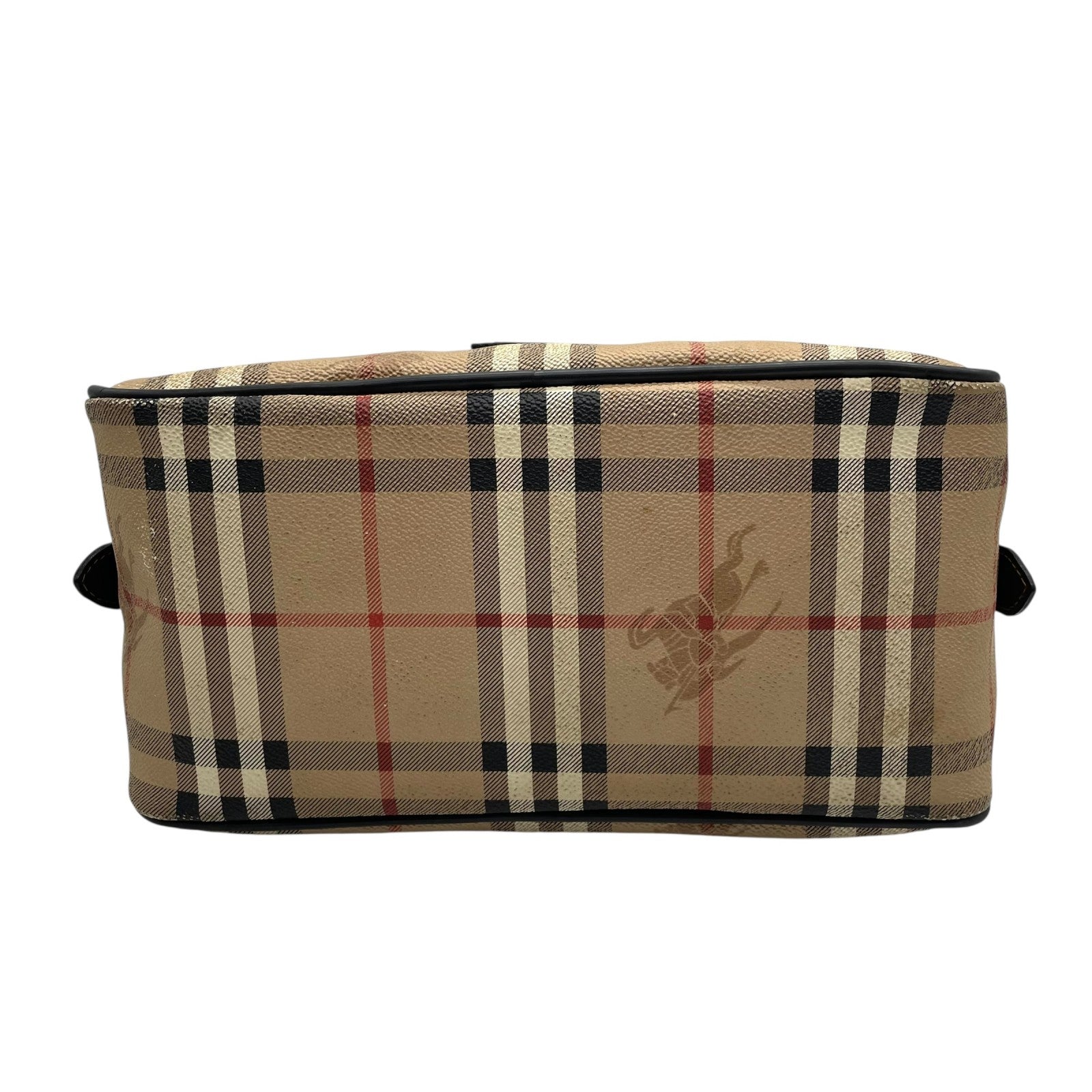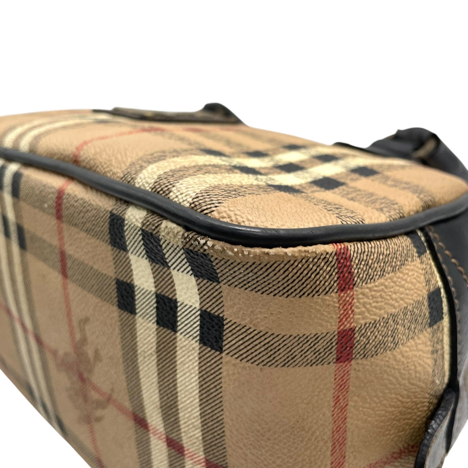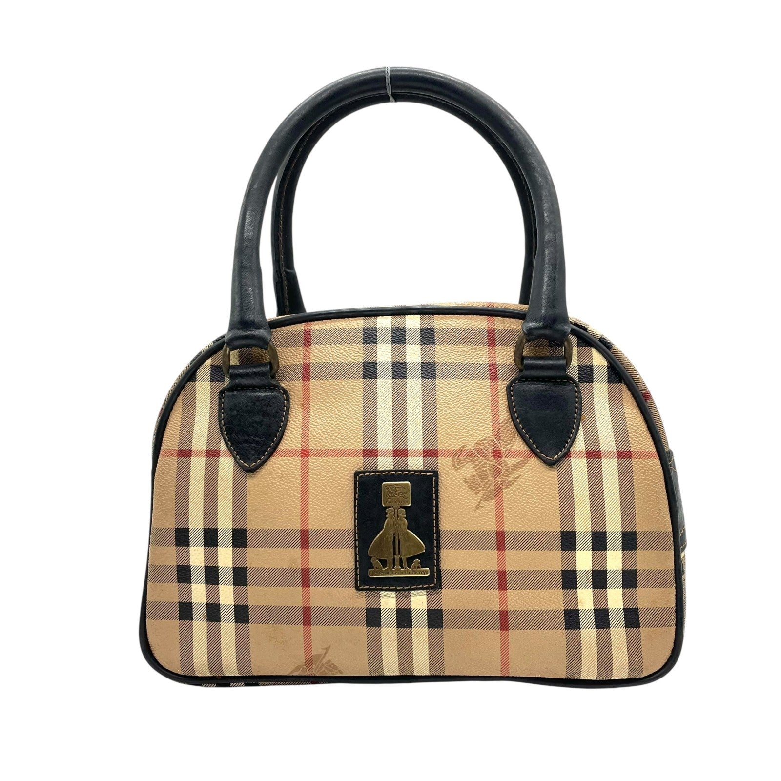 BURBERRY バーバリー ミニボストンバッグ ハンドバッグ ノバチェック シャドーホース シェルター ベージュ 黒 ブラック ゴールド金具 PVC レザー ファスナー開閉 手提げ ヴィンテージ レディース K6