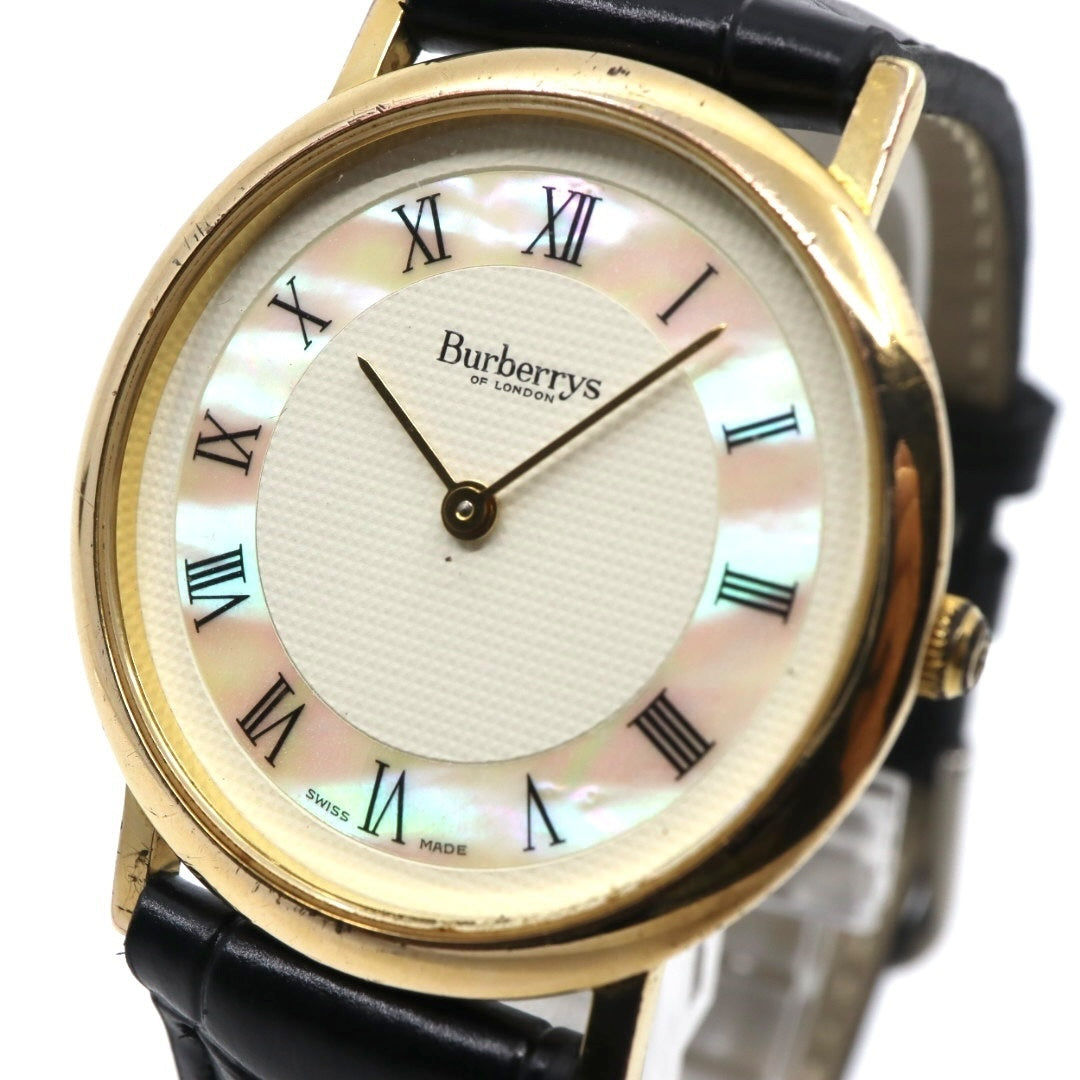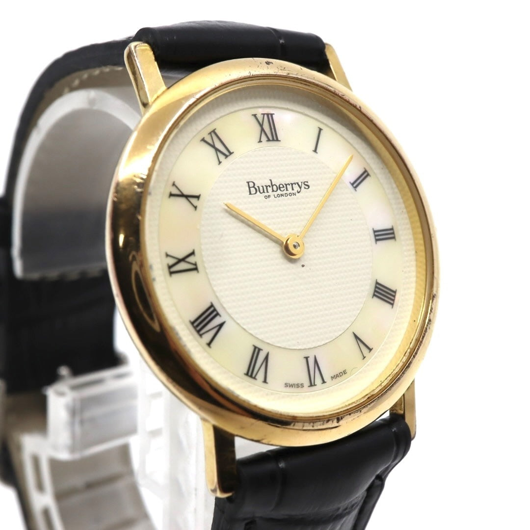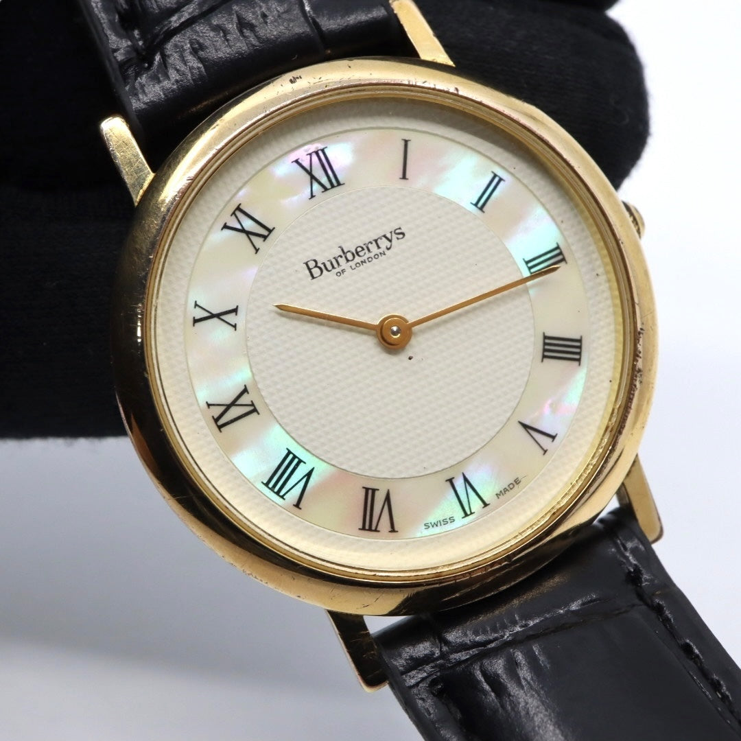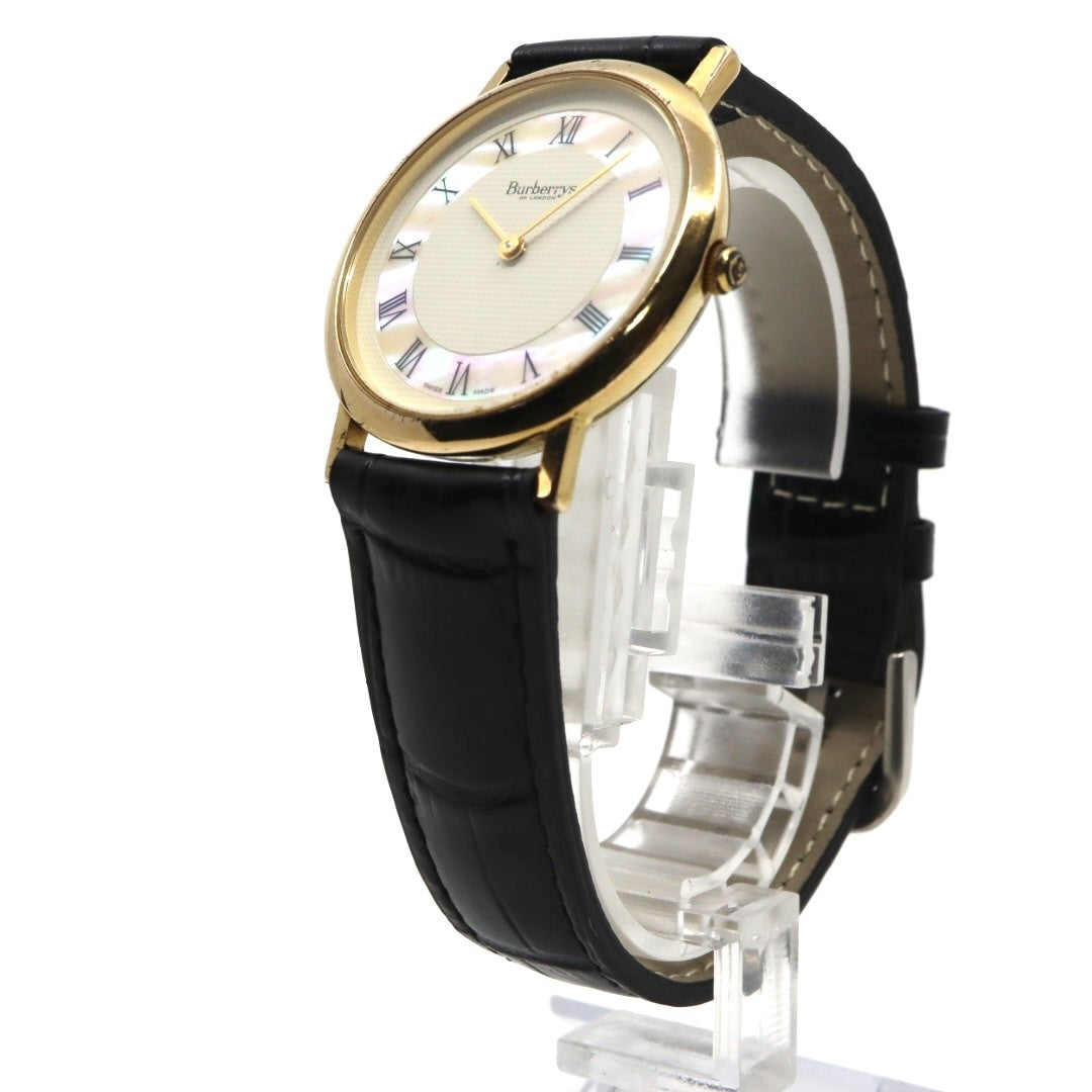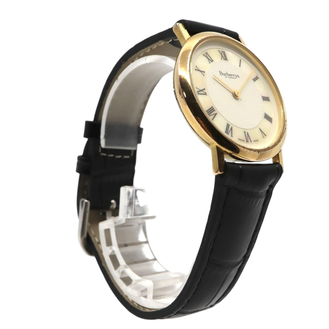 美品 電池交換済 新品ベルト バーバリー Burberrys 6000G 腕時計 メンズウォッチ クォーツ ゴールド シェル文字盤 アイボリー ローマンインデックス クラシック ヴィンテージ エレガント ドレスウォッチ 稼働品 G3