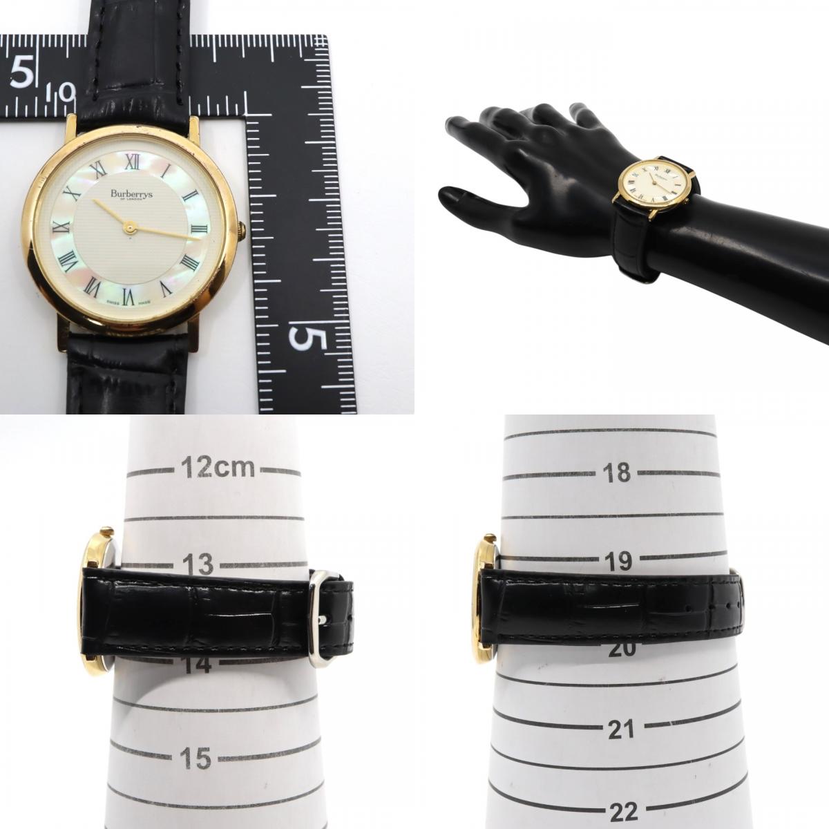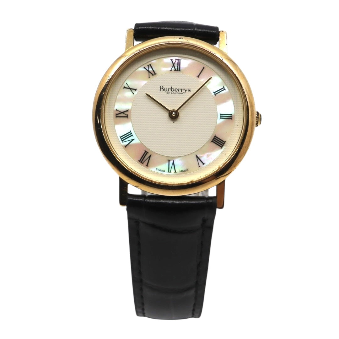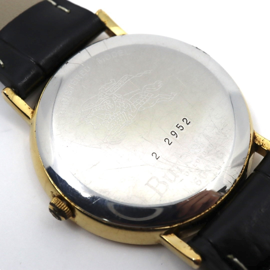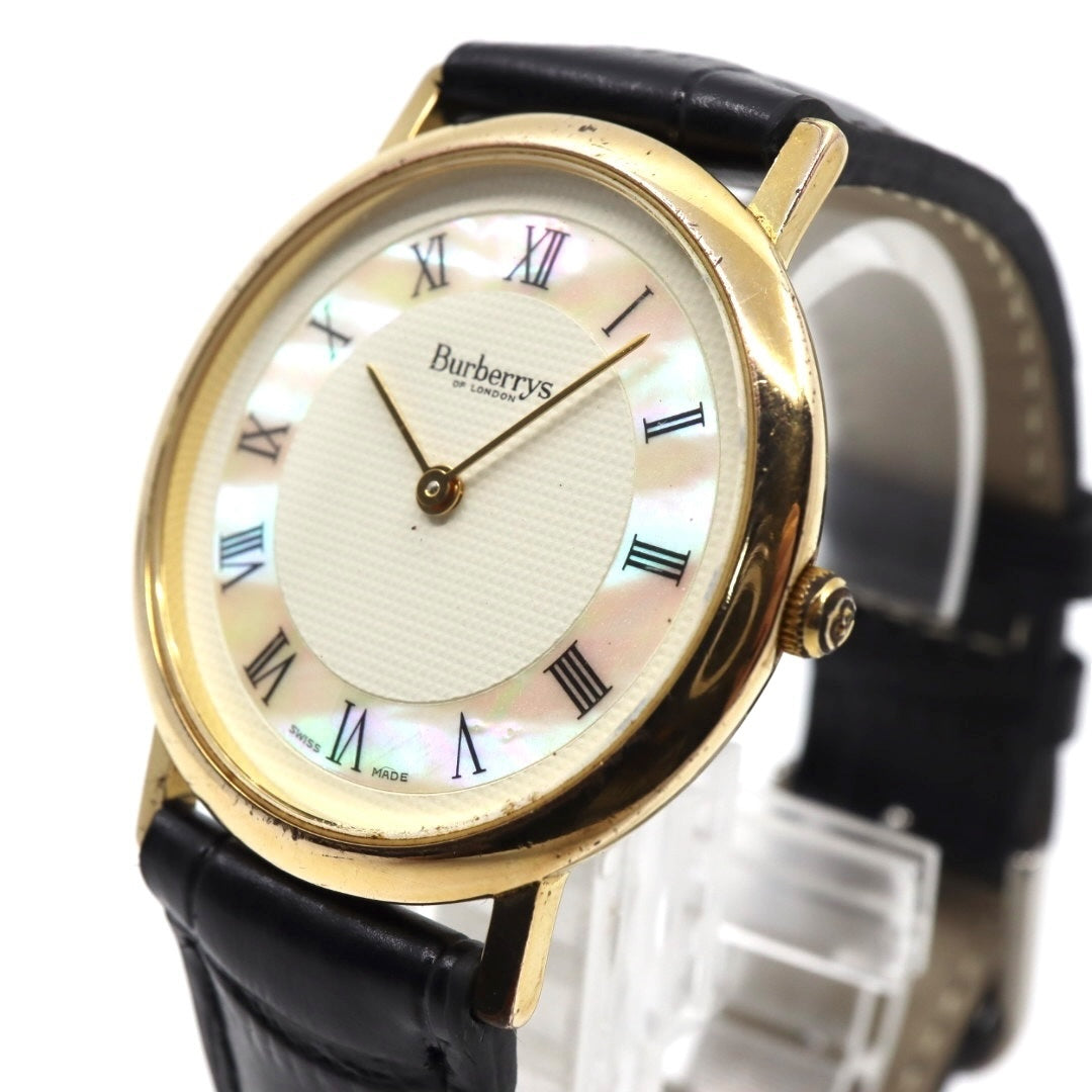 美品 電池交換済 新品ベルト バーバリー Burberrys 6000G 腕時計 メンズウォッチ クォーツ ゴールド シェル文字盤 アイボリー ローマンインデックス クラシック ヴィンテージ エレガント ドレスウォッチ 稼働品 G3
