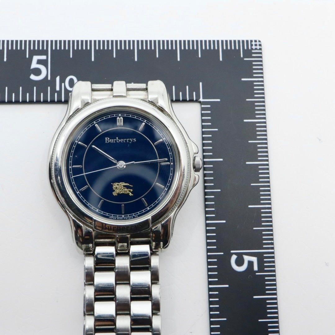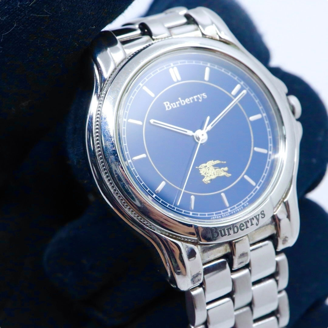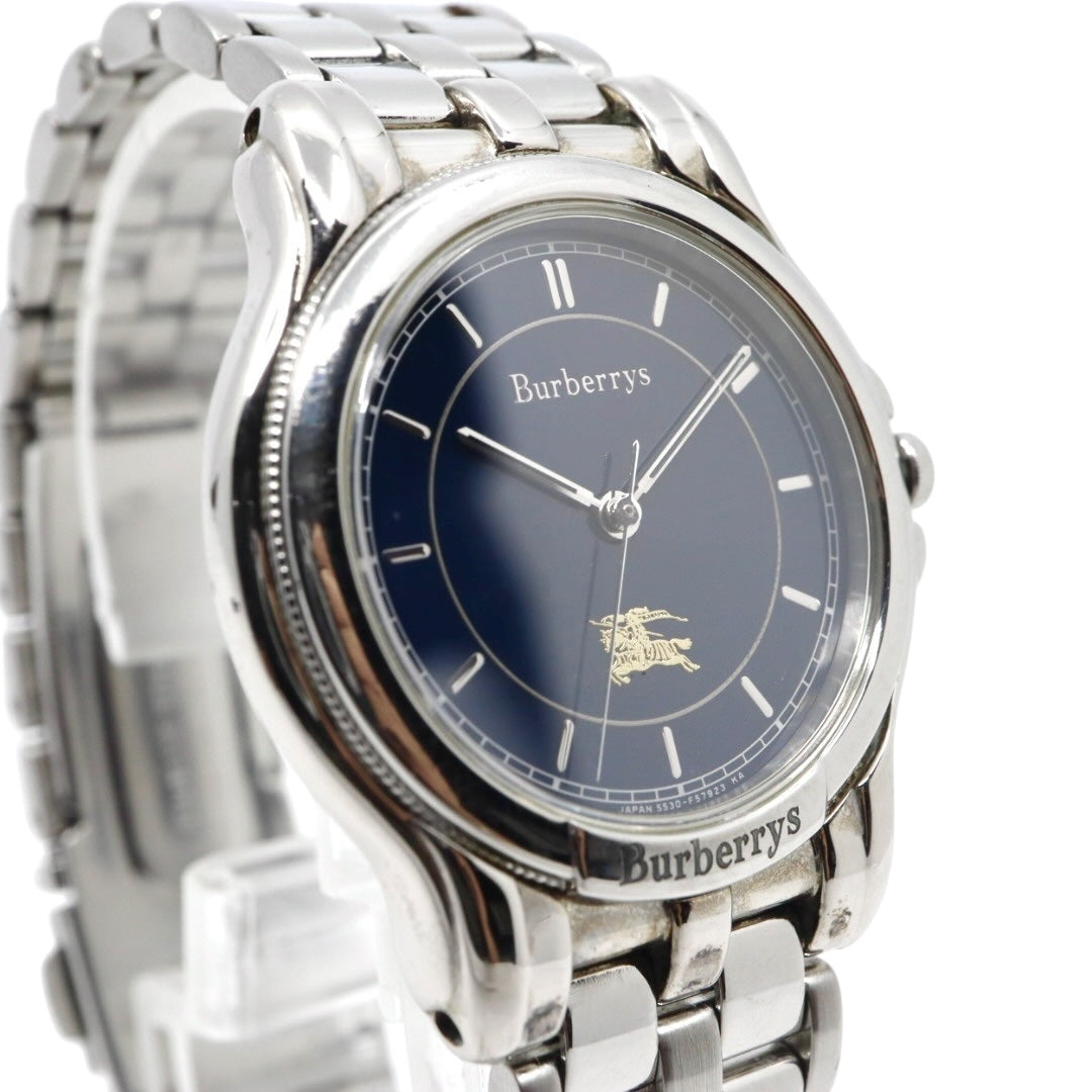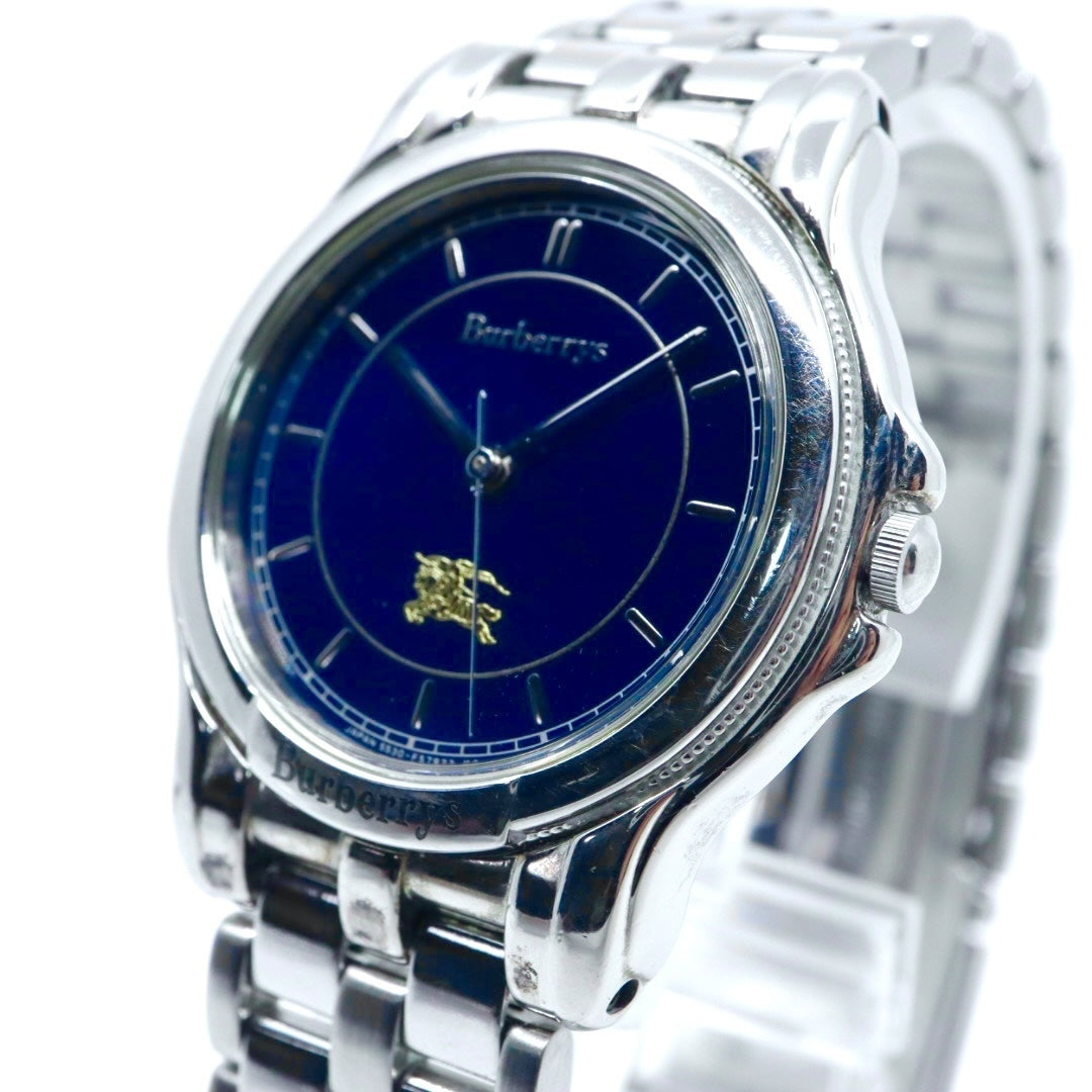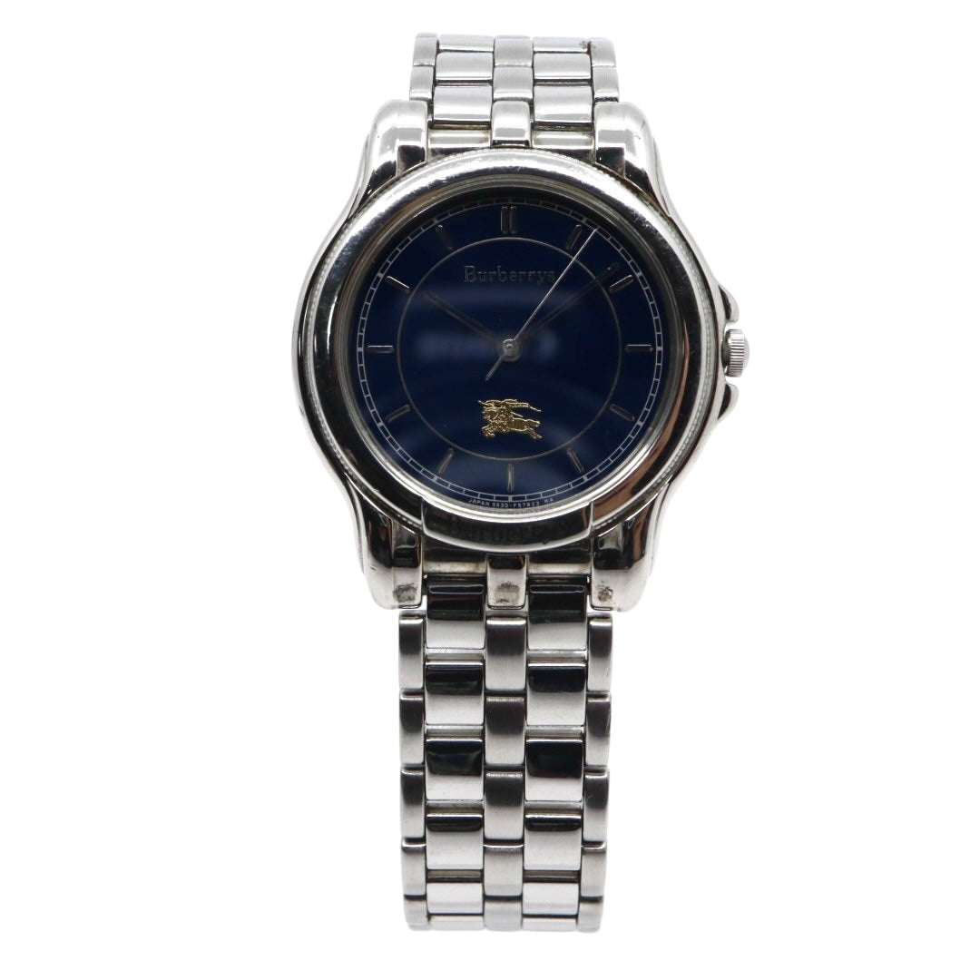 美品 電池交換済 クリーニング済 バーバリー Burberrys 腕時計 5530-F52339 メンズウォッチ クォーツ ネイビー文字盤 シルバー ステンレススチール ホースロゴ クラシック ヴィンテージ エレガント ドレスウォッチ ビジネス 稼働品 G3