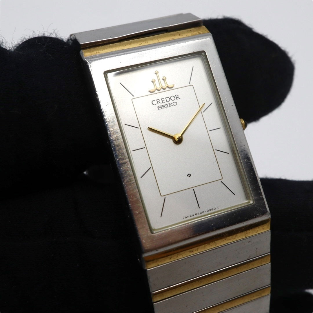 美品 電池交換済 クリーニング済 セイコー クレドール SEIKO CREDOR 8420-6400 腕時計 レディースウォッチ スクエア コンビ SS 22Kベゼル クォーツ シルバー文字盤 アナログ エレガント クラシック ドレスウォッチ 稼働品 G3