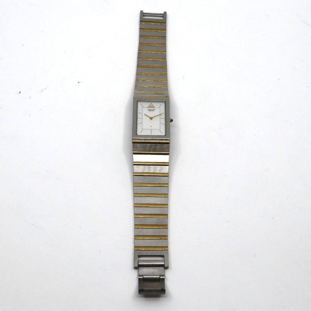 | 商品説明 | 【電池交換済/クリーニング済】本商品はSEIKO(セイコー)の最高級ライン、CREDOR(クレドール)のレディース腕時計です。 シャープなスクエアフォルムに、シルバーとゴールドのコンビネーションが美しい、上品で知的なデザイン。ベゼルには22Kゴールドが使用されています。 電池交換とクリーニング済みで、すぐにお使いいただけます。 特徴 ブランド:SEIKO(セイコー) モデル:CREDOR (クレドール) / 8420-6400 ムーブメント:クオーツ ケース形状:スクエア(レクタンギュラー) ケースカラー:シルバー / ゴールド 文字盤カラー:シルバー 素材:ステンレススチール / 22Kゴールド 仕様:アナログ表示 / ドレスウォッチ 状態:稼働品 / 電池交換済み / クリーニング済み 薄型で腕への収まりも良く、アクセサリーのようにお使いいただけます。 ビジネスシーンからフォーマルまで、手元をエレガントに彩る一本です。 |