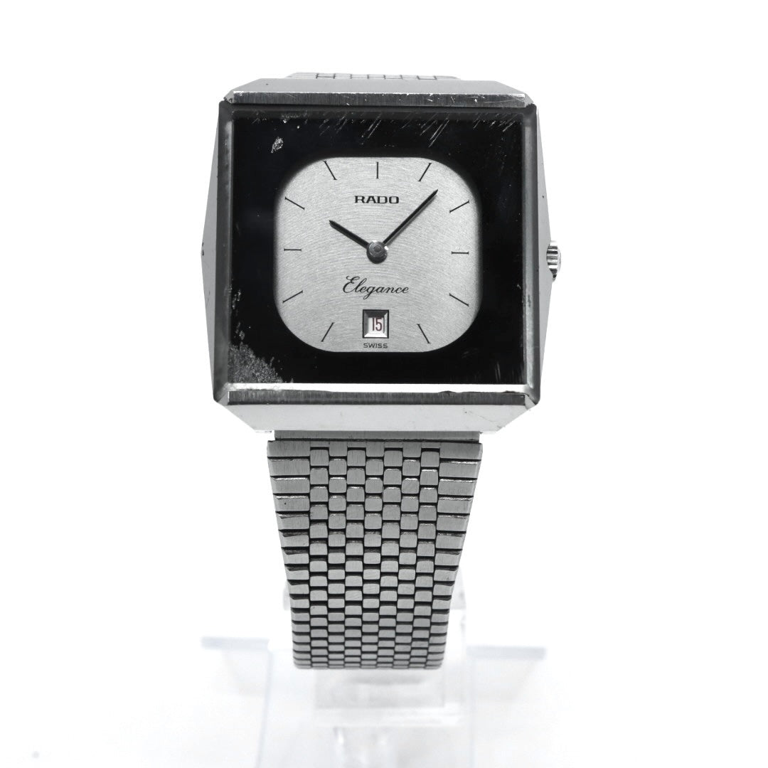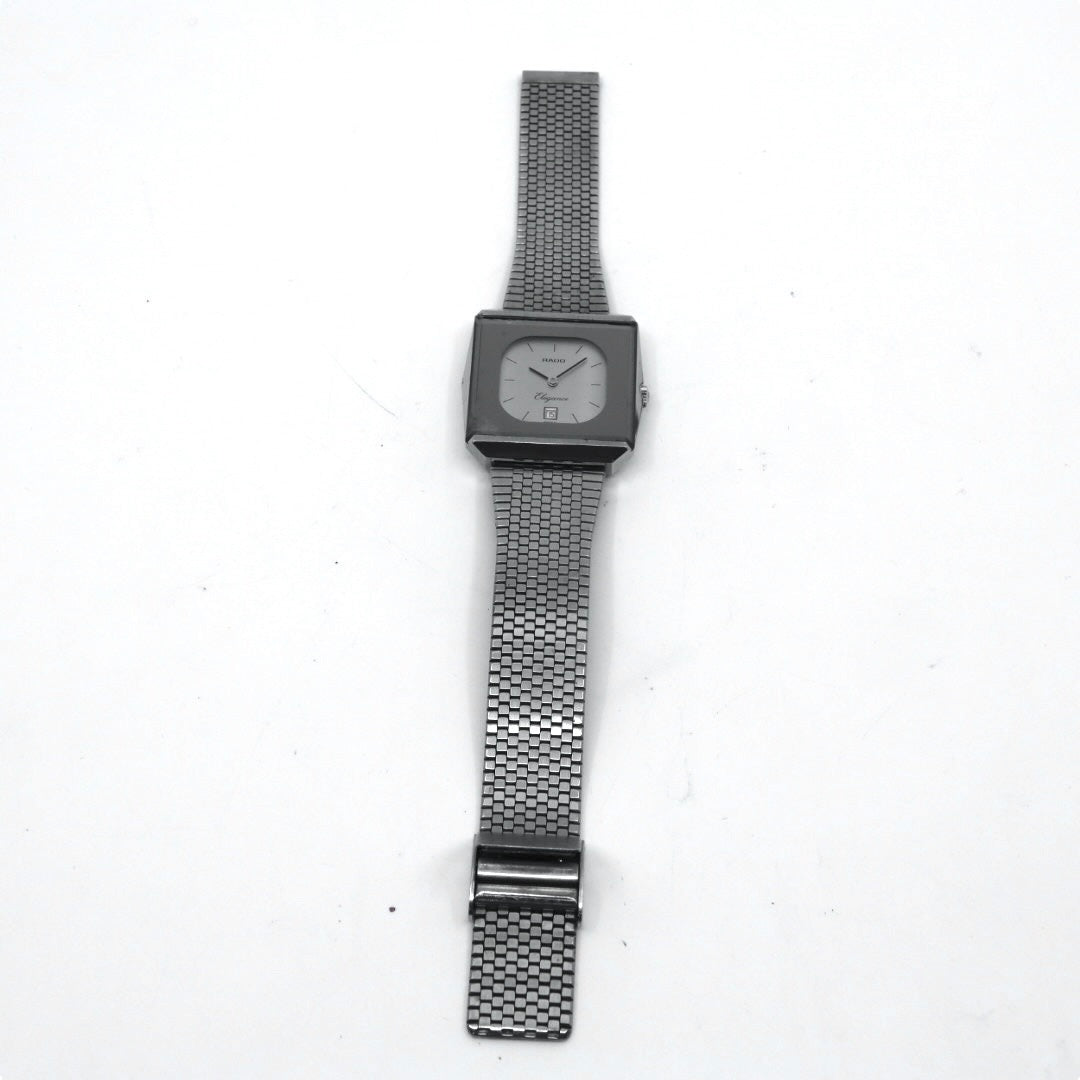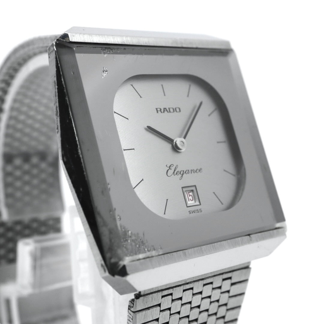 【稼働品】 RADO Elegance ラドー エレガンス 腕時計 自動巻き シルバー文字盤 スクエア デイト表示 メンズ レディース ユニセックス ヴィンテージ アナログ ドレスウォッチ アンティーク クラシック メッシュブレス G4