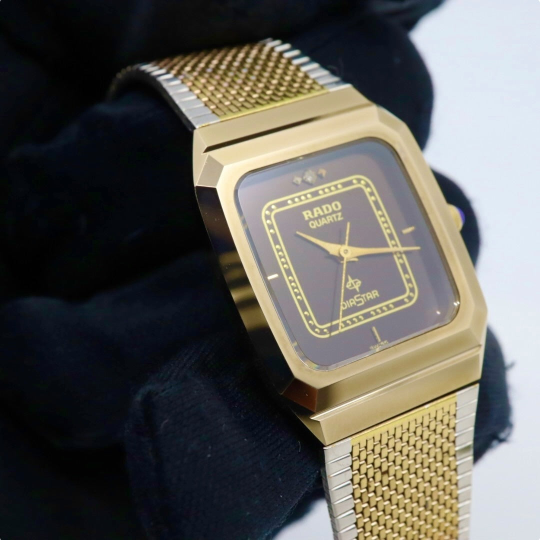 【美品/電池交換済】ラドー 腕時計 110.9509.3 レディース クオーツ ゴールド ブラウン文字盤 スクエア ヴィンテージ アナログ ドレスウォッチ アンティーク クラシックデザイン エレガント メッシュブレス クリーニング済み G1