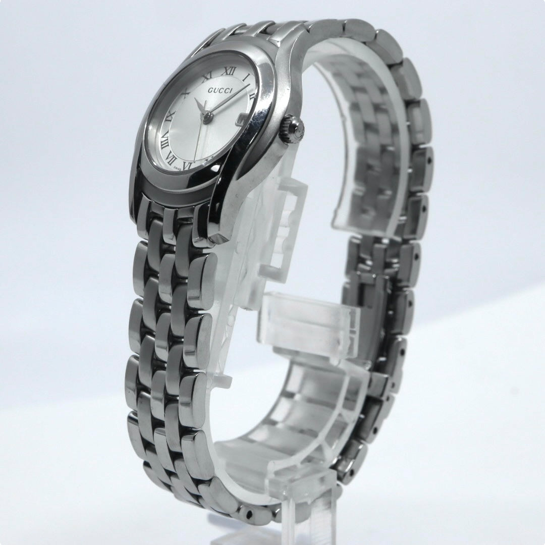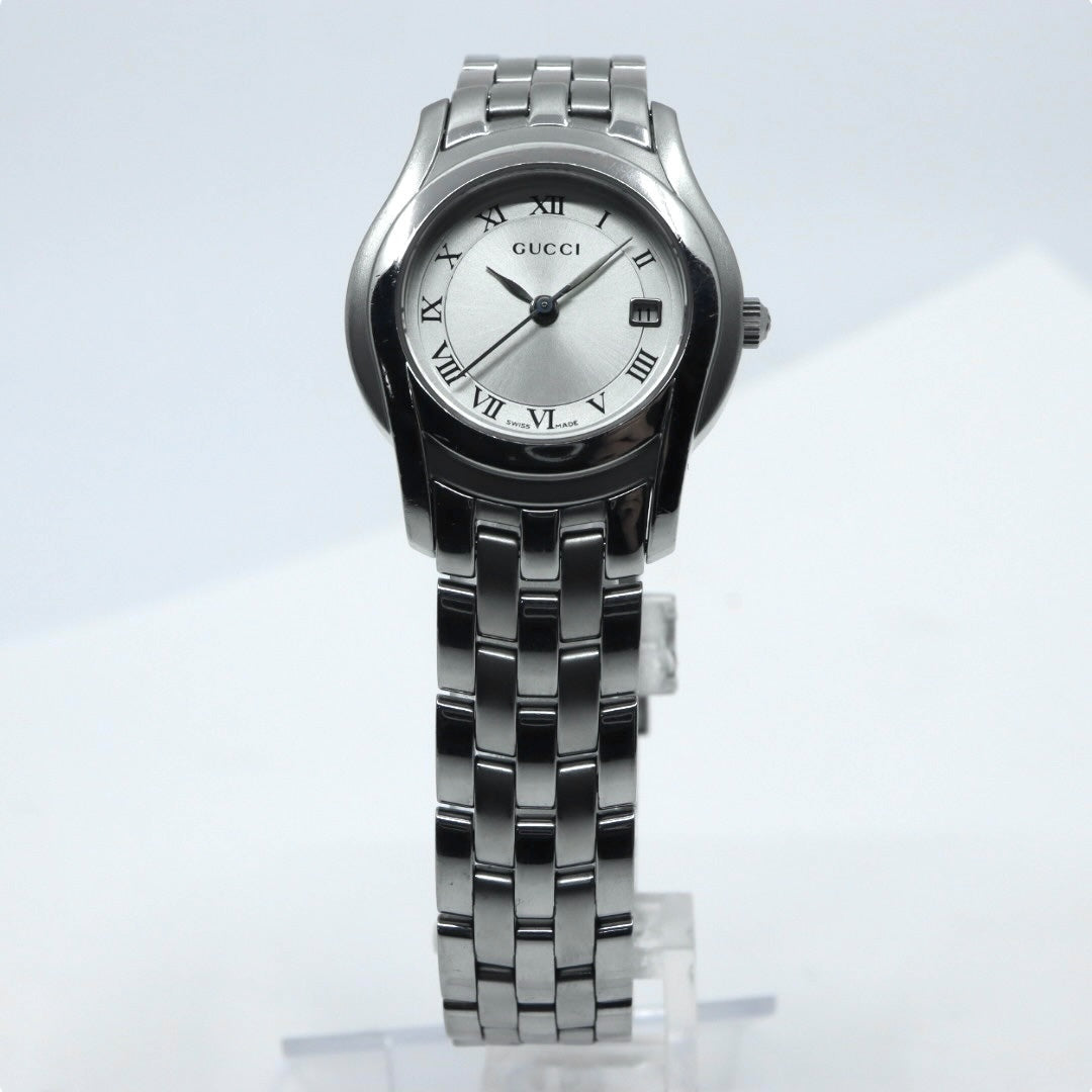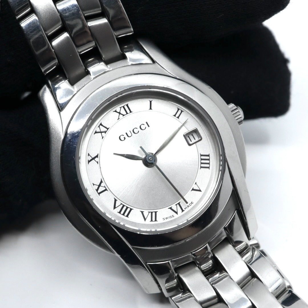 【電池交換済/クリーニング済】グッチ GUCCI 5500L 腕時計 レディースウォッチ クォーツ シルバー文字盤 ローマンインデックス デイト表示 ステンレススチール クラシック エレガント ドレスウォッチ ビジネス 稼働品 G3