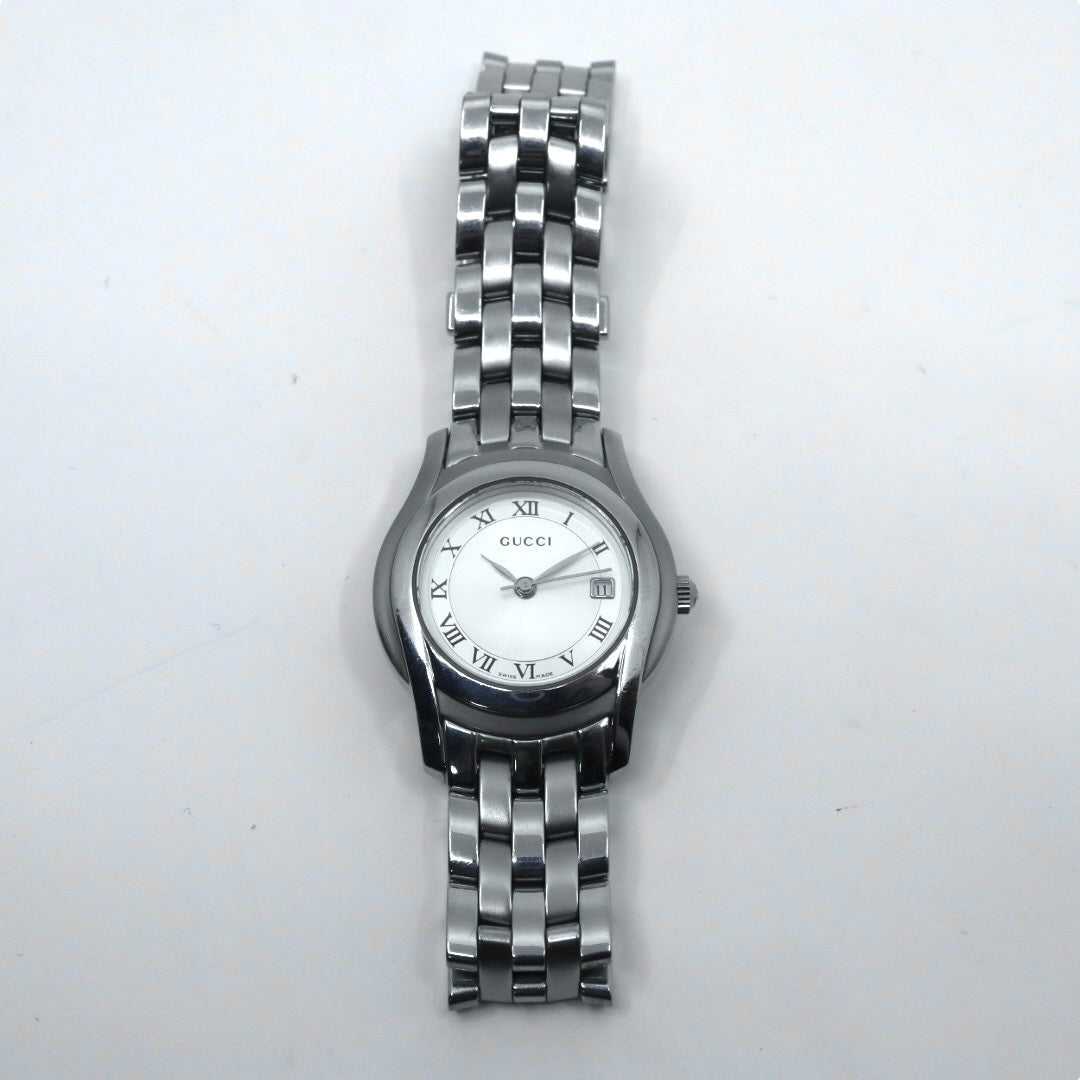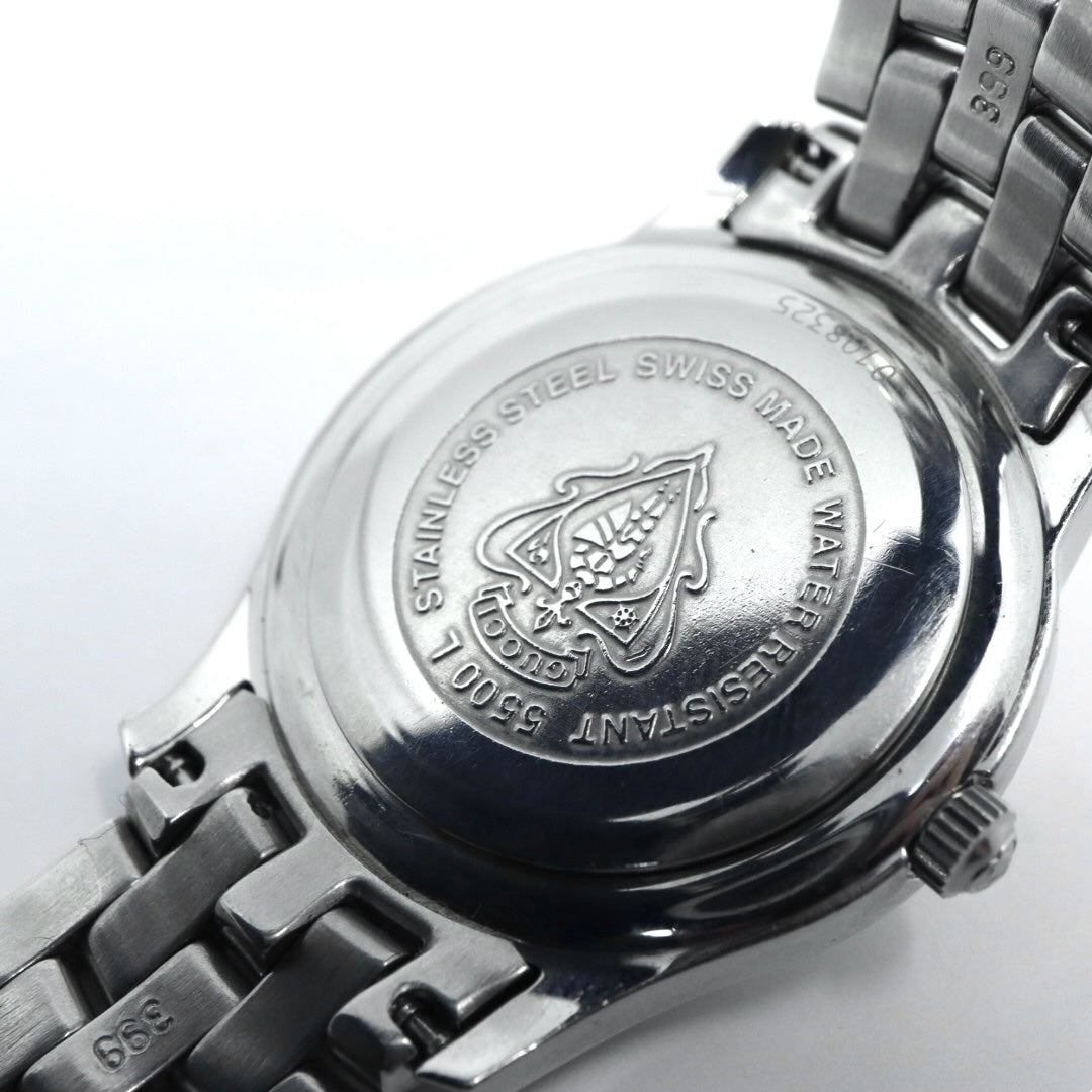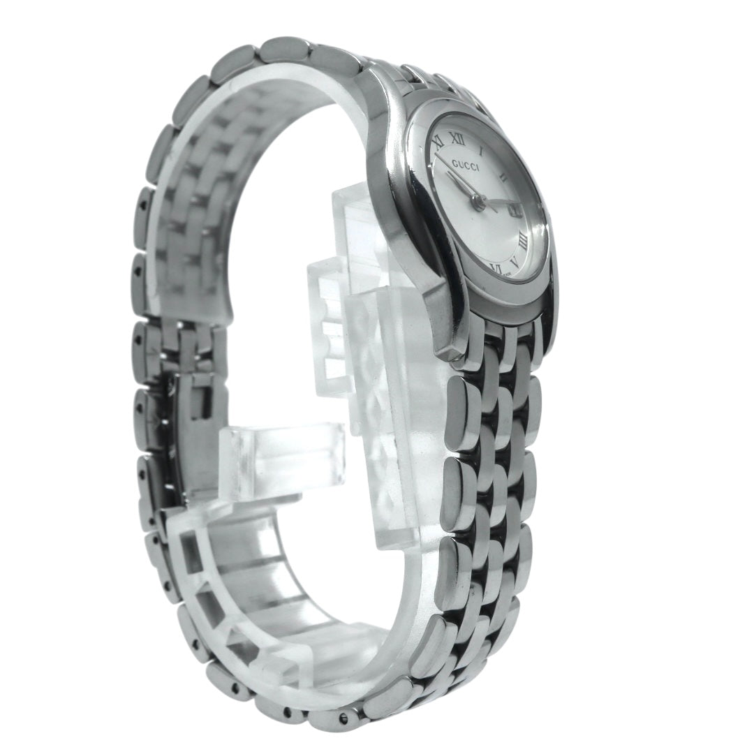 【電池交換済/クリーニング済】グッチ GUCCI 5500L 腕時計 レディースウォッチ クォーツ シルバー文字盤 ローマンインデックス デイト表示 ステンレススチール クラシック エレガント ドレスウォッチ ビジネス 稼働品 G3
