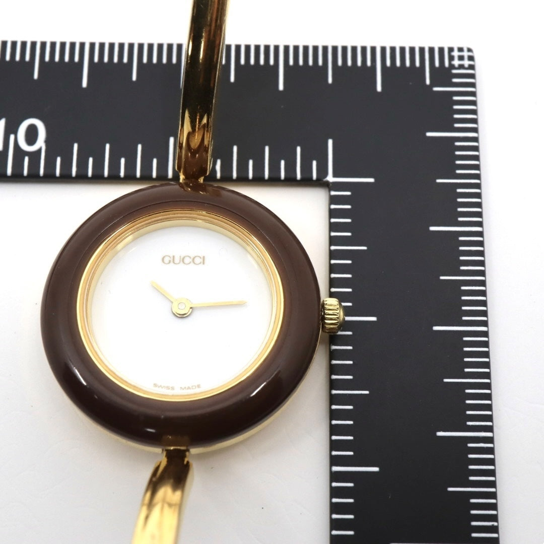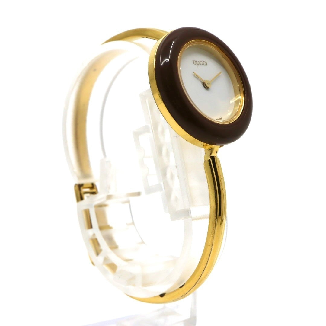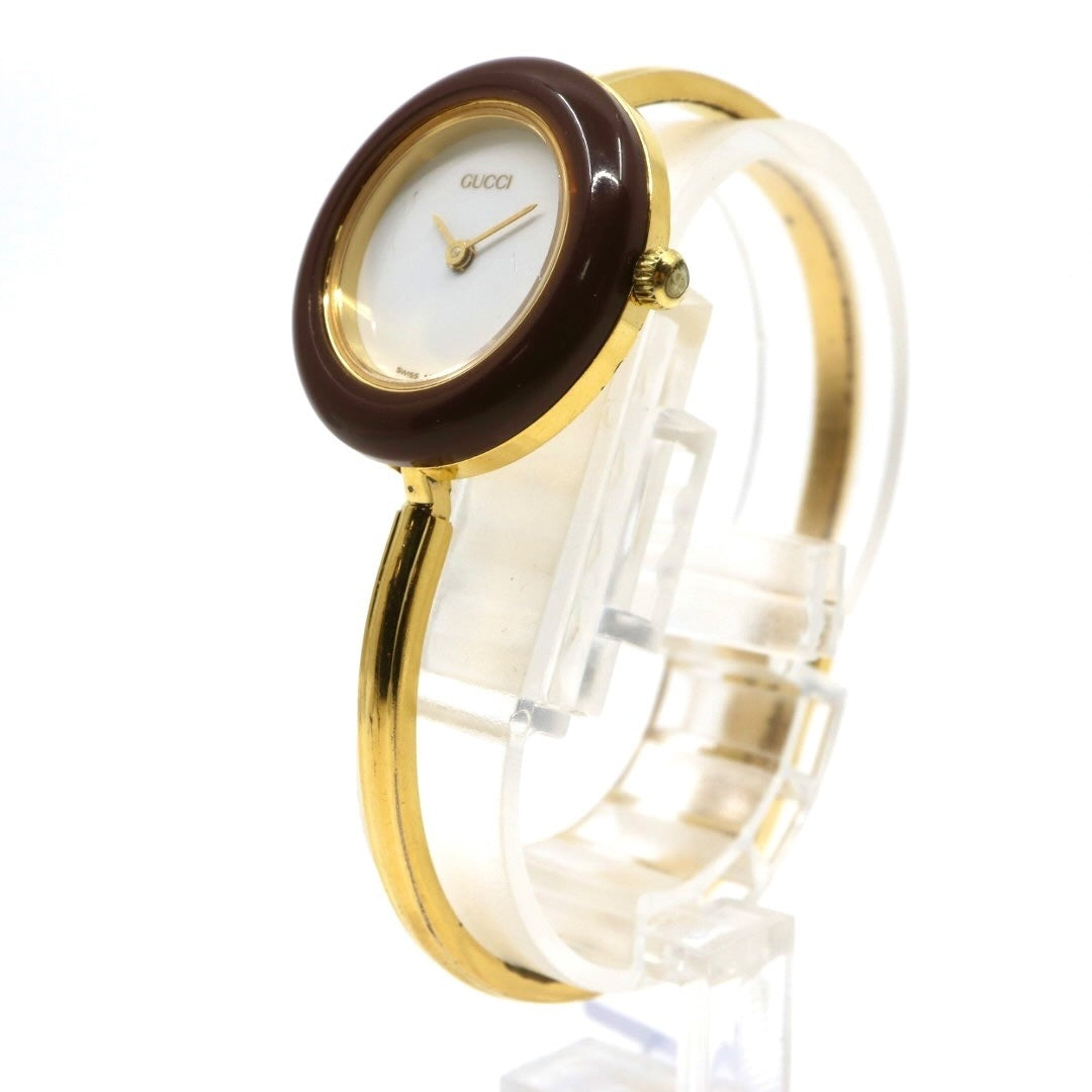 【美品/電池交換済】グッチ GUCCI チェンジベゼル 11/12.2 腕時計 レディースウォッチ クオーツ バングルウォッチ ゴールド ホワイト文字盤 ヴィンテージ アンティーク クラシック エレガント 人気モデル ブラウンベゼル クリーニング済み G3