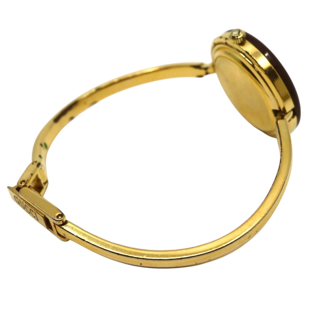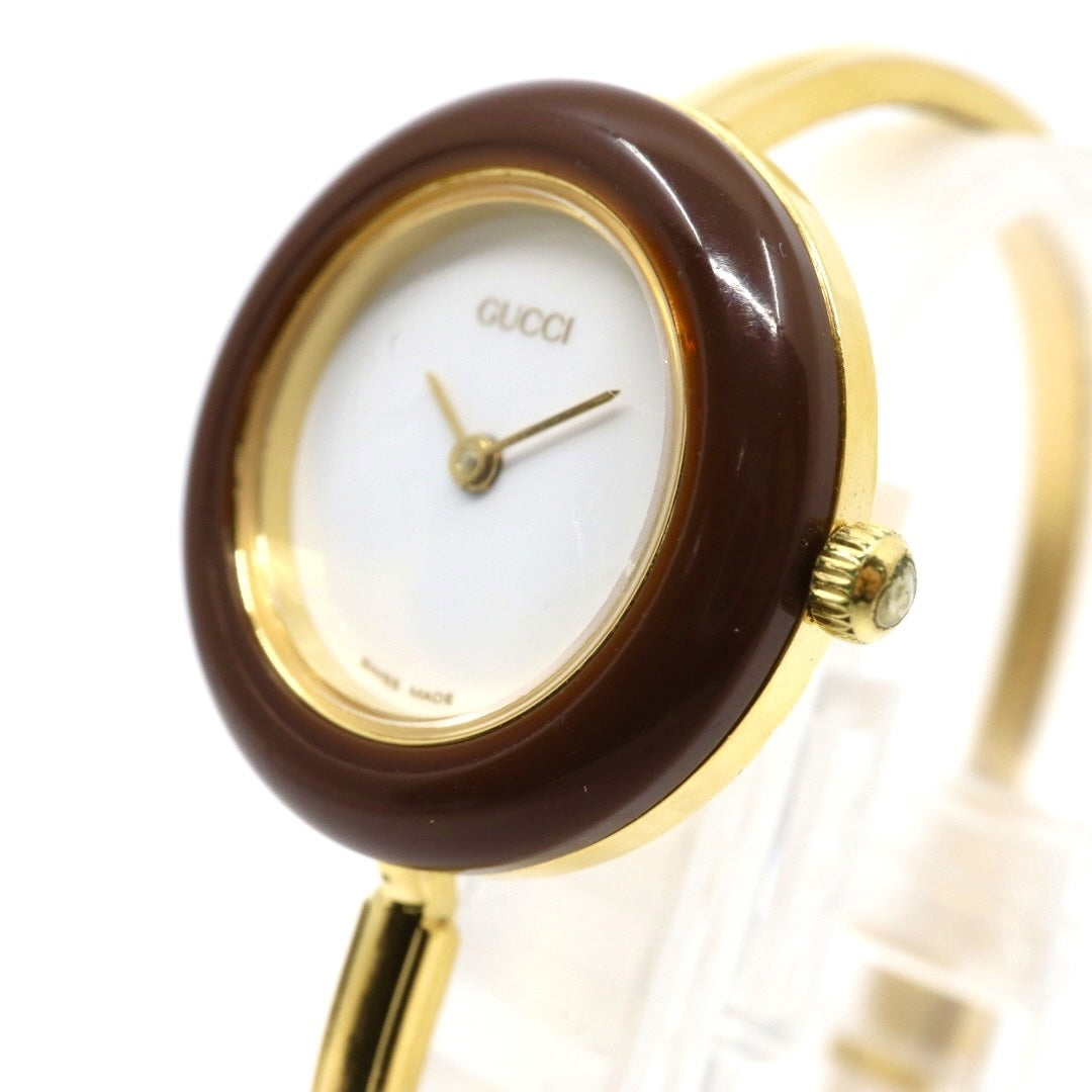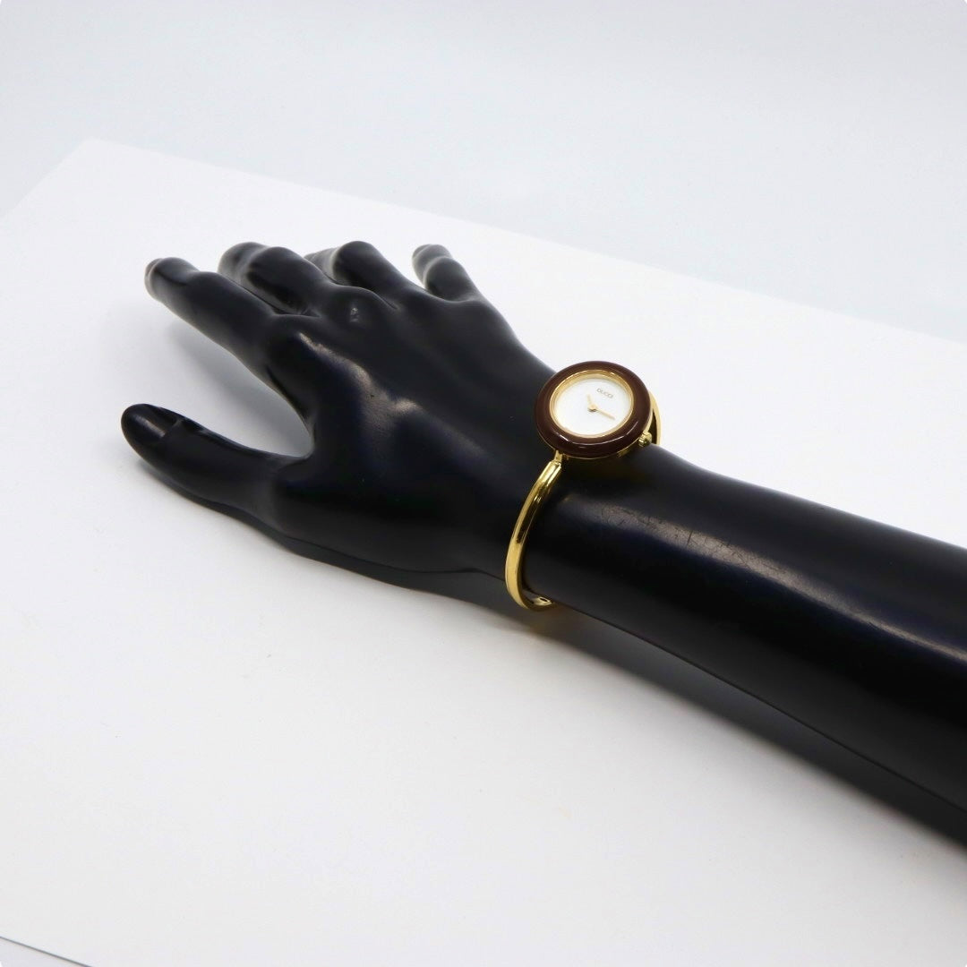 【美品/電池交換済】グッチ GUCCI チェンジベゼル 11/12.2 腕時計 レディースウォッチ クオーツ バングルウォッチ ゴールド ホワイト文字盤 ヴィンテージ アンティーク クラシック エレガント 人気モデル ブラウンベゼル クリーニング済み G3