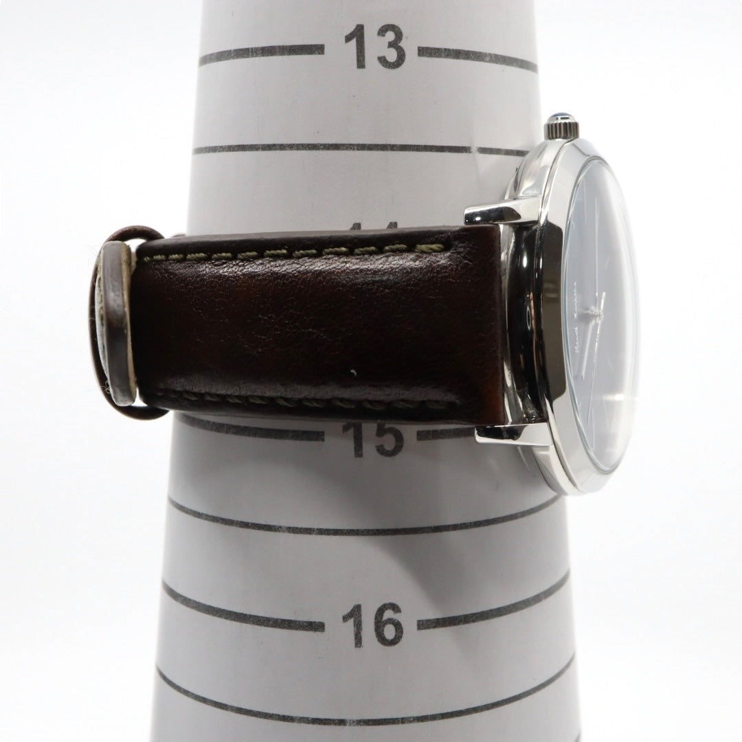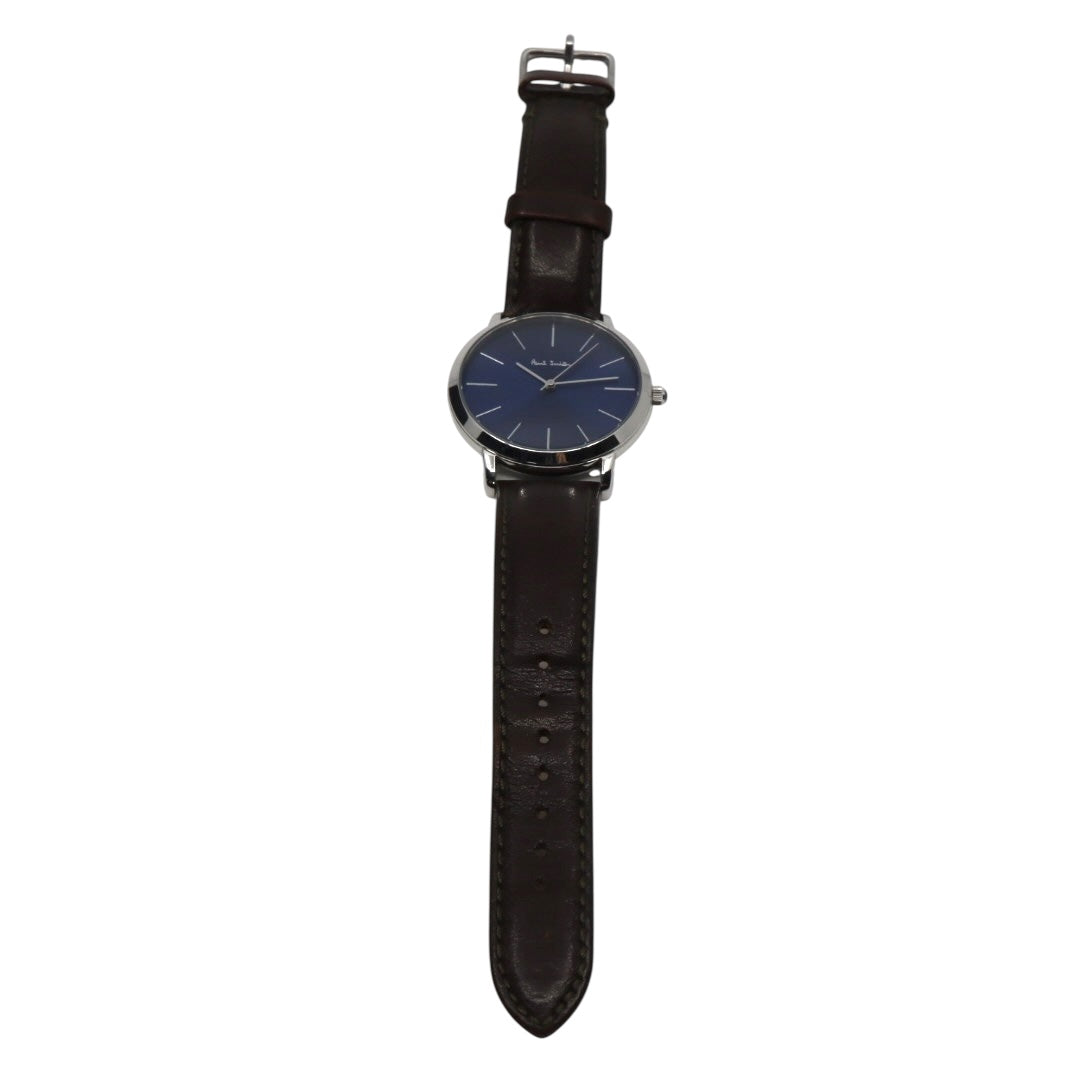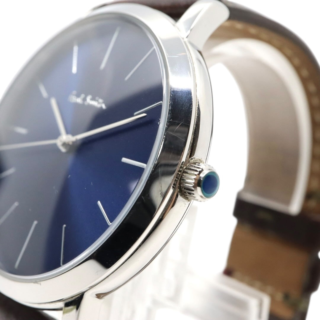美品 【電池交換済】ポールスミス Paul Smith 腕時計 The City 1009 メンズ クオーツ アナログ ブルーダイヤル ブラウンレザーベルト シルバーケース シンプル クラシック ビジネス ドレスウォッチ エレガント クリーニング済み G2