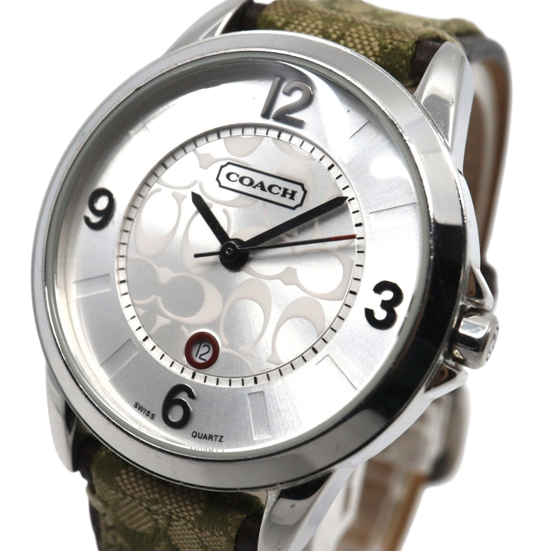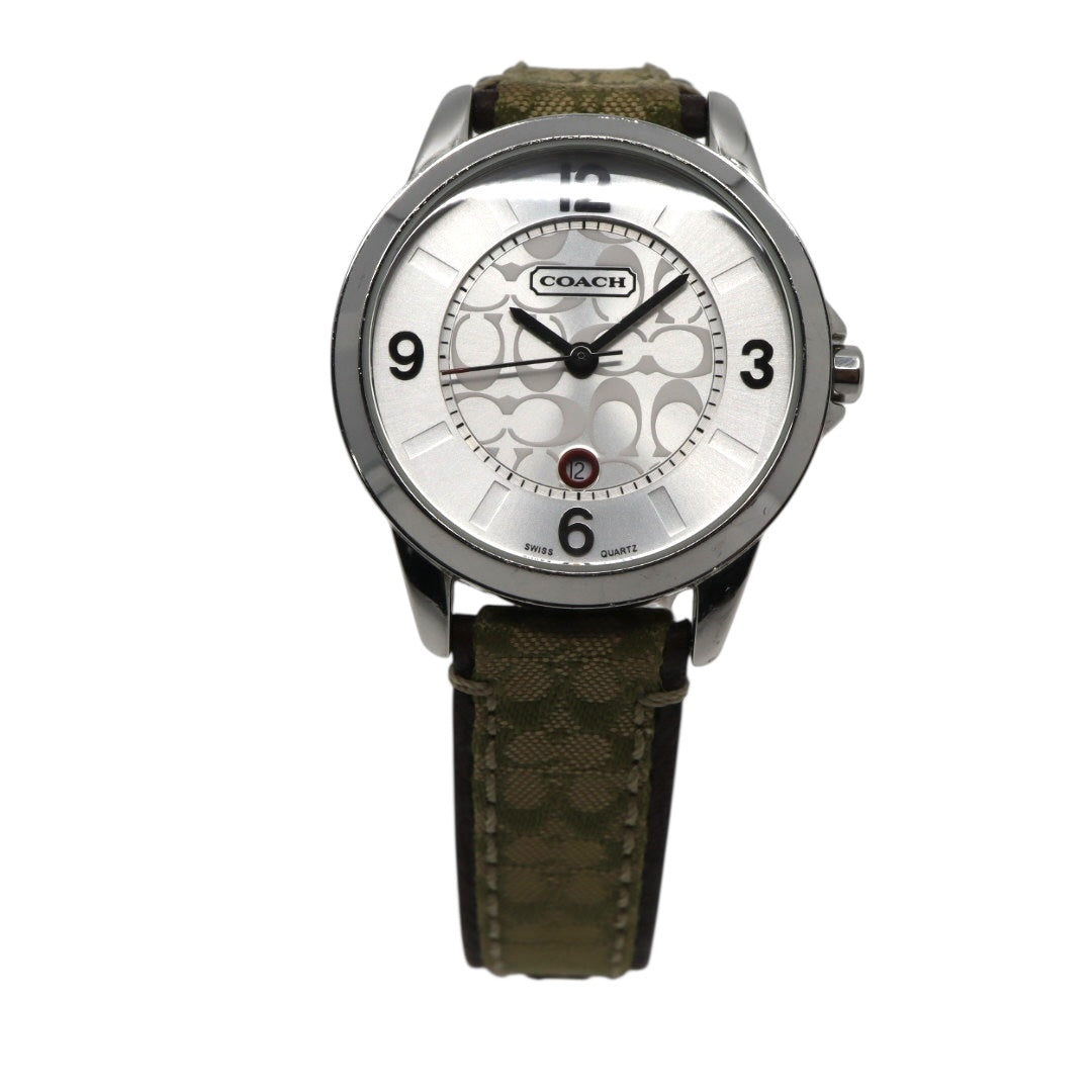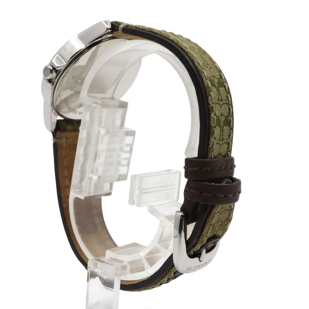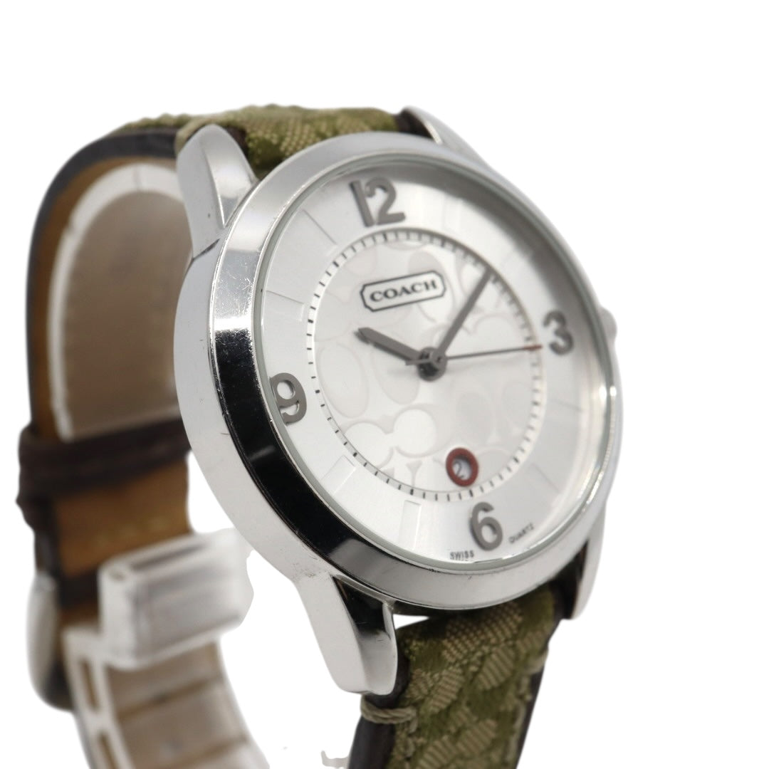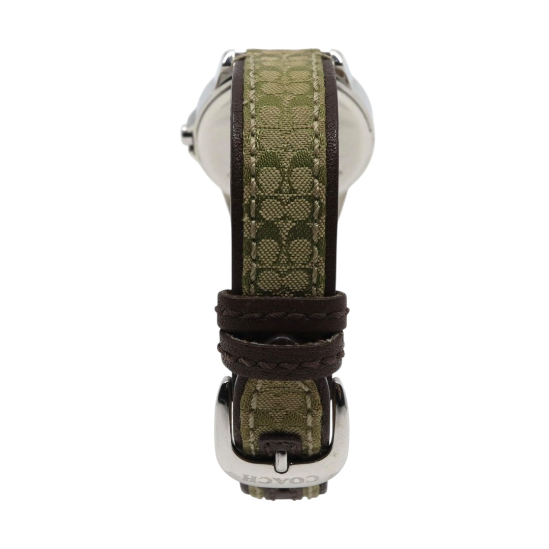 【電池交換済/クリーニング済】コーチ COACH 腕時計 8.180.158 レディースウォッチ クォーツ シルバー文字盤 シグネチャー キャンバスベルト グリーン系 デイトカレンダー アナログ クラシック カジュアル 稼働品 G3