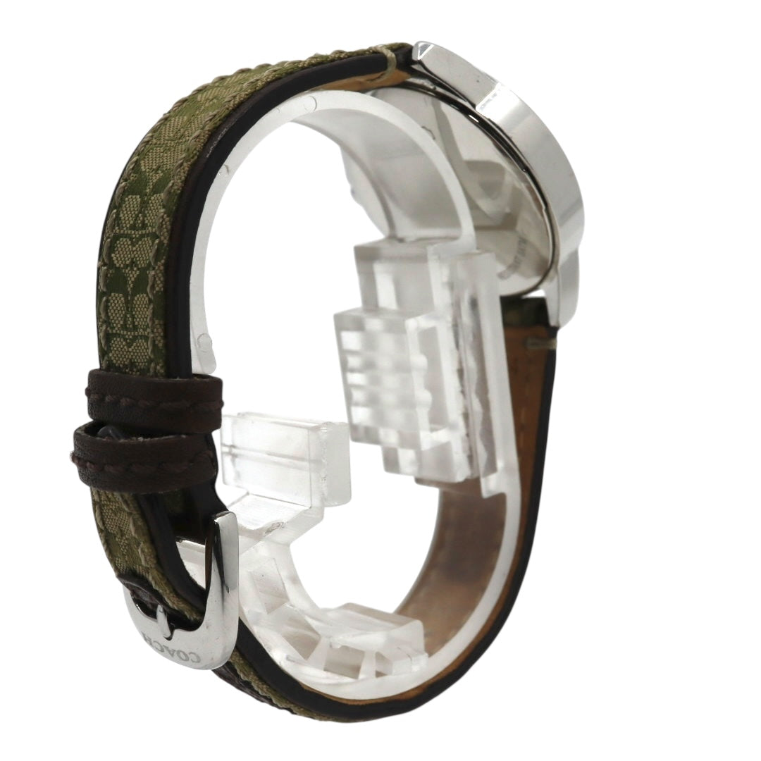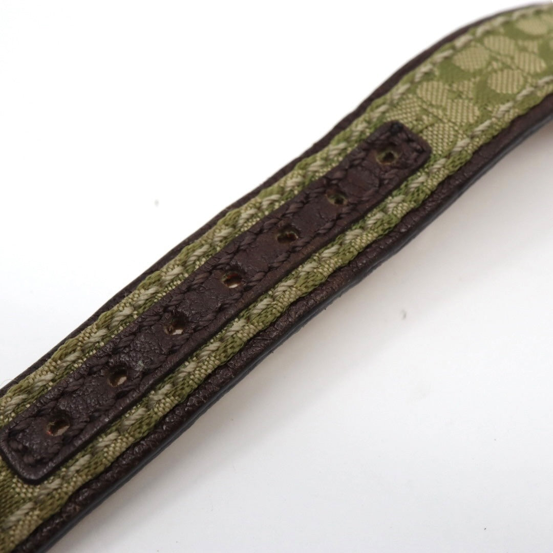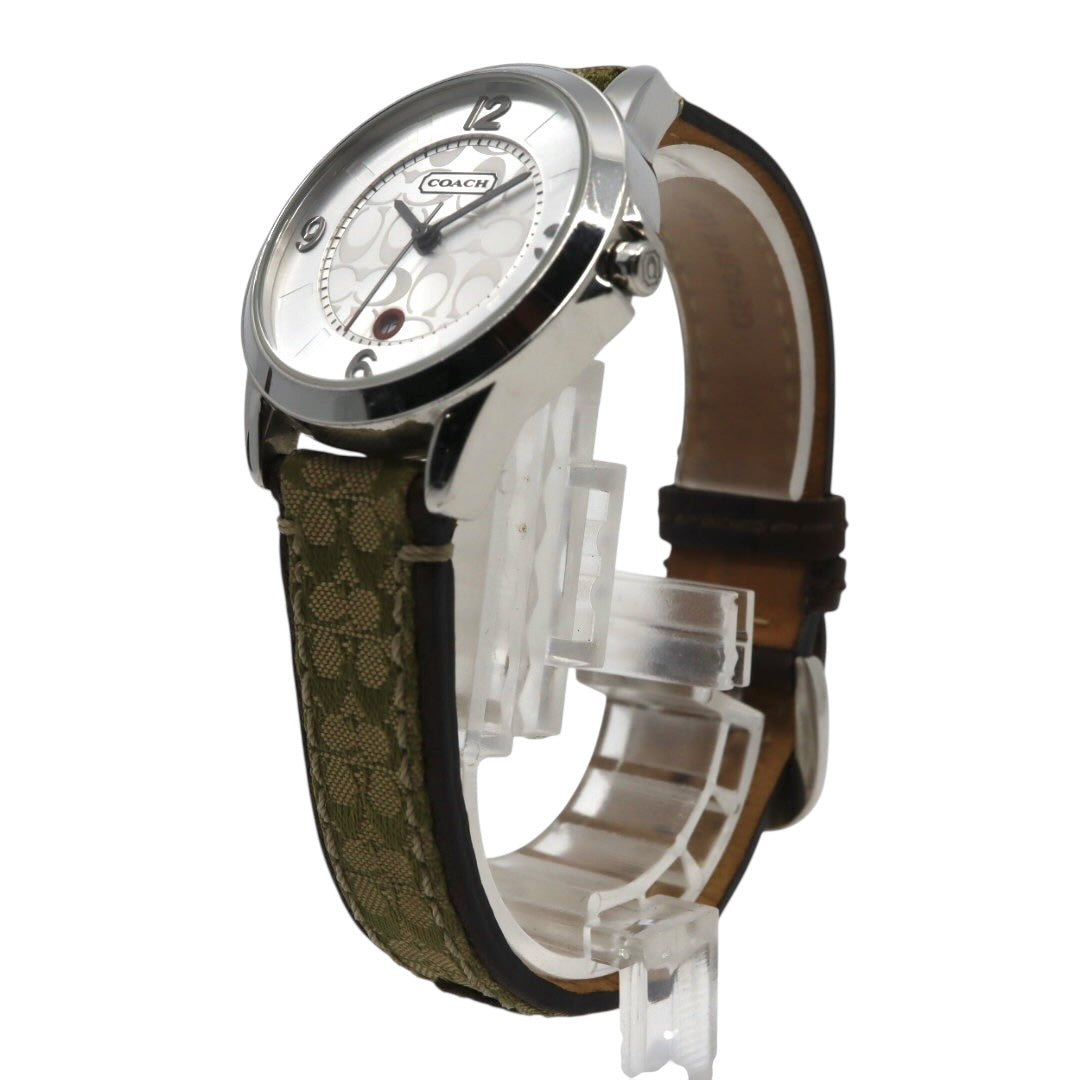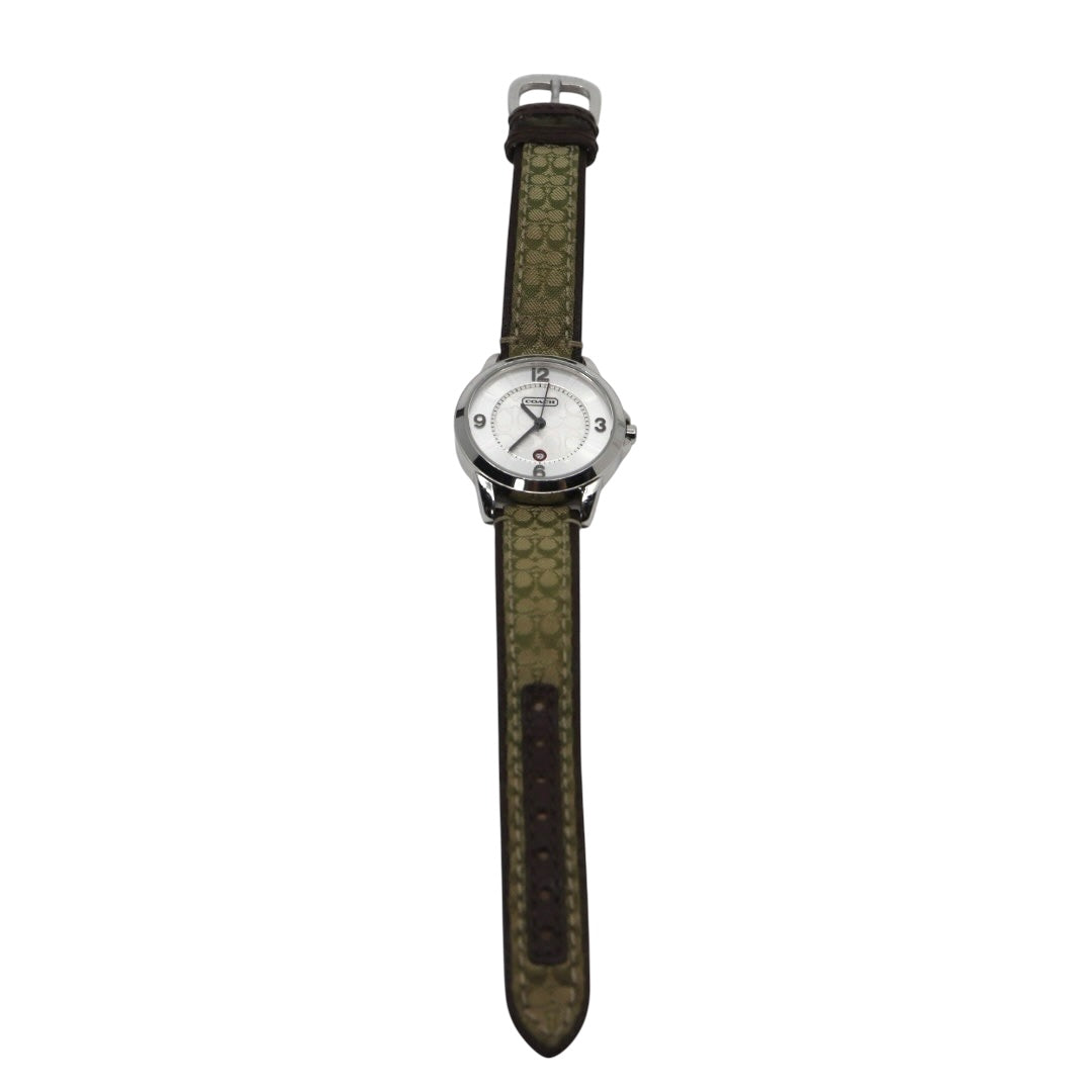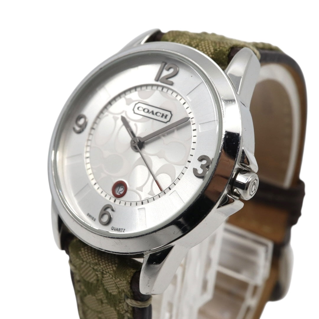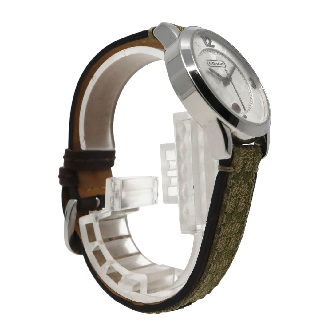 【電池交換済/クリーニング済】コーチ COACH 腕時計 8.180.158 レディースウォッチ クォーツ シルバー文字盤 シグネチャー キャンバスベルト グリーン系 デイトカレンダー アナログ クラシック カジュアル 稼働品 G3