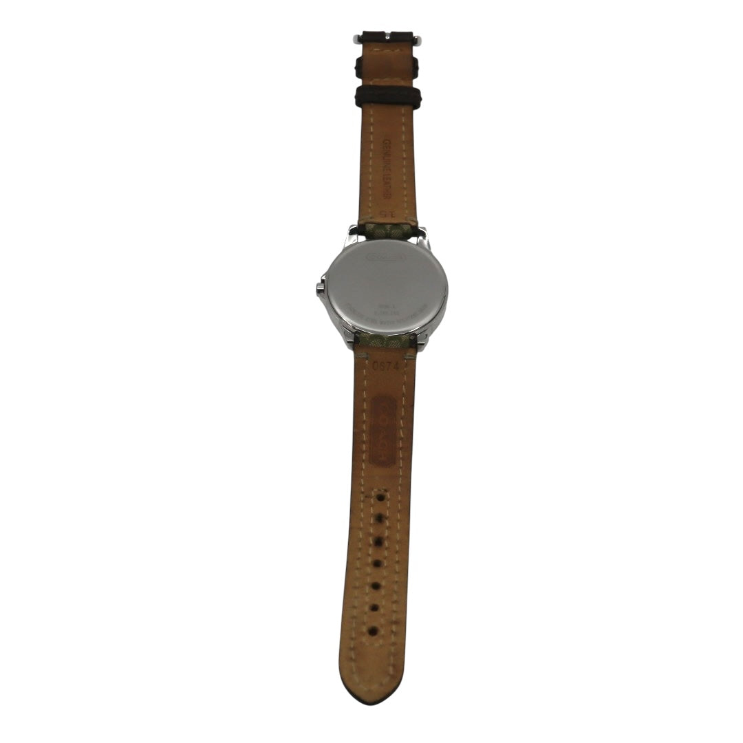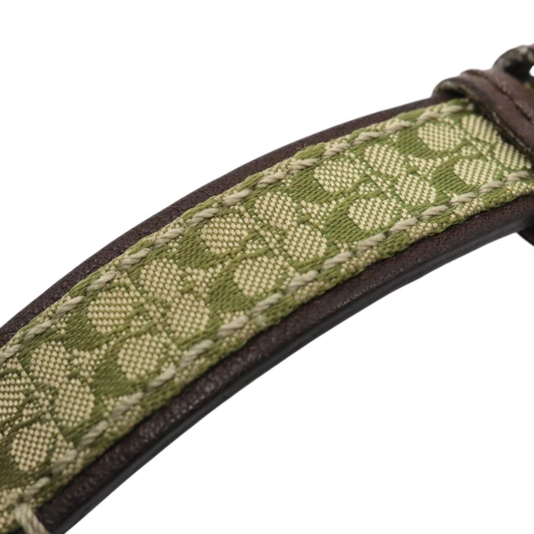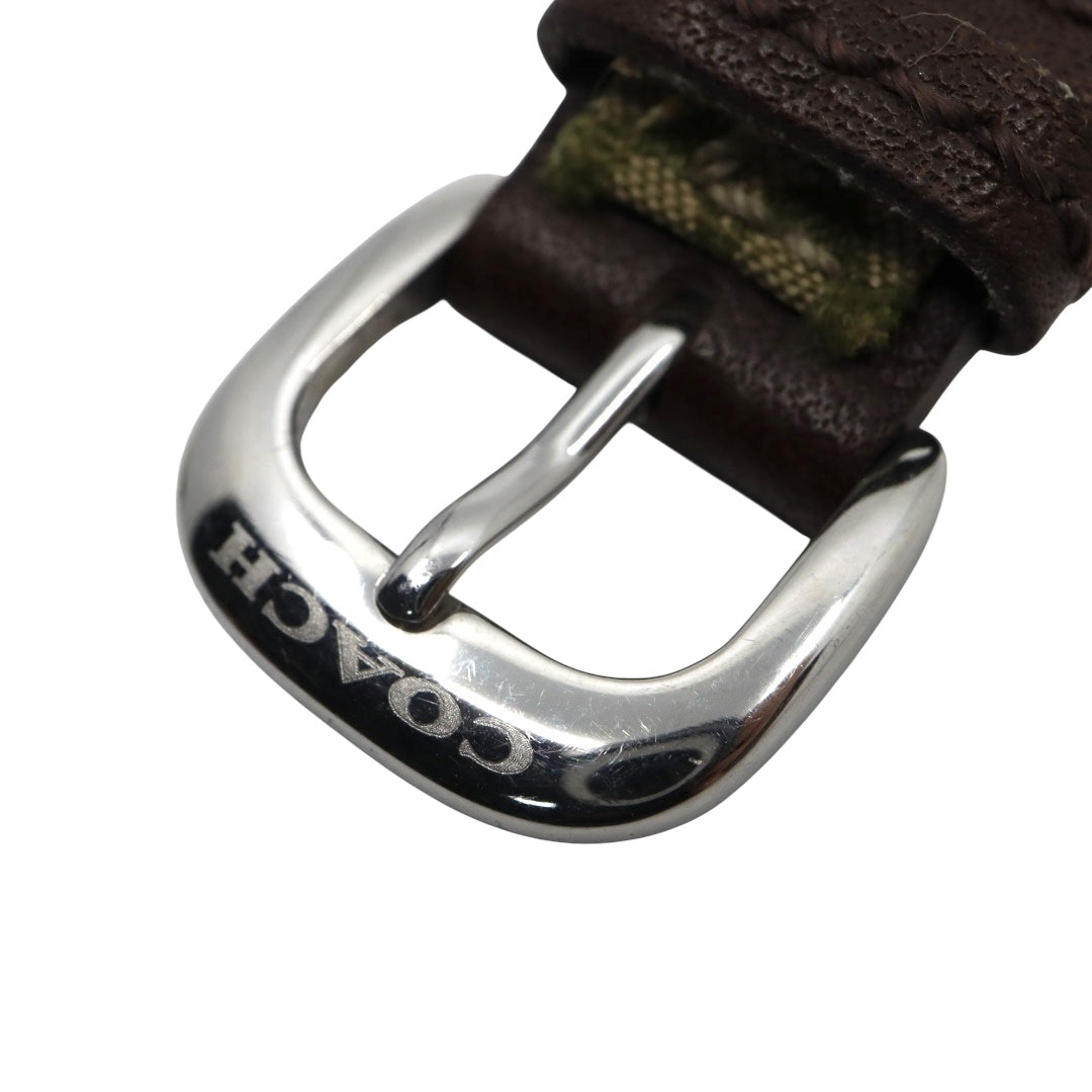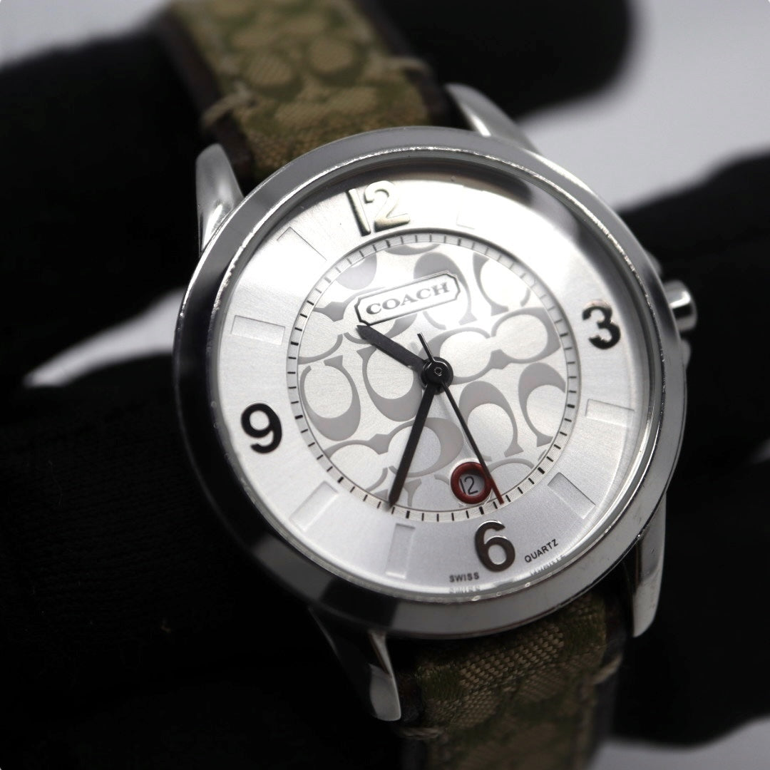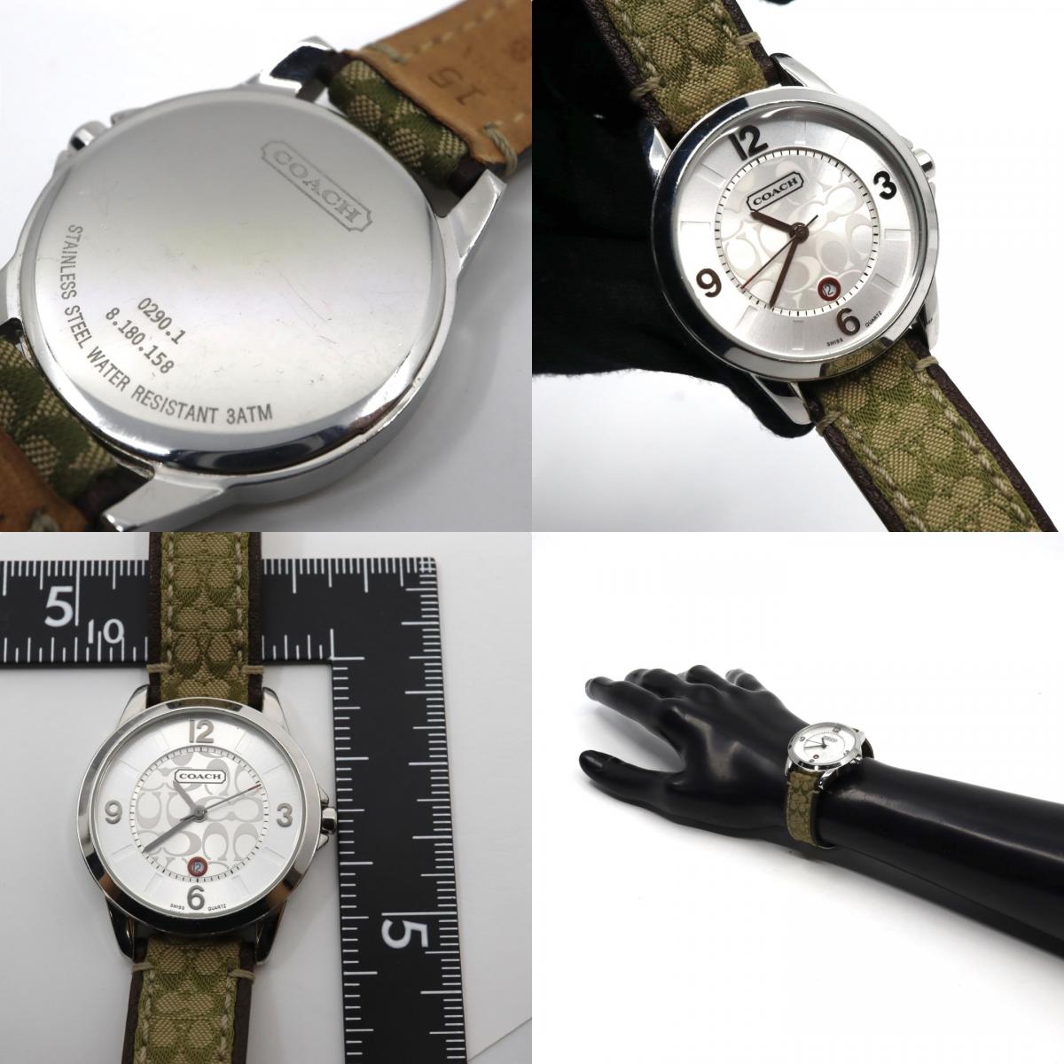 【電池交換済/クリーニング済】コーチ COACH 腕時計 8.180.158 レディースウォッチ クォーツ シルバー文字盤 シグネチャー キャンバスベルト グリーン系 デイトカレンダー アナログ クラシック カジュアル 稼働品 G3