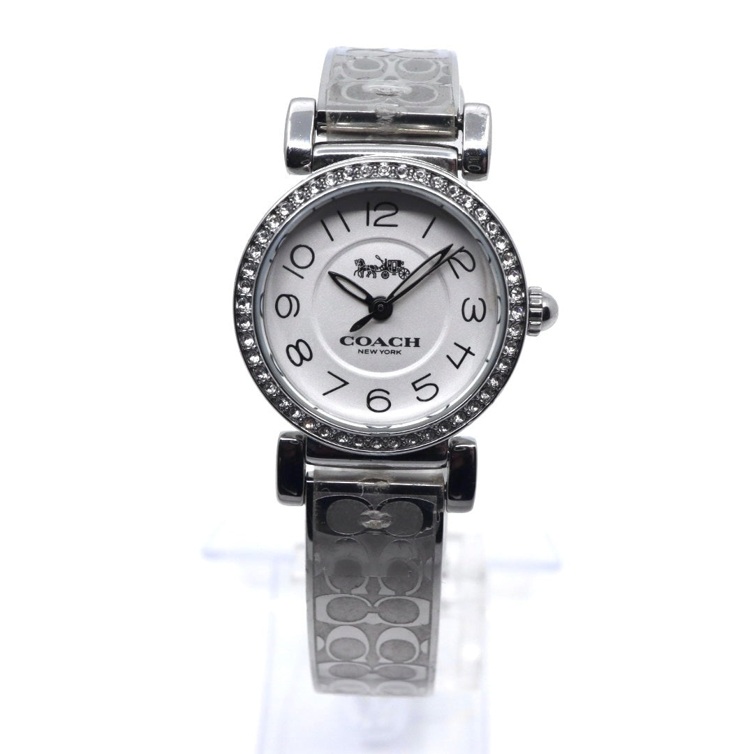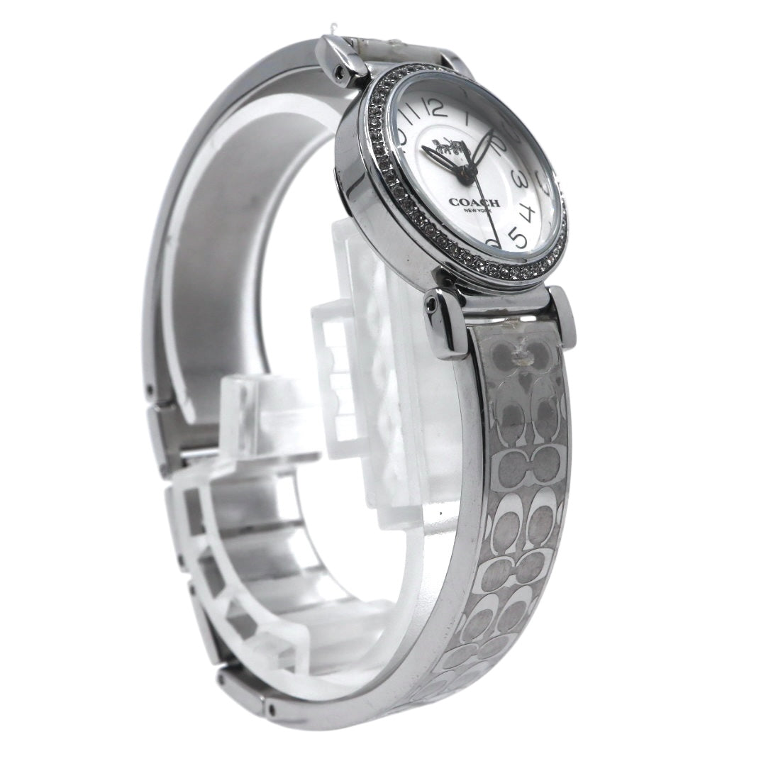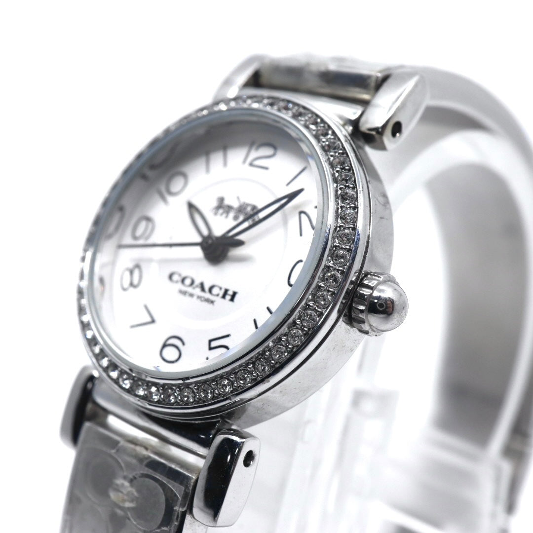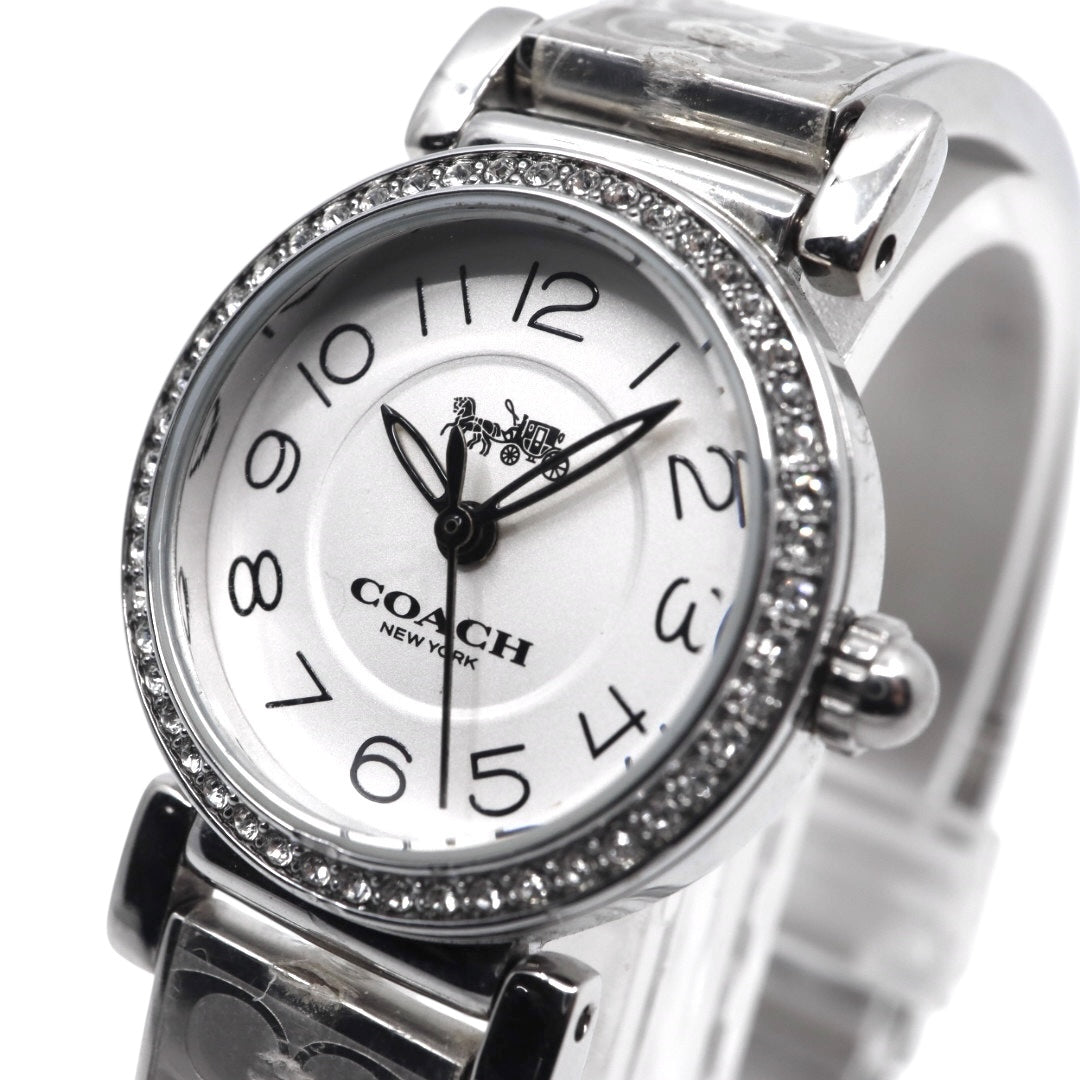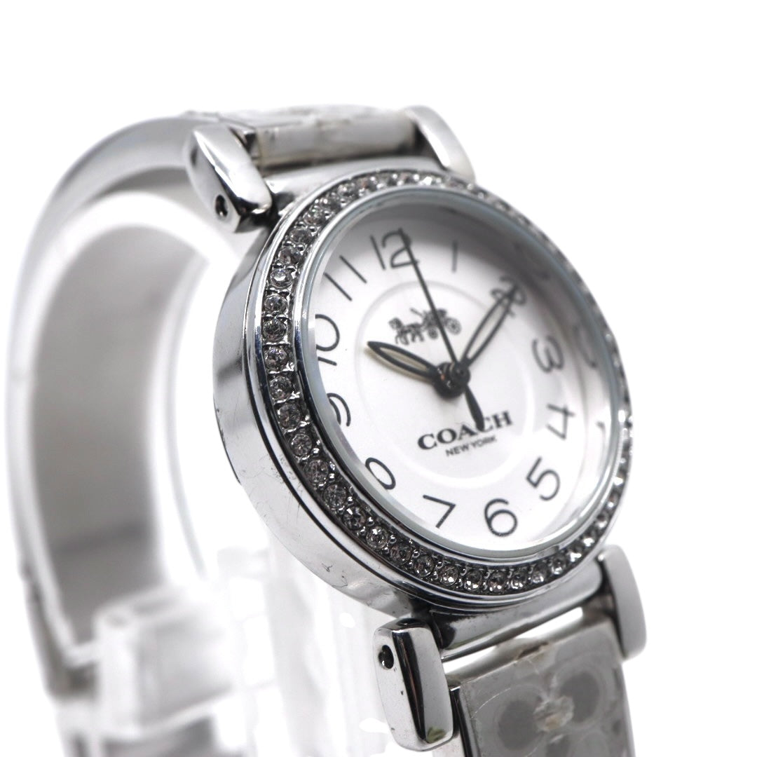 美品 電池交換済 コーチ COACH 腕時計 CA.66.7.95.1489S レディースウォッチ クォーツ ラインストーンベゼル シルバー ホワイト文字盤 シグネチャー柄ブレスレット アナログ エレガント クラシック ドレスウォッチ 稼働品 G3