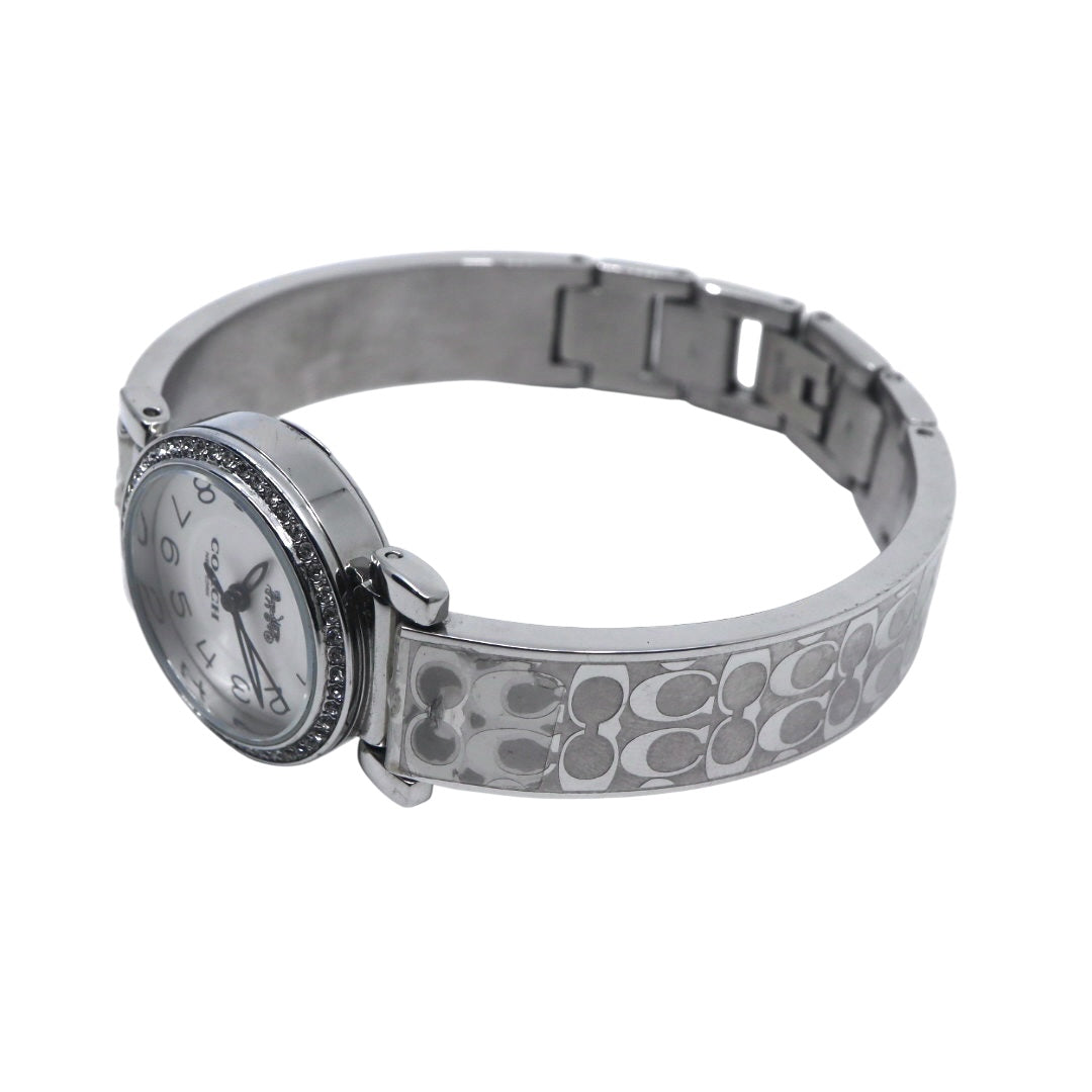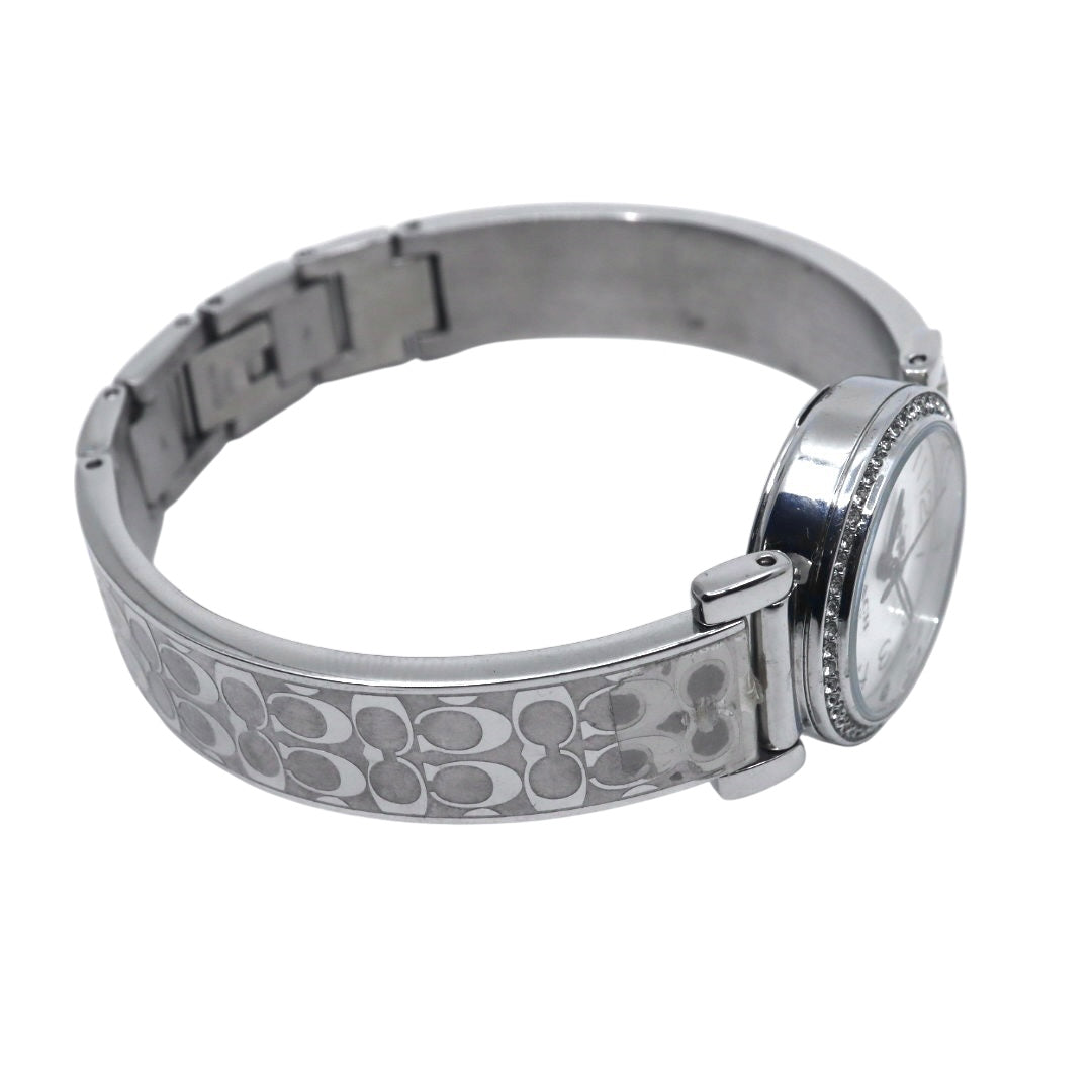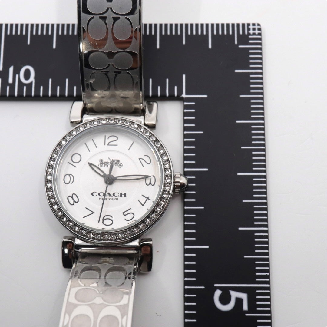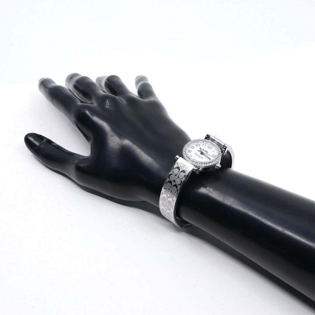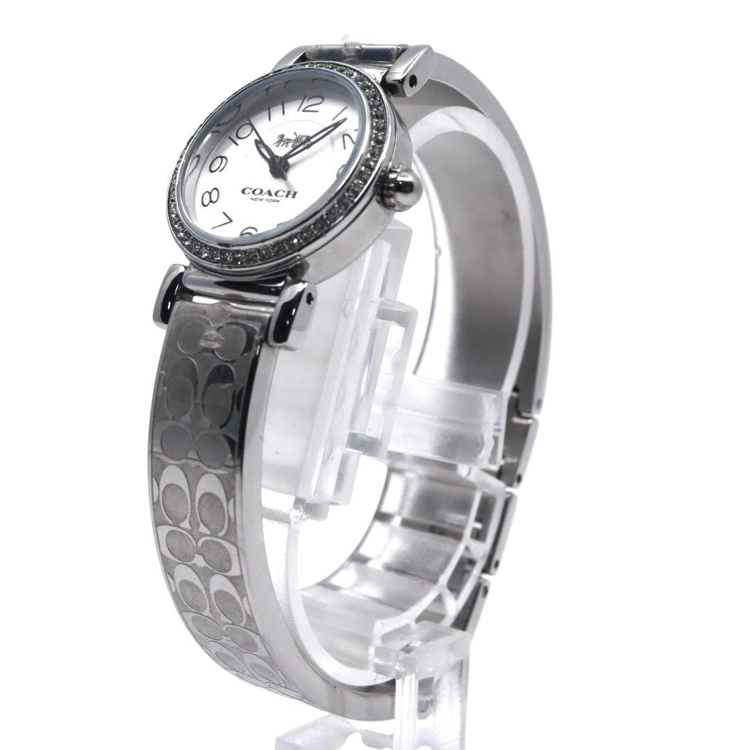美品 電池交換済 コーチ COACH 腕時計 CA.66.7.95.1489S レディースウォッチ クォーツ ラインストーンベゼル シルバー ホワイト文字盤 シグネチャー柄ブレスレット アナログ エレガント クラシック ドレスウォッチ 稼働品 G3