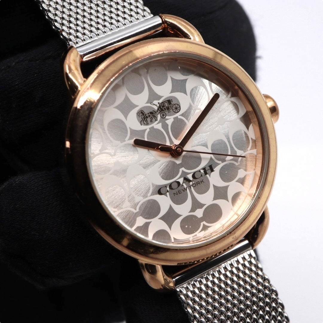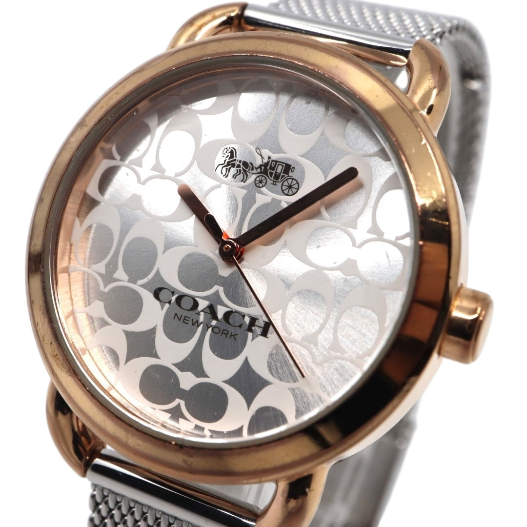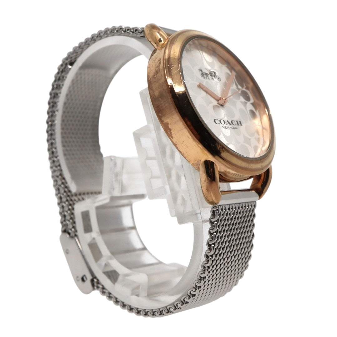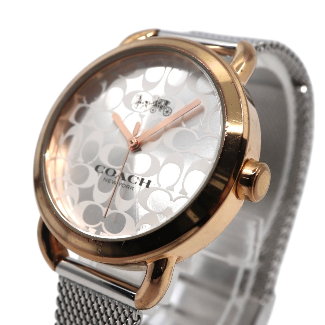 美品 電池交換済 コーチ 腕時計 CA.105.7.95.1319 レディース クオーツ シグネチャー柄文字盤 ピンクゴールド シルバー コンビカラー メッシュベルト エレガント フェミニン ドレスウォッチ クリーニング済み G3