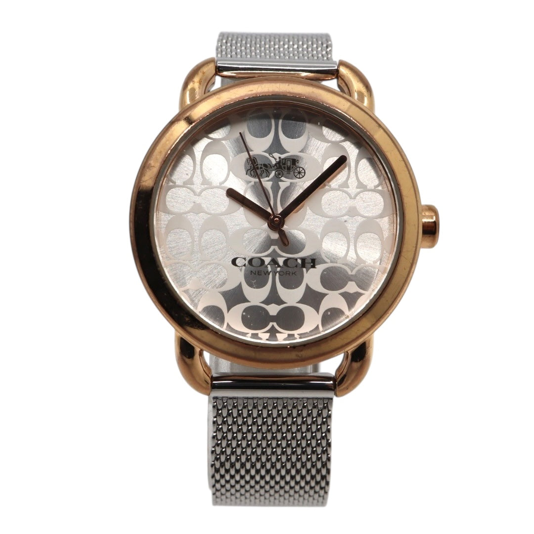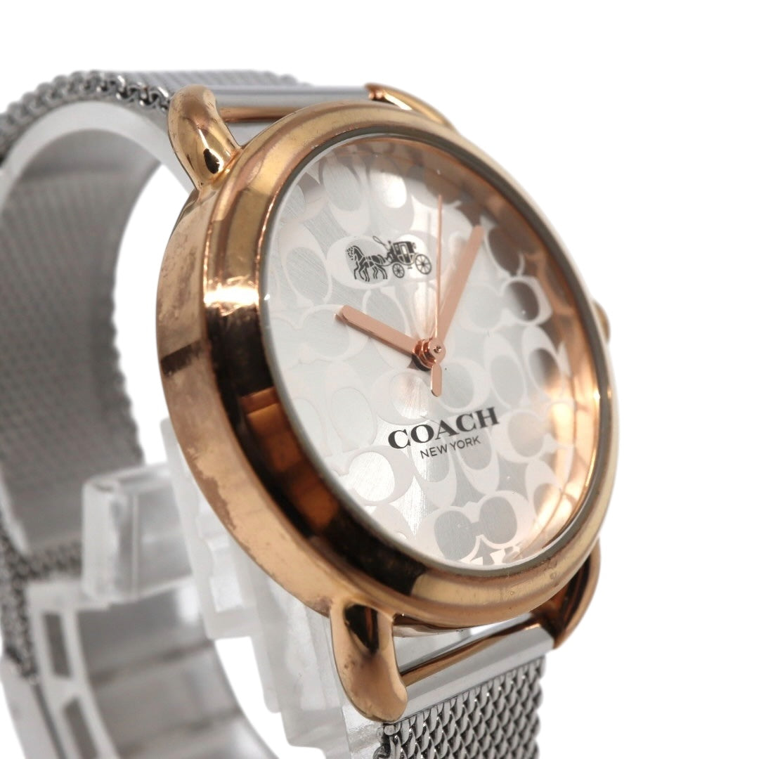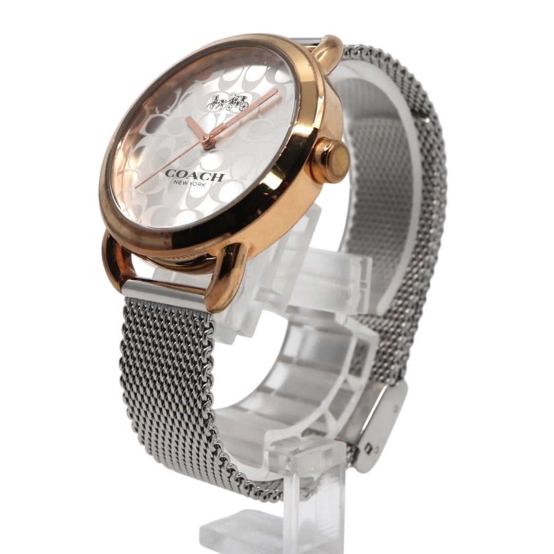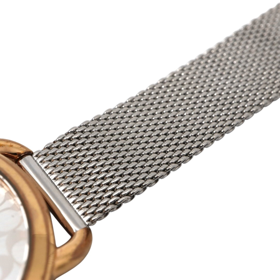 美品 電池交換済 コーチ 腕時計 CA.105.7.95.1319 レディース クオーツ シグネチャー柄文字盤 ピンクゴールド シルバー コンビカラー メッシュベルト エレガント フェミニン ドレスウォッチ クリーニング済み G3