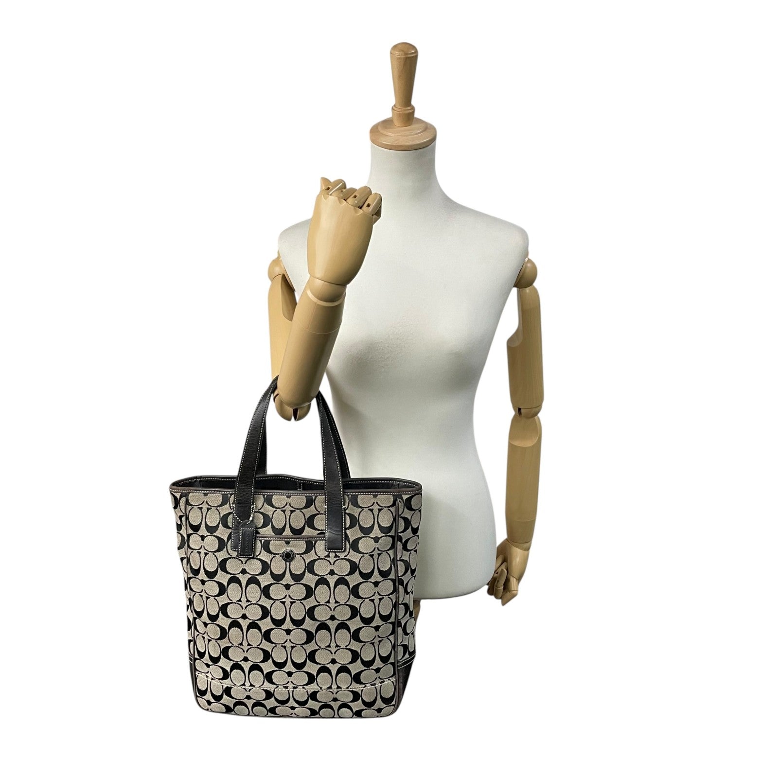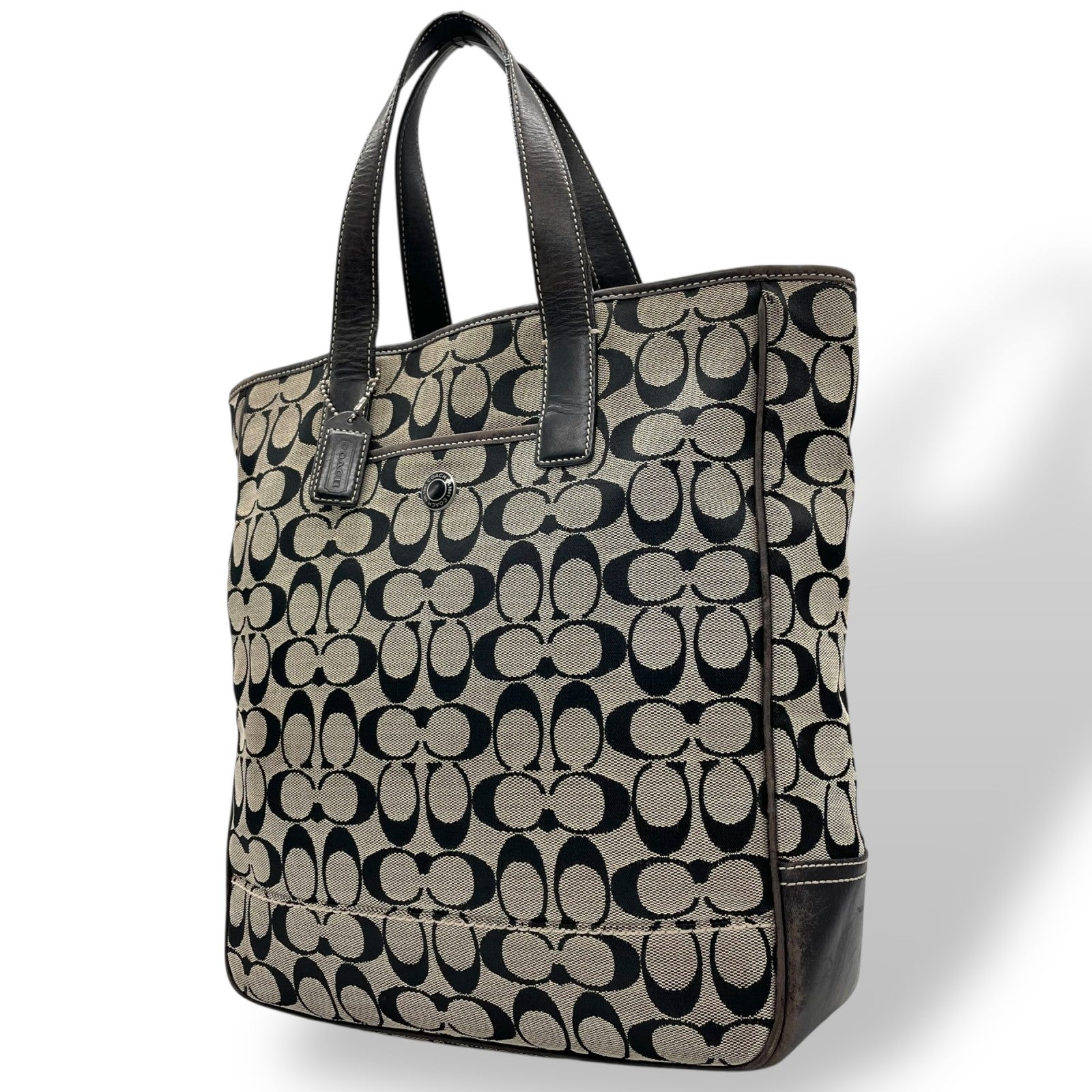 コーチ COACH シグネチャー トートバッグ ブラック 黒 ベージュ ジャガード キャンバス レザー 7069 T4