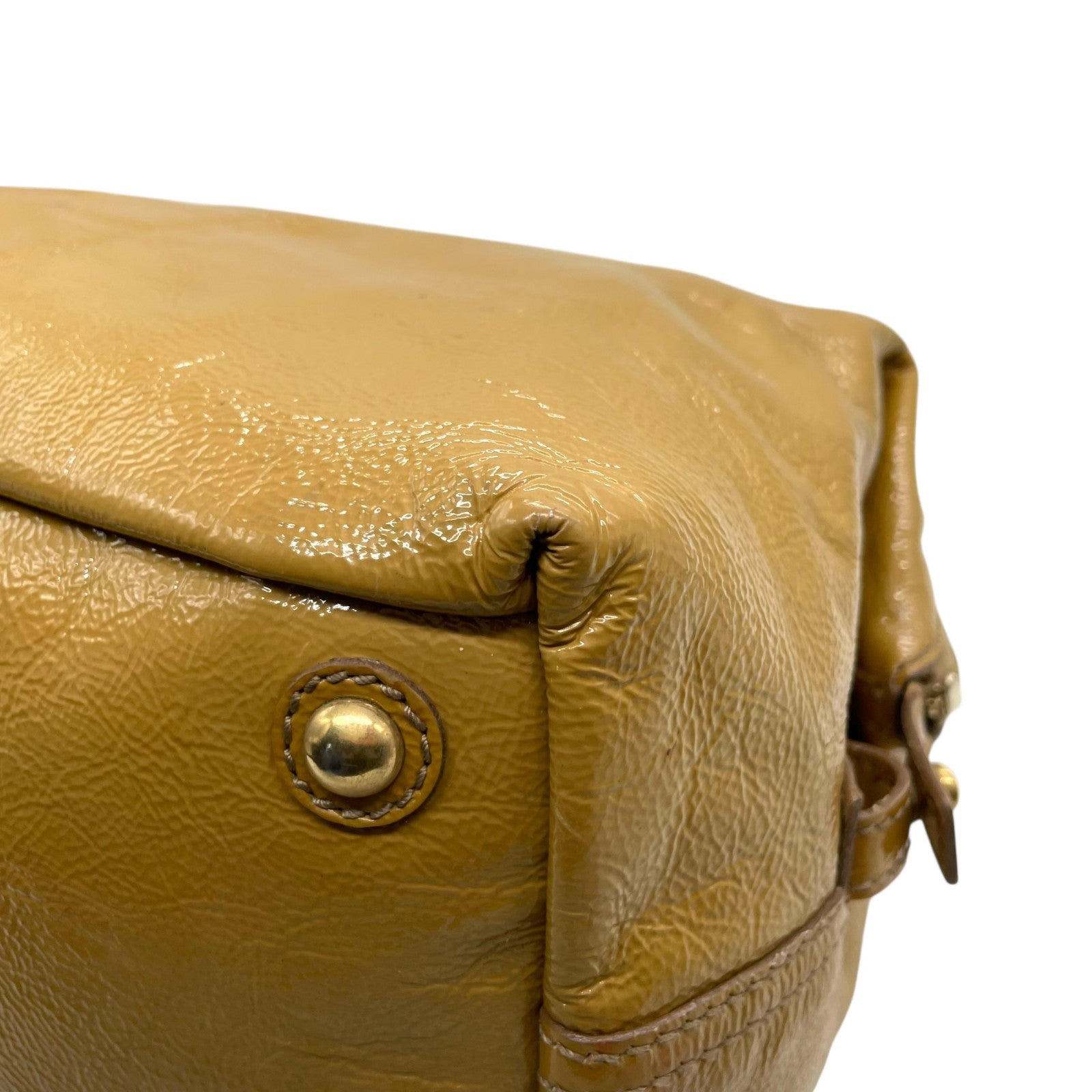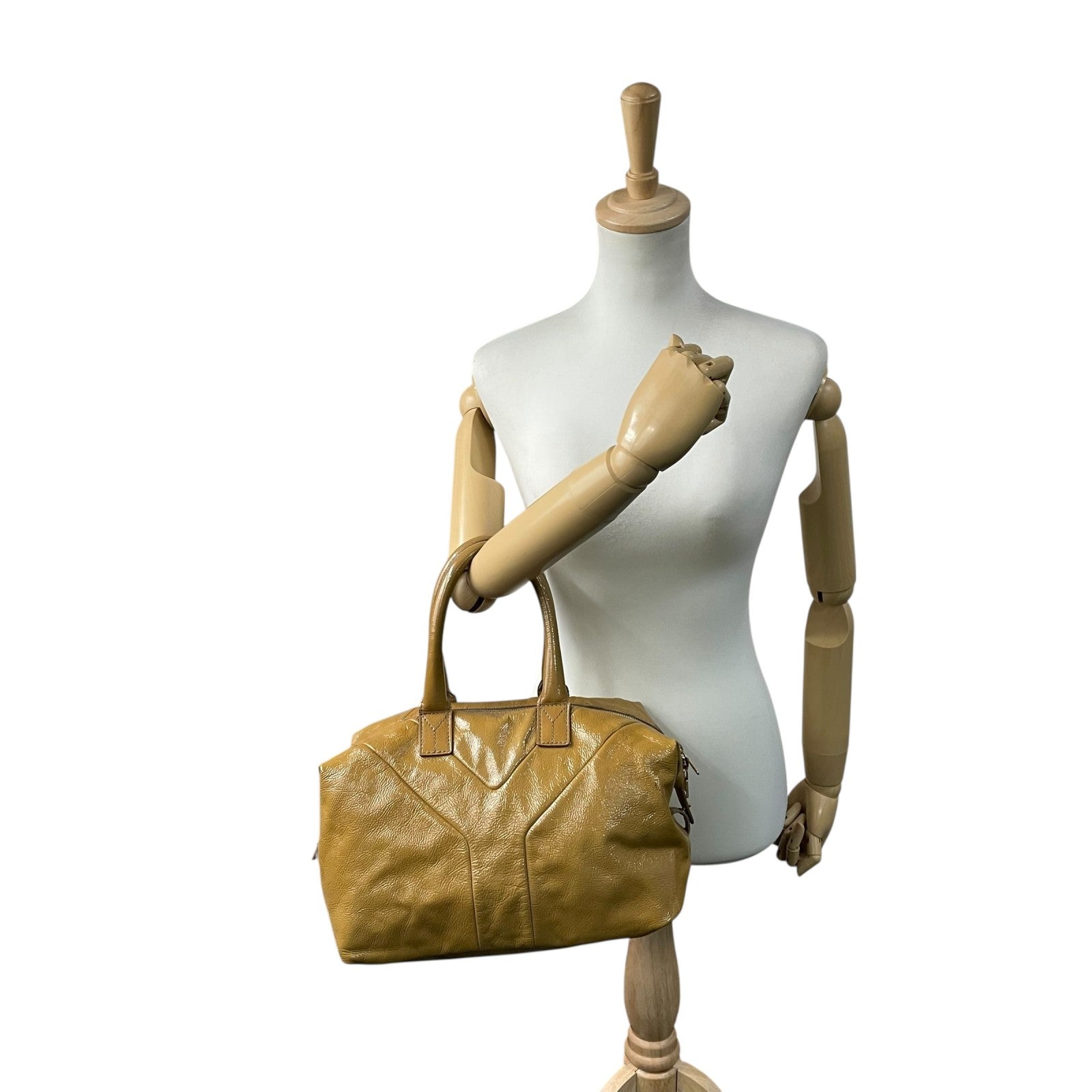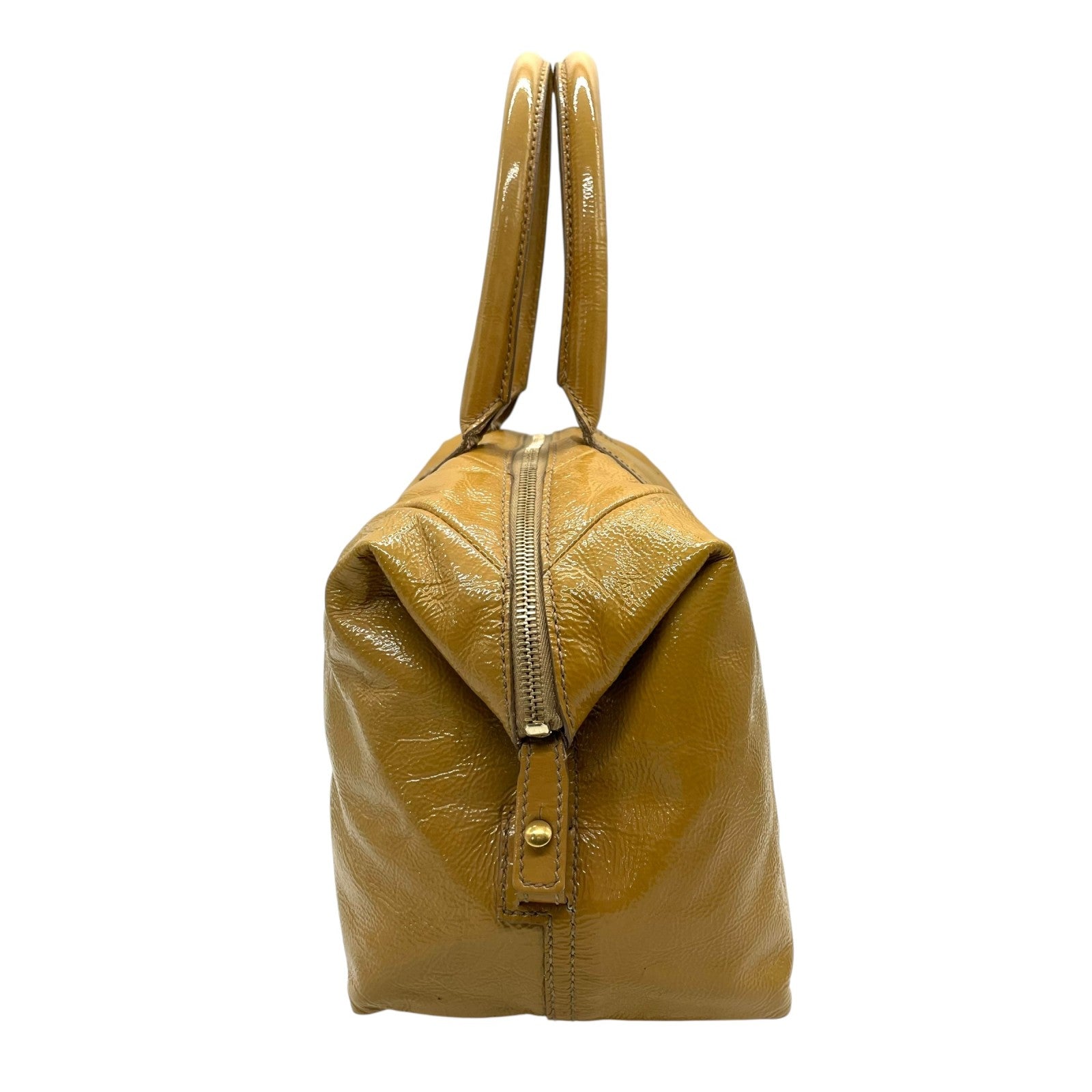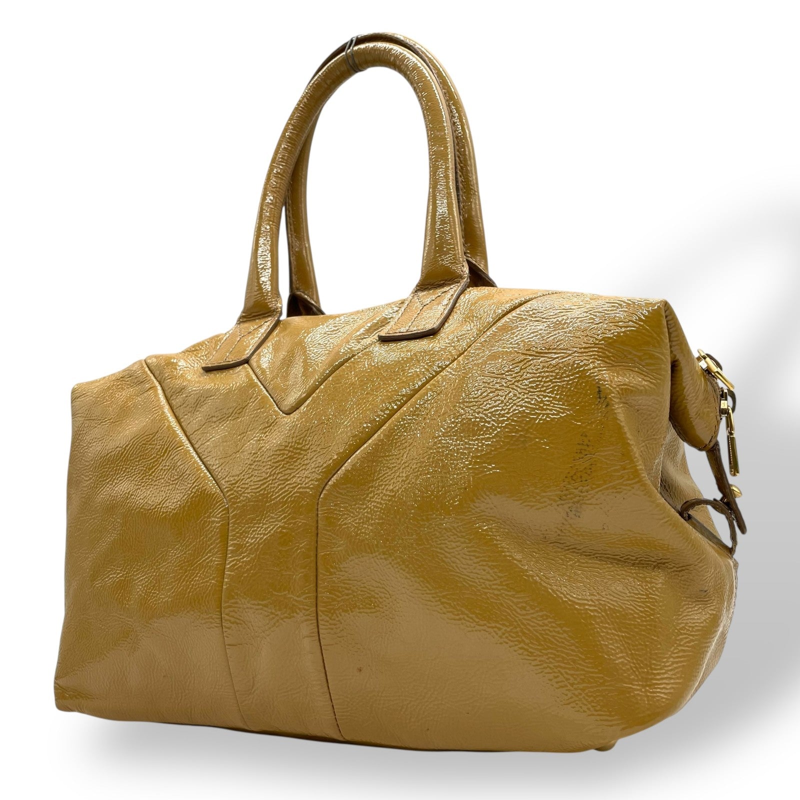 イヴサンローラン YSL ボストンバッグ Yライン パテントレザー ハンドバッグ キャメル ゴールド金具 ロゴ刻印 A2