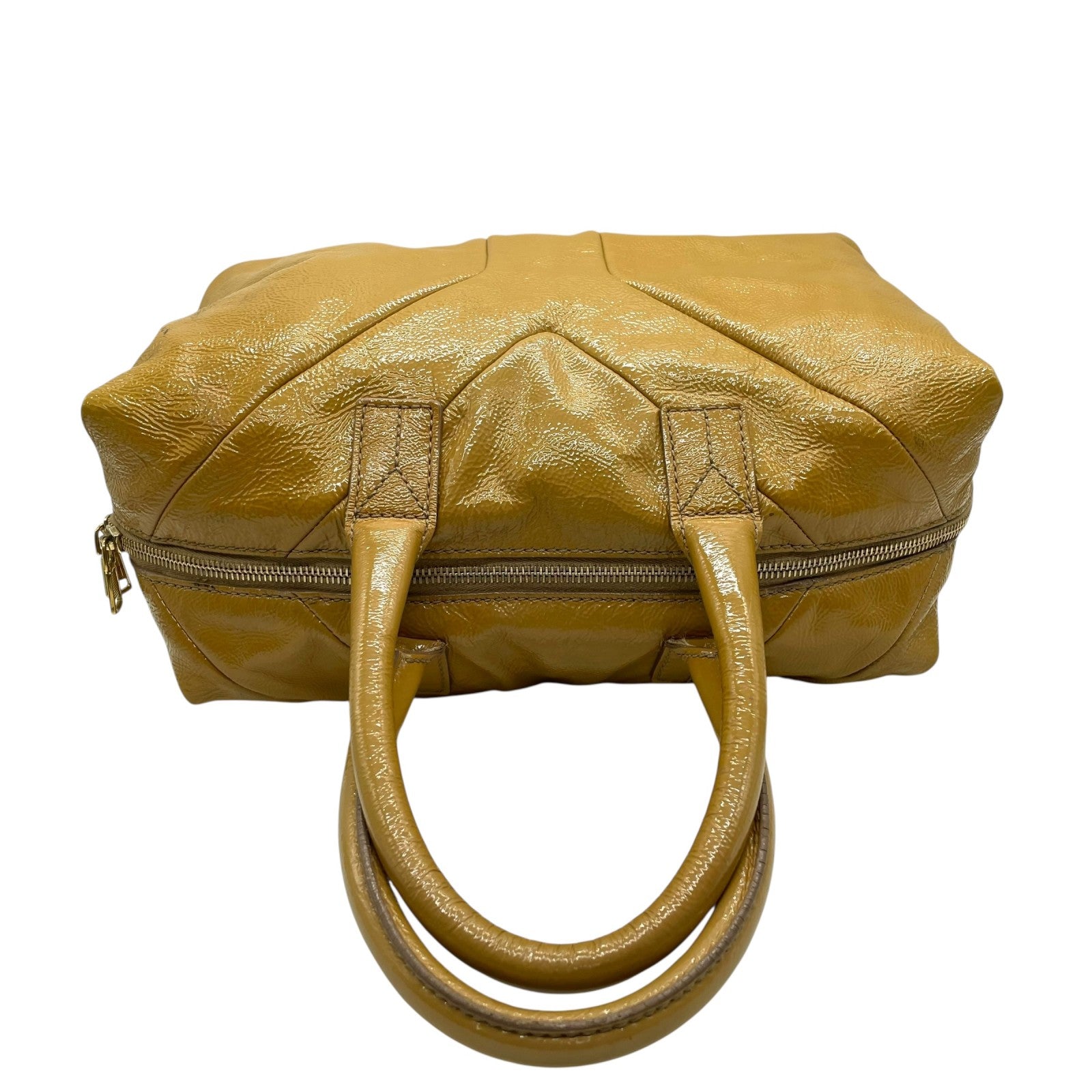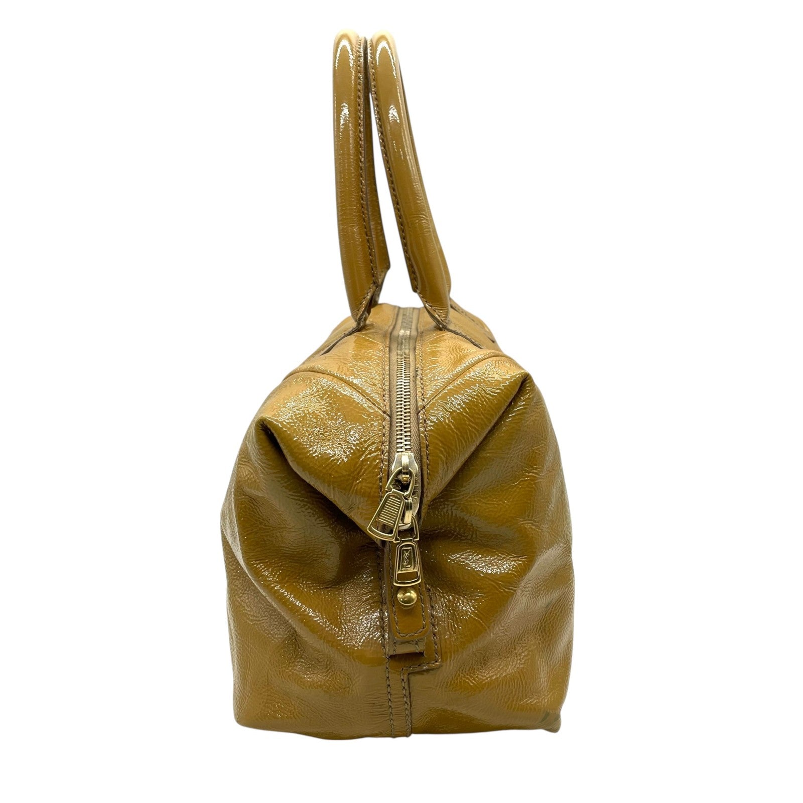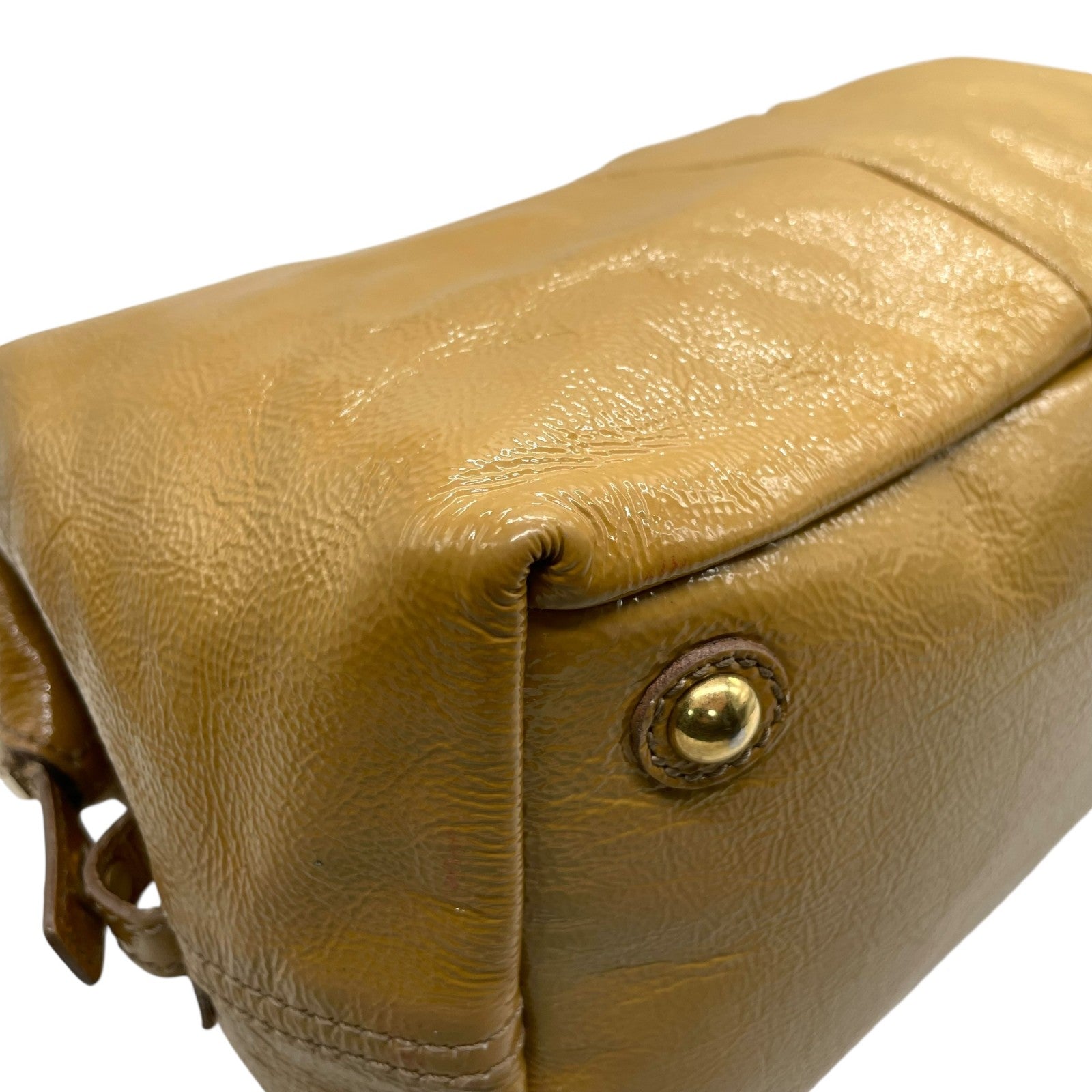イヴサンローラン YSL ボストンバッグ Yライン パテントレザー ハンドバッグ キャメル ゴールド金具 ロゴ刻印 A2