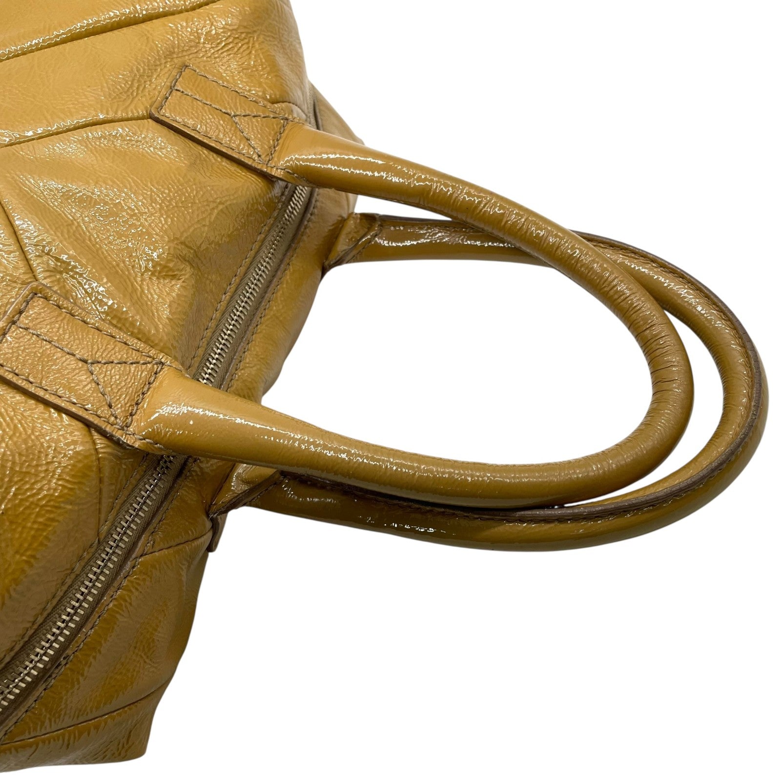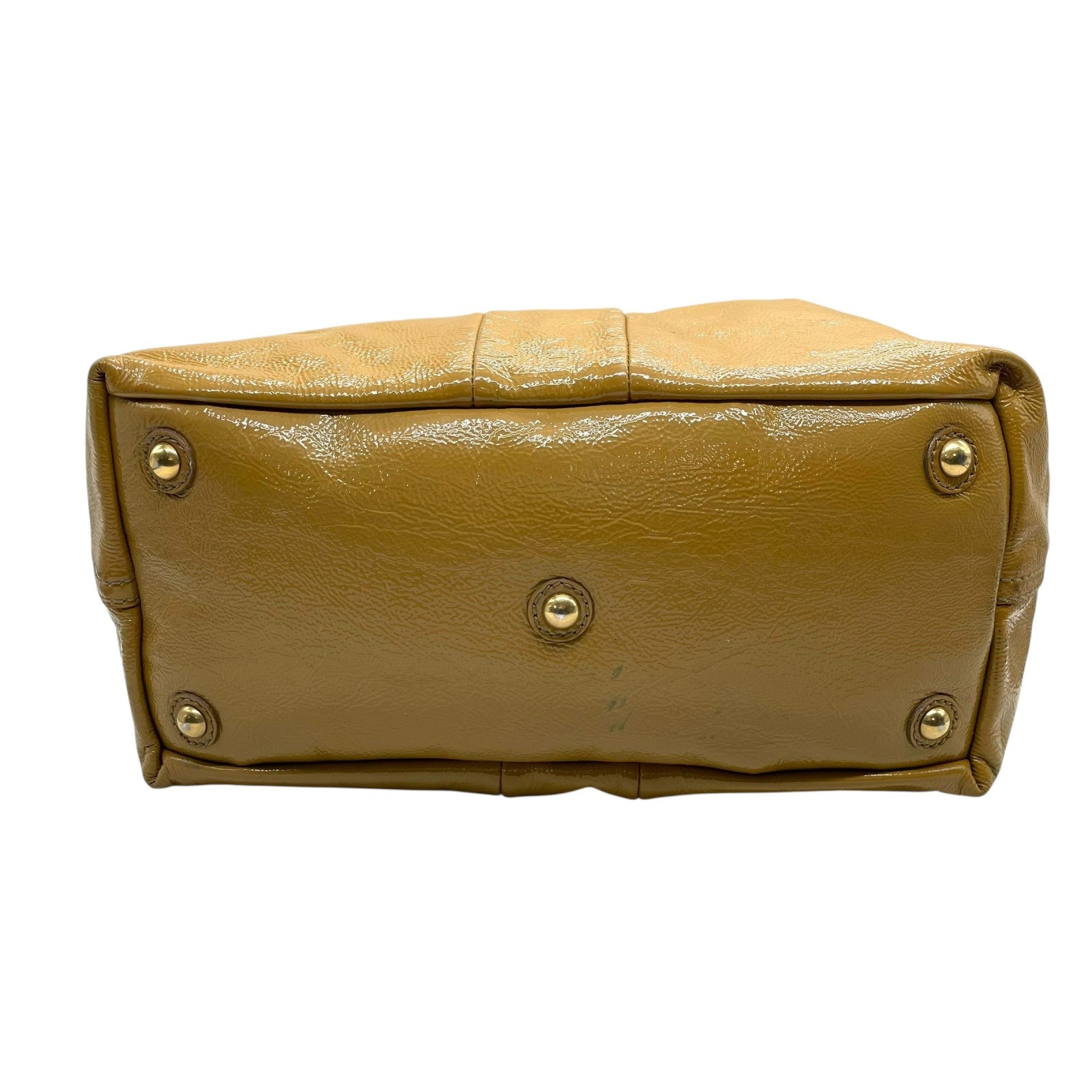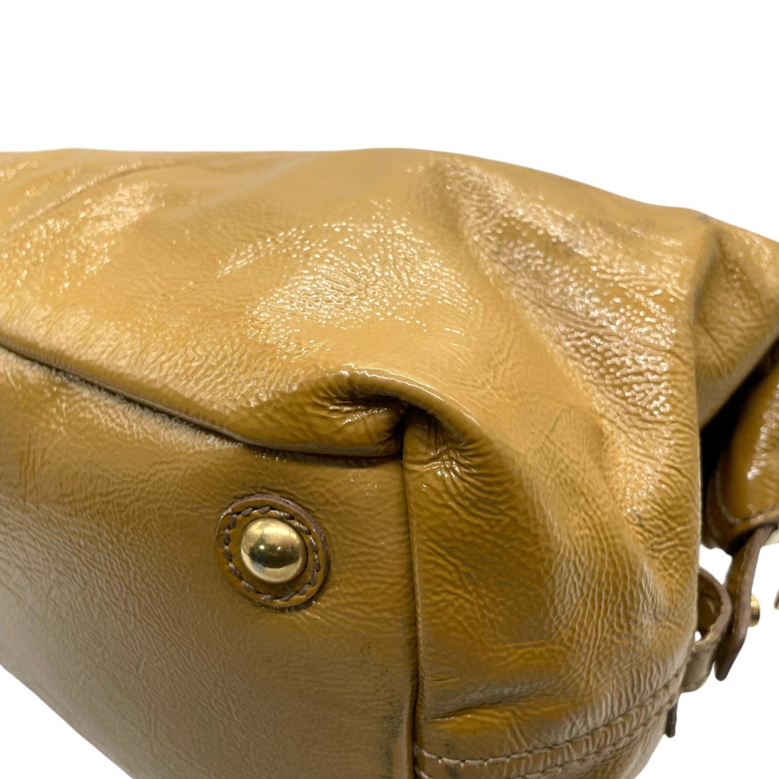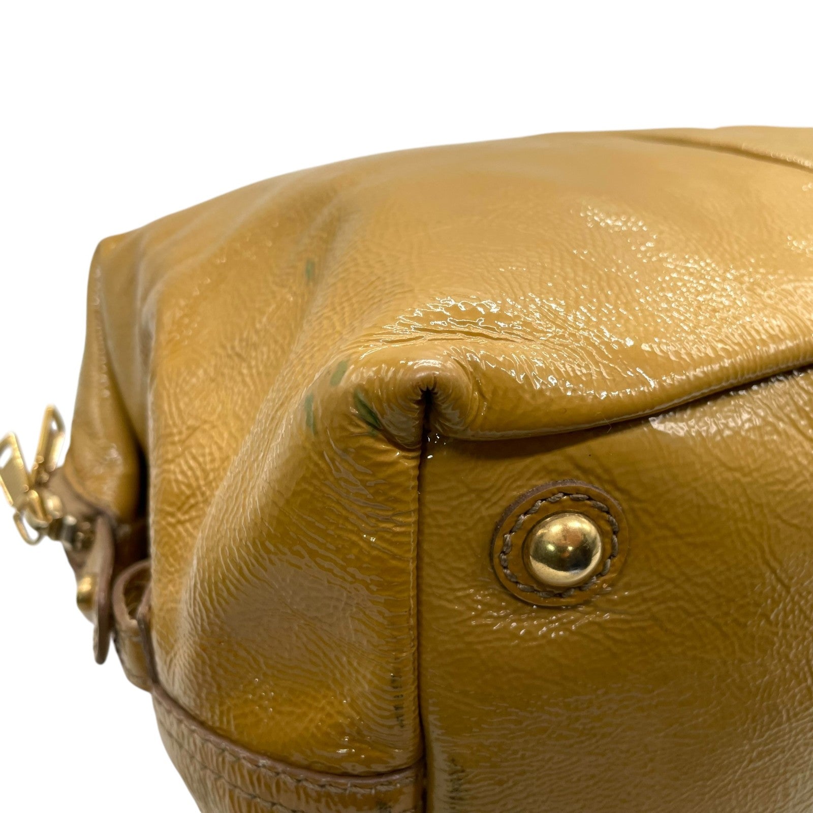 イヴサンローラン YSL ボストンバッグ Yライン パテントレザー ハンドバッグ キャメル ゴールド金具 ロゴ刻印 A2