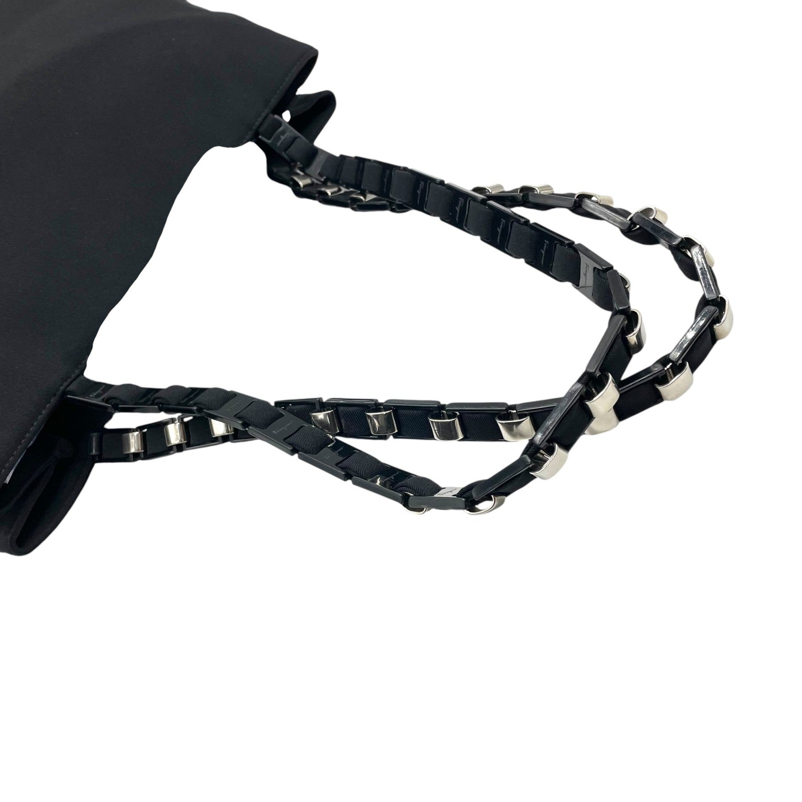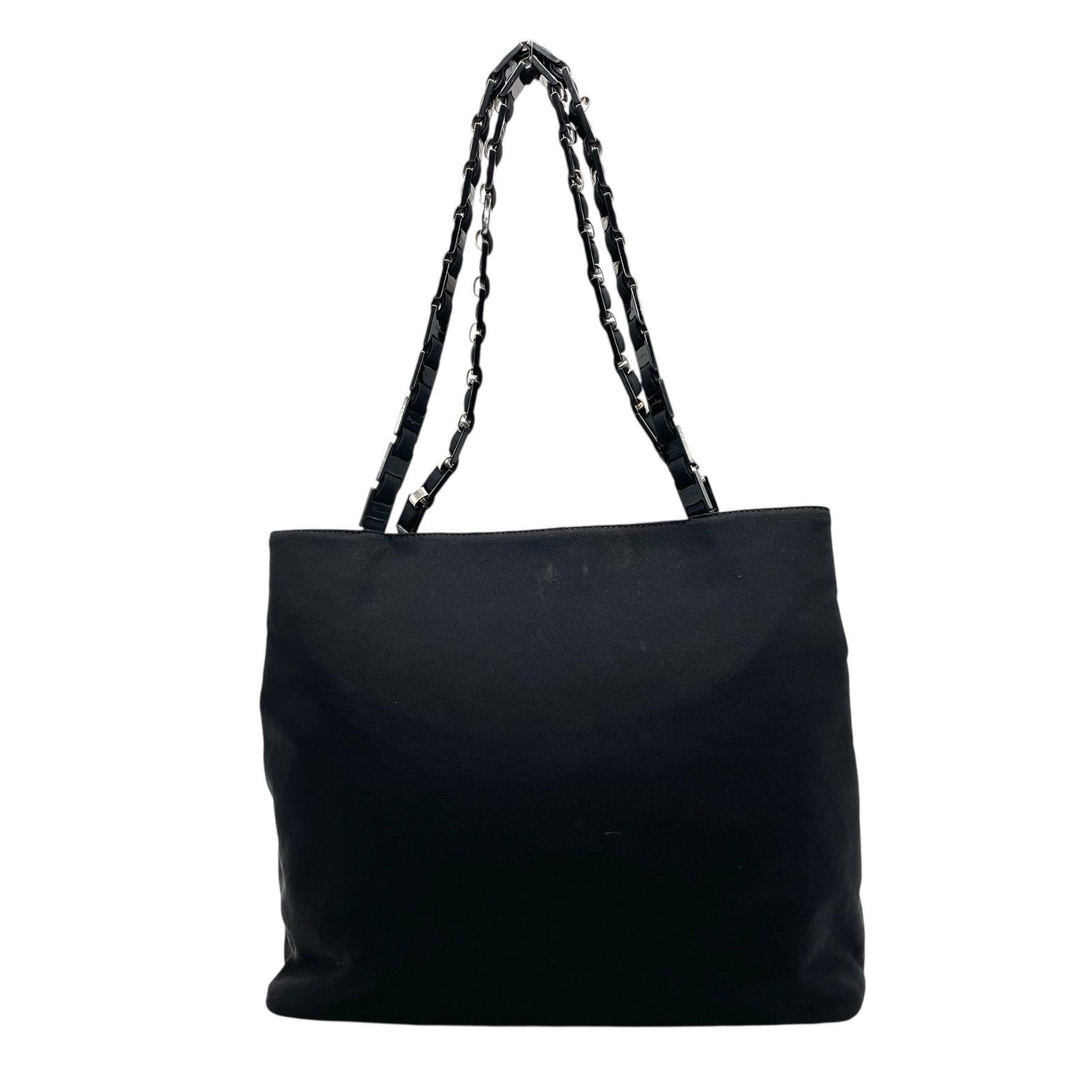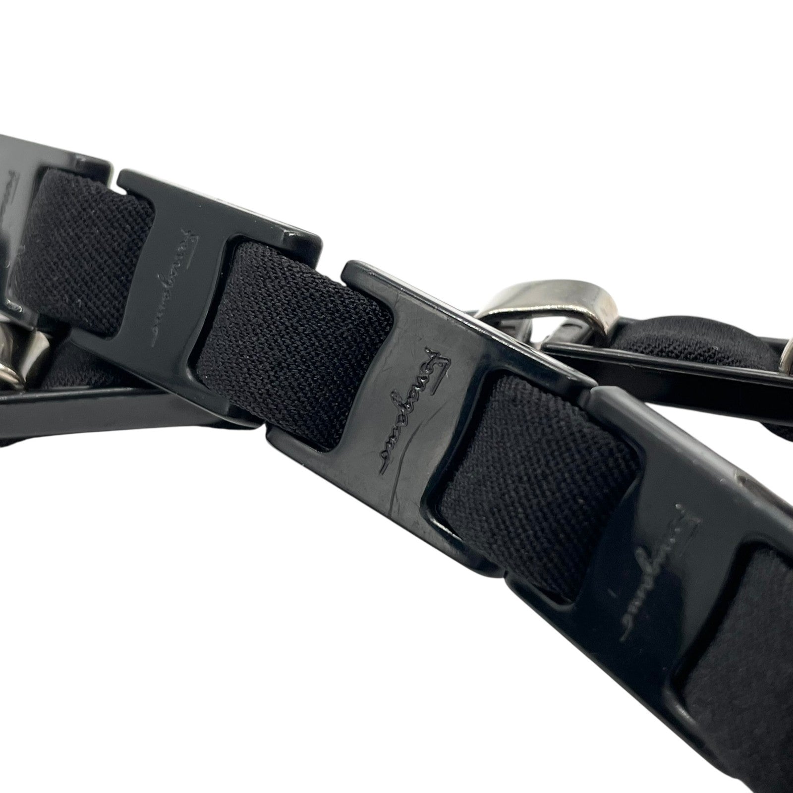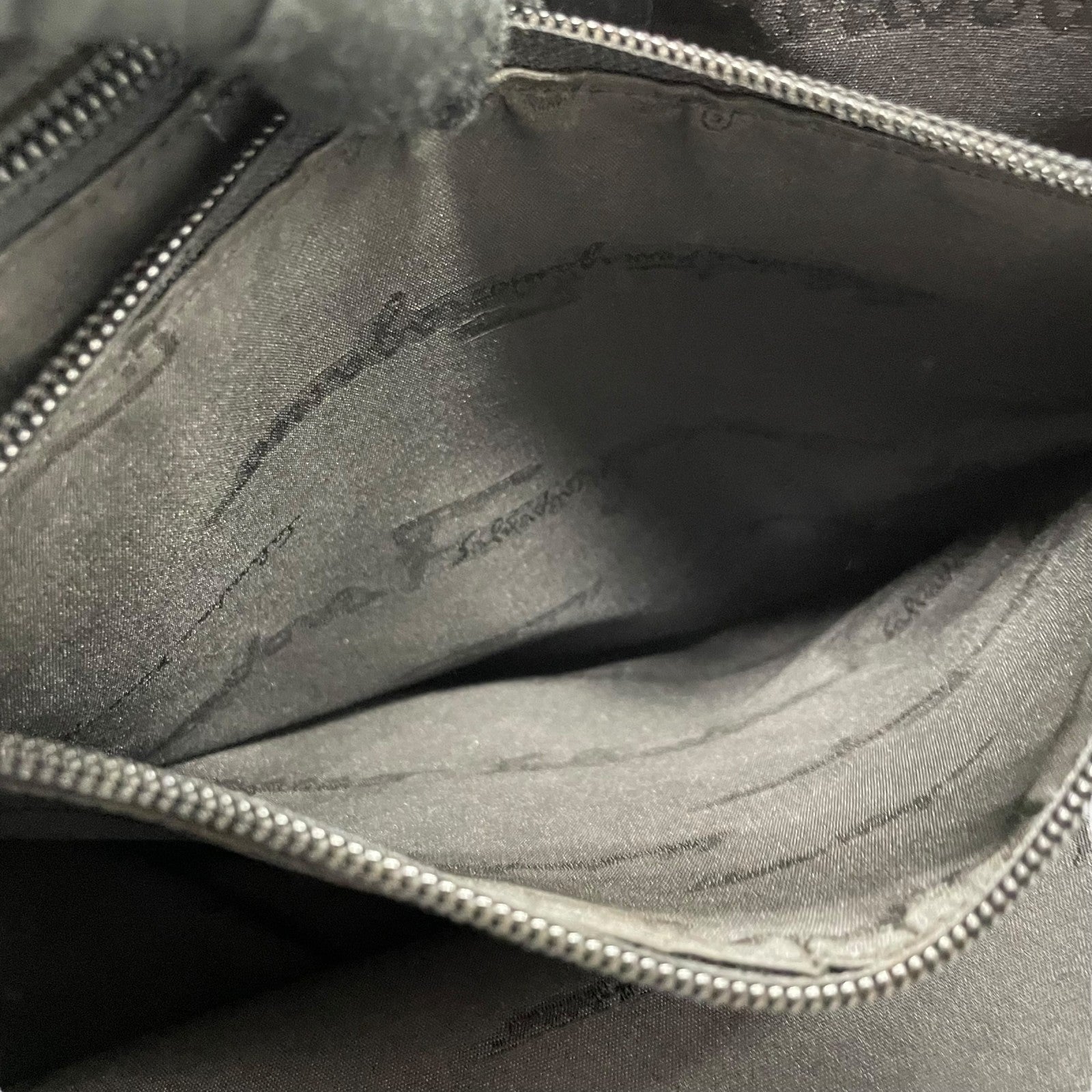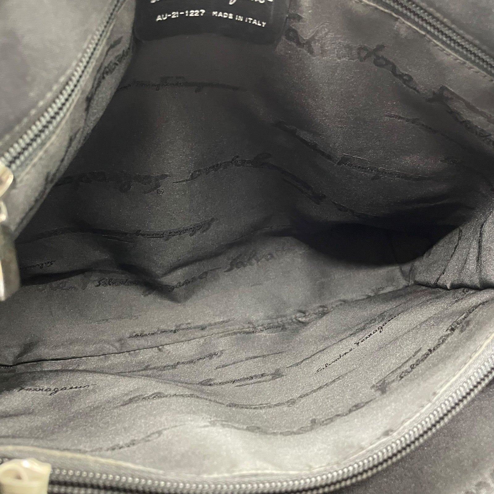美品 サルヴァトーレ フェラガモ Salvatore Ferragamo ナイロン×レザー チェーントートバッグ 黒 ブラック シルバー金具 ロゴチャーム D4