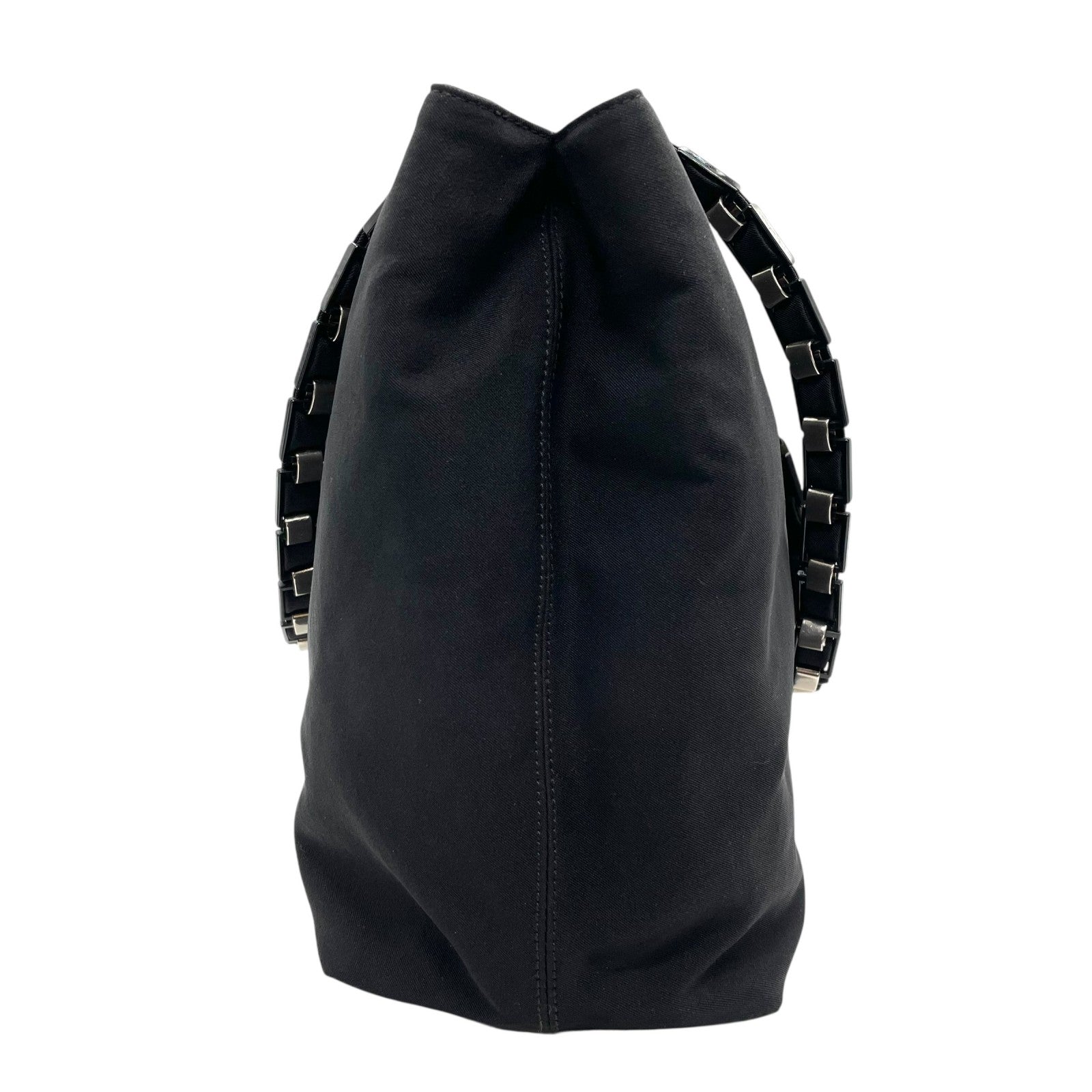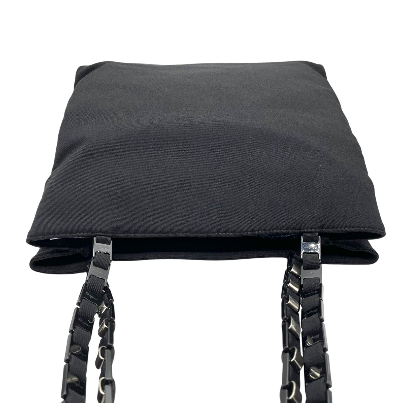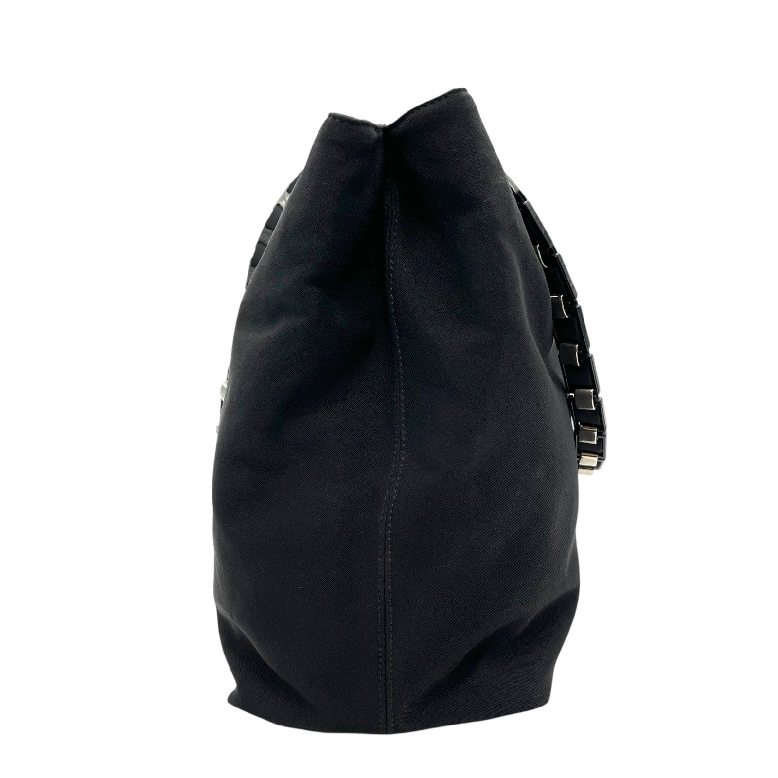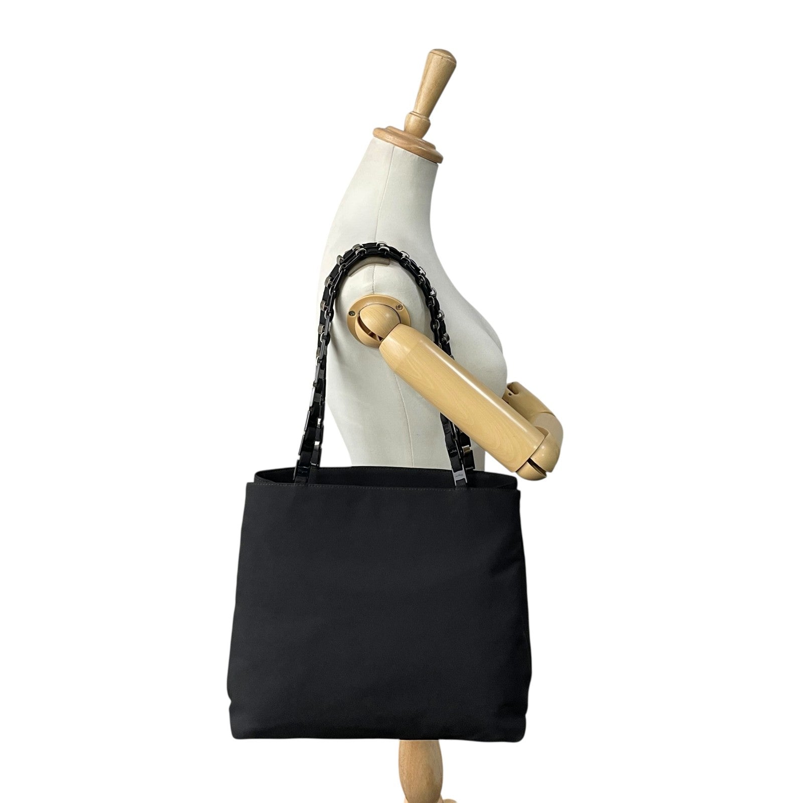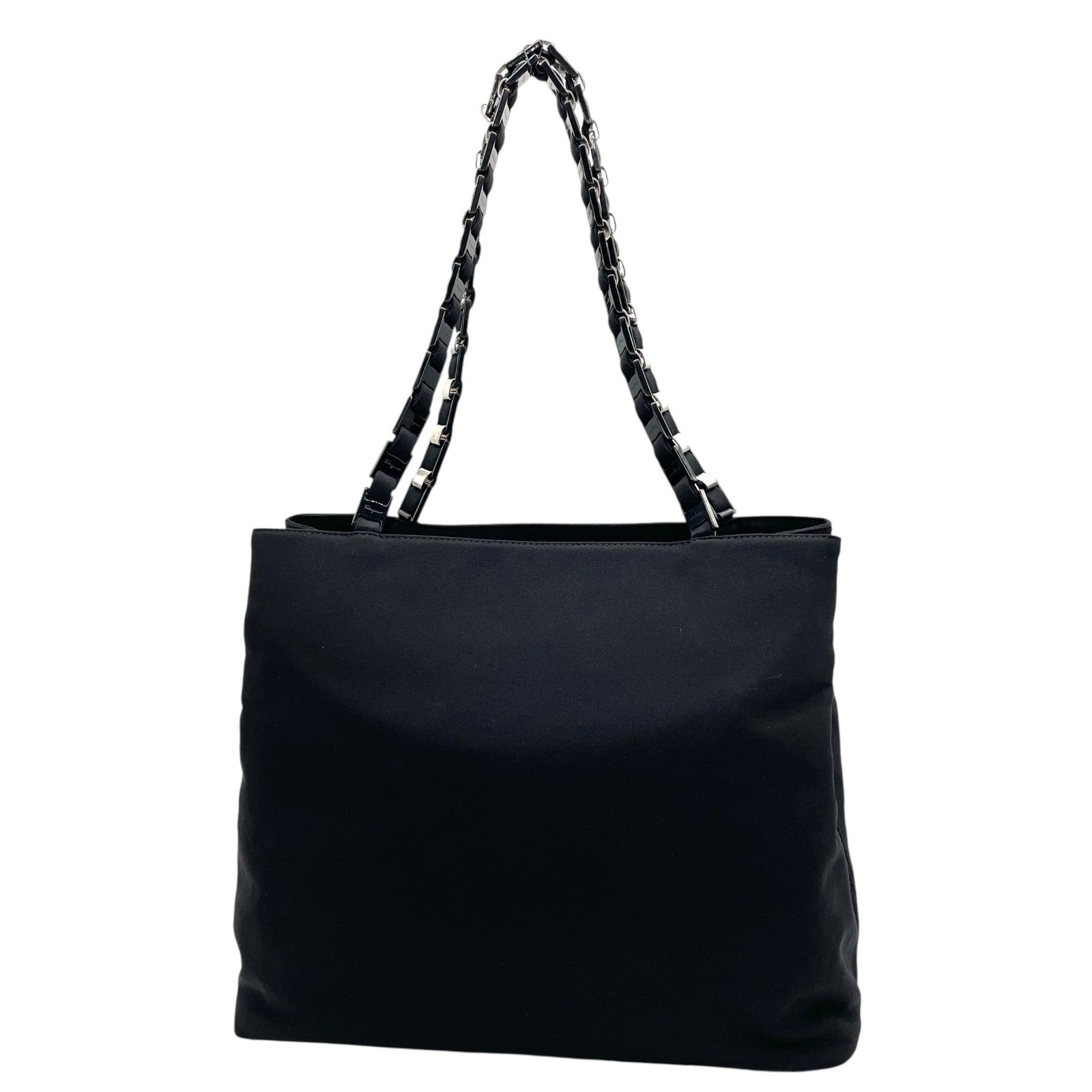 美品 サルヴァトーレ フェラガモ Salvatore Ferragamo ナイロン×レザー チェーントートバッグ 黒 ブラック シルバー金具 ロゴチャーム D4