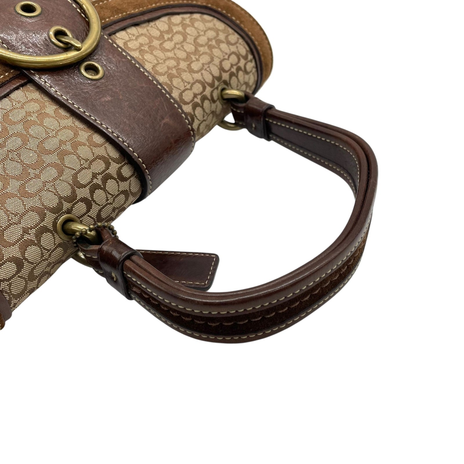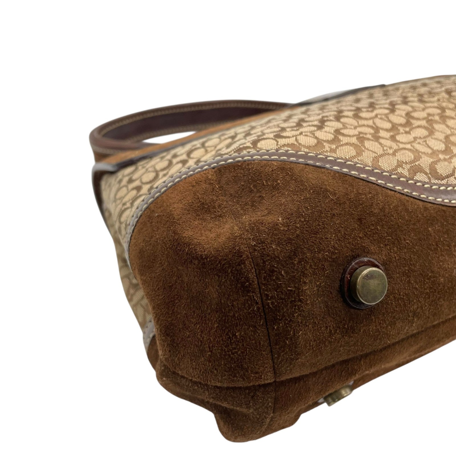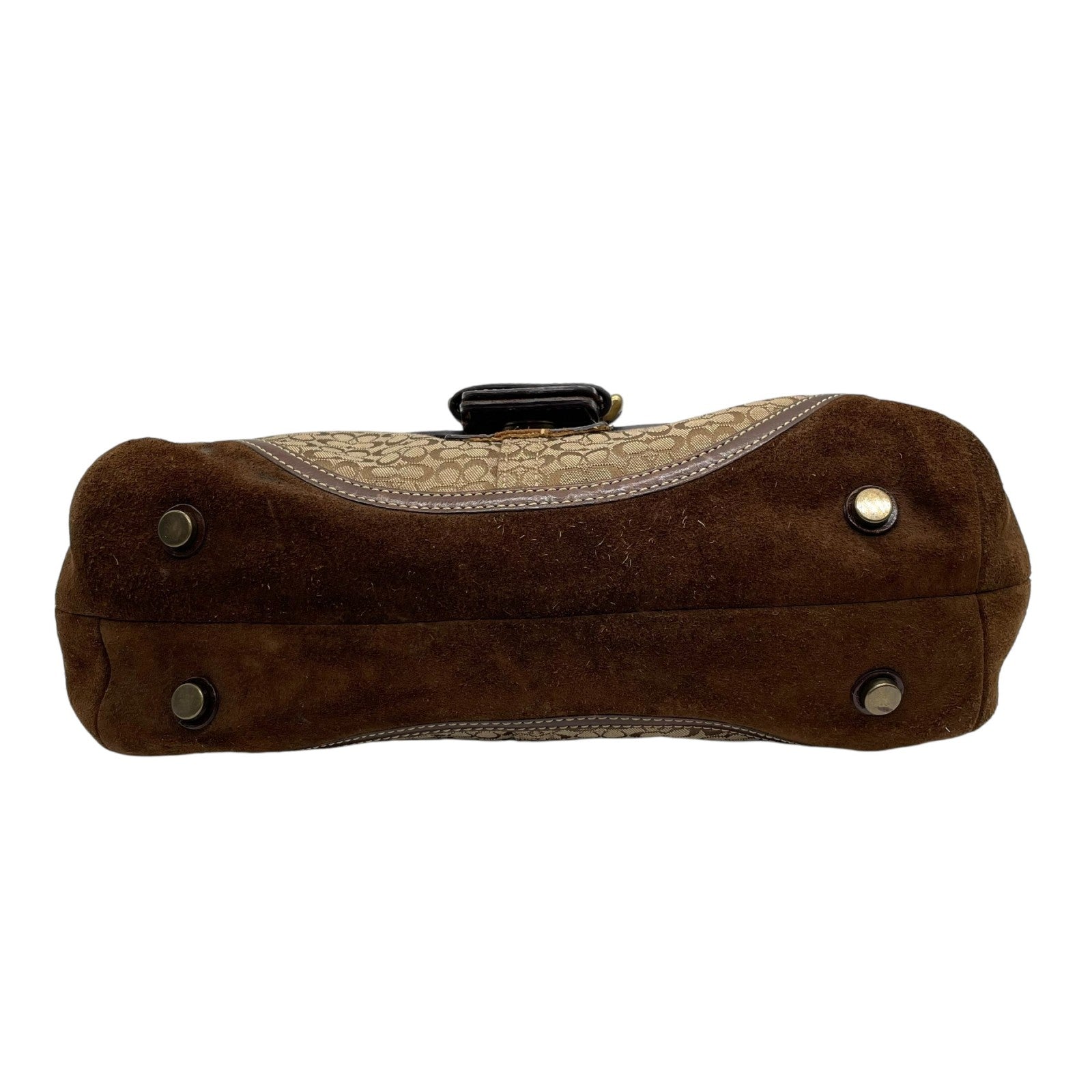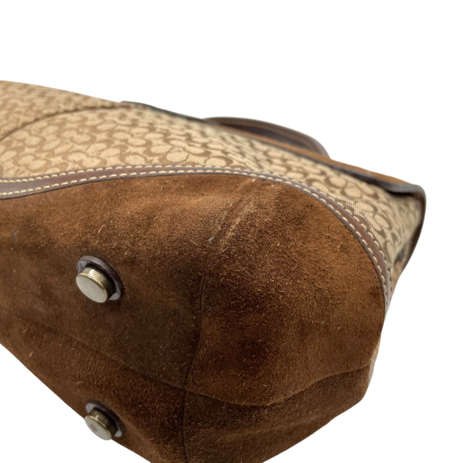 コーチ COACH シグネチャー スエード レザー ハンドバッグ 7078 茶色 ブラウン ゴールド金具 金金具 チャーム付き E10