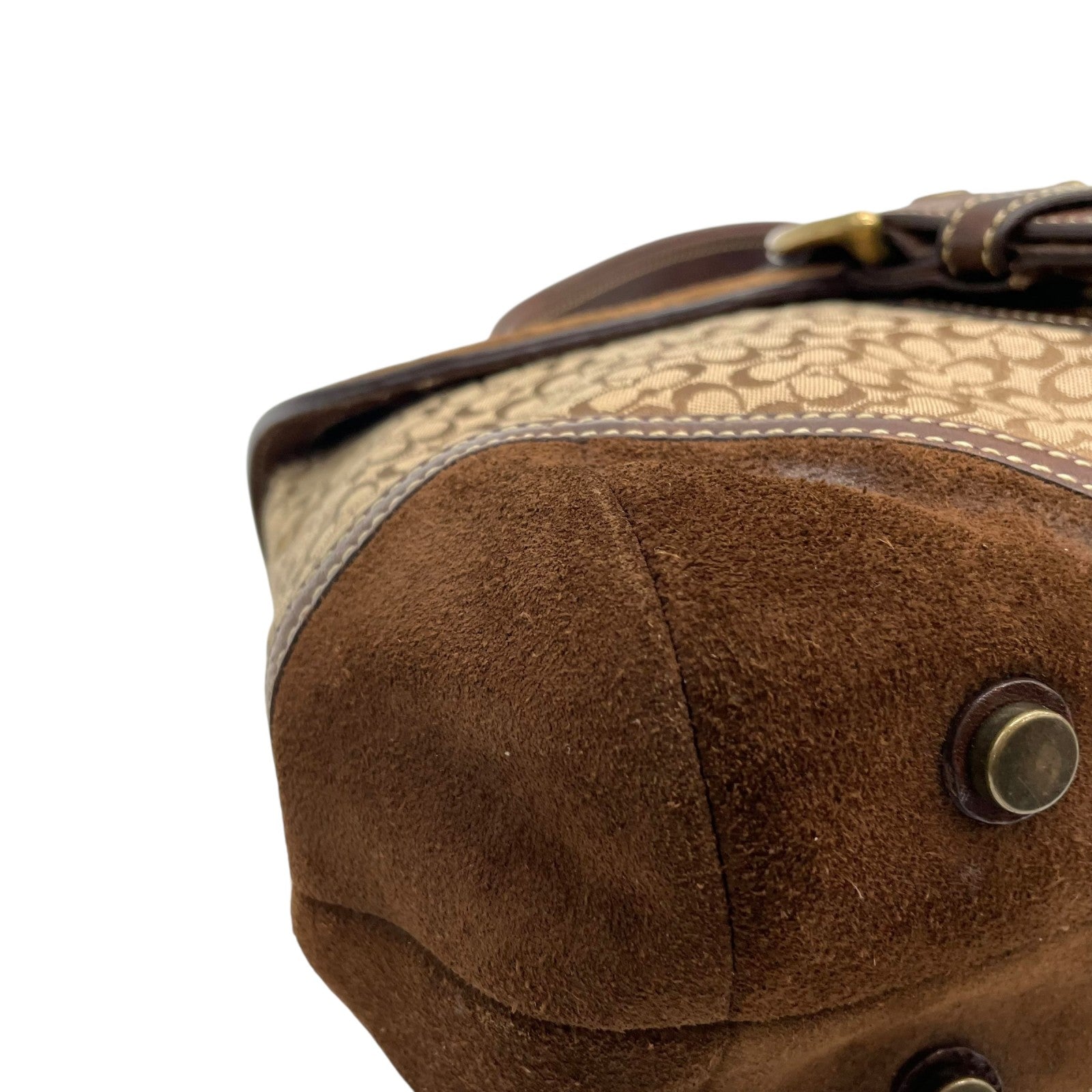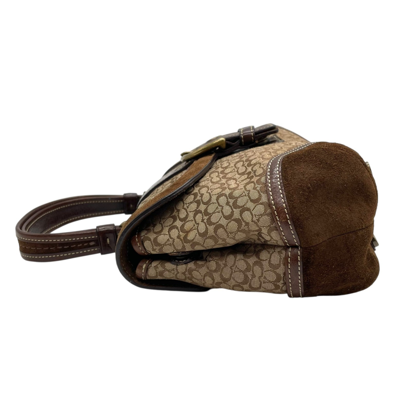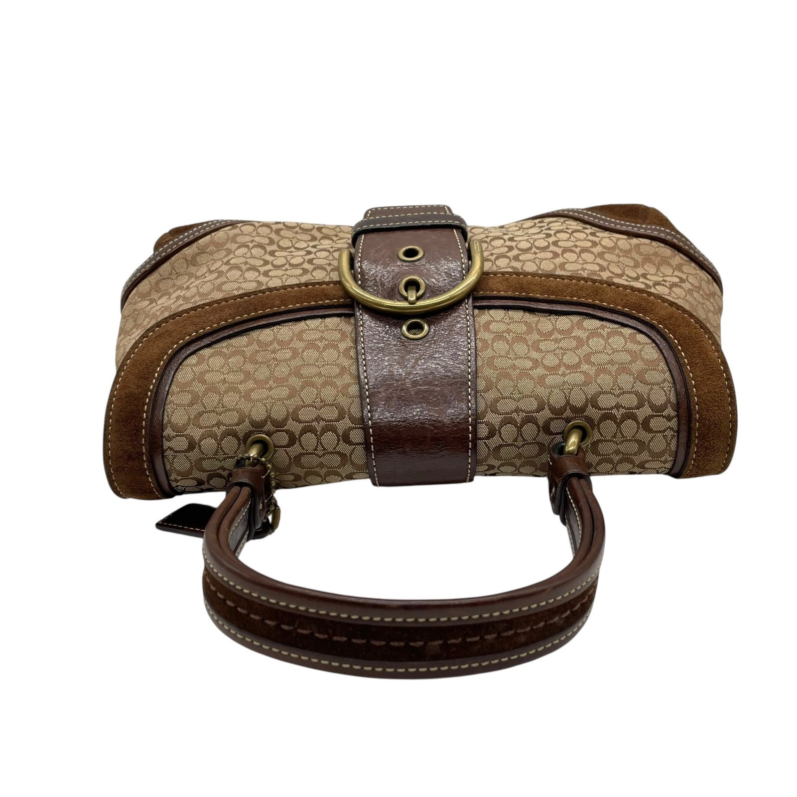 コーチ COACH シグネチャー スエード レザー ハンドバッグ 7078 茶色 ブラウン ゴールド金具 金金具 チャーム付き E10