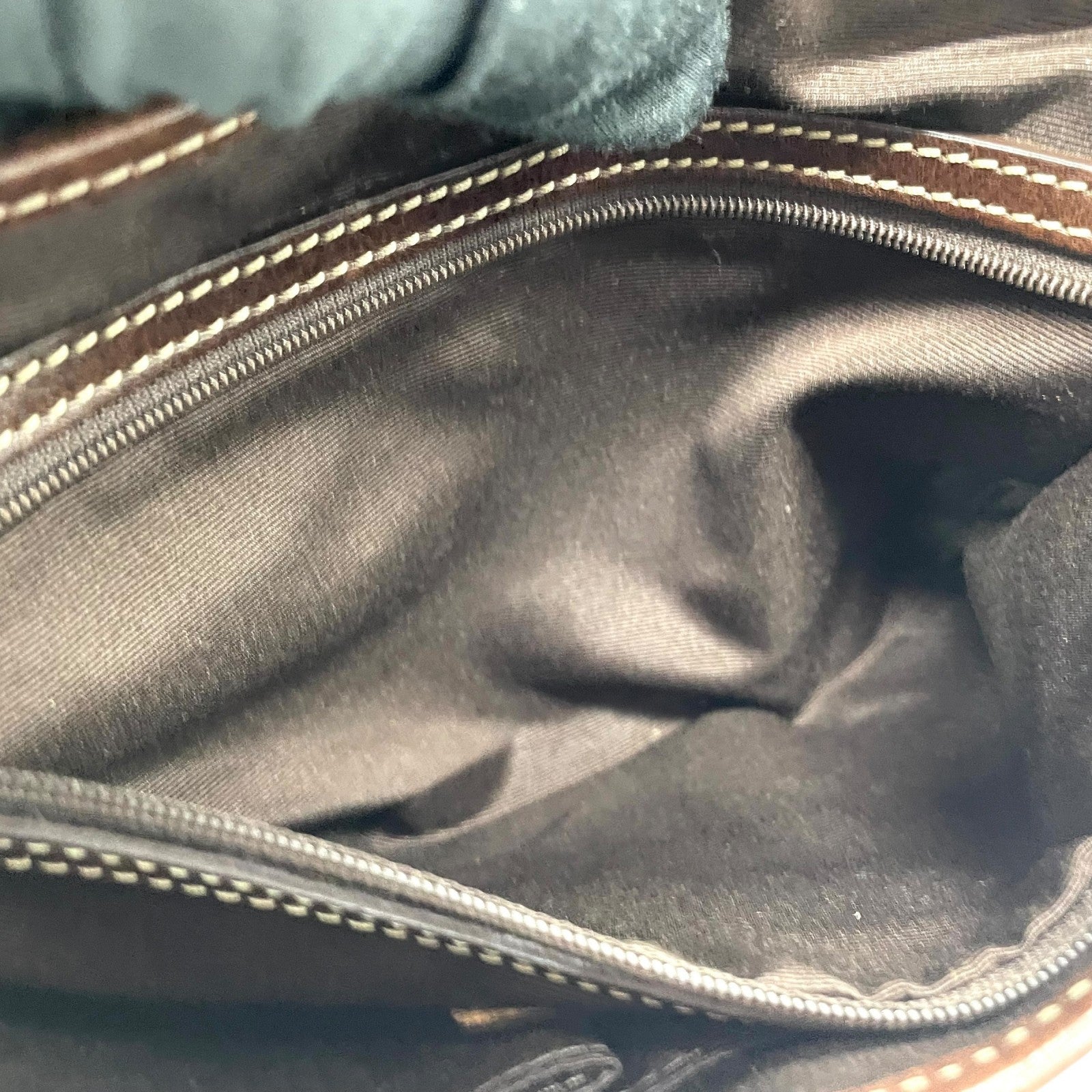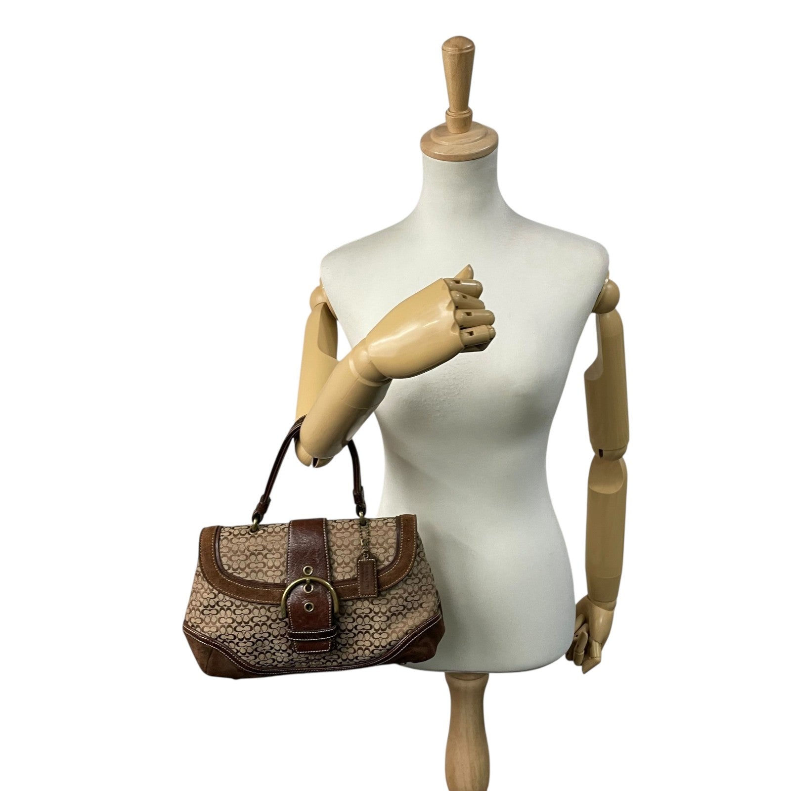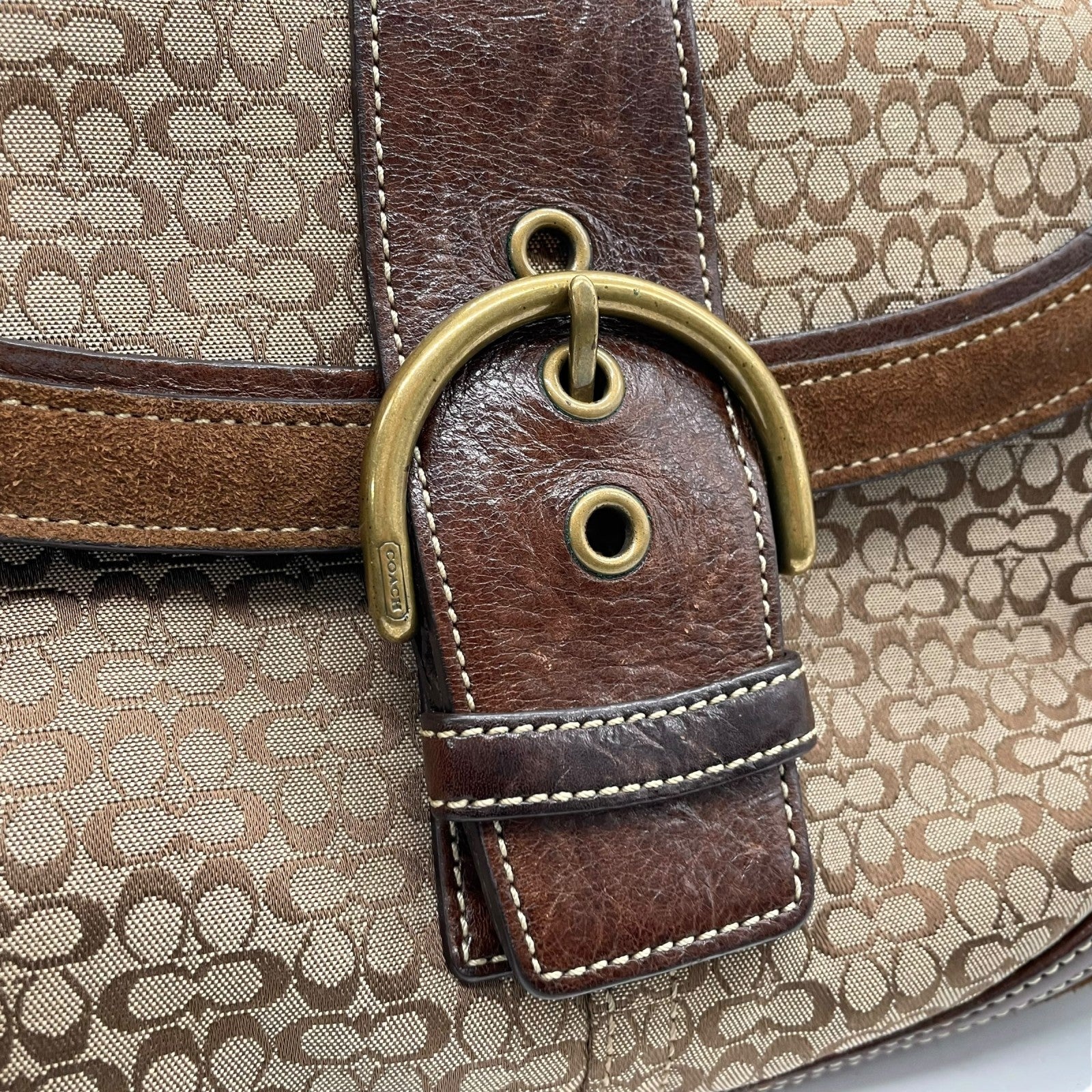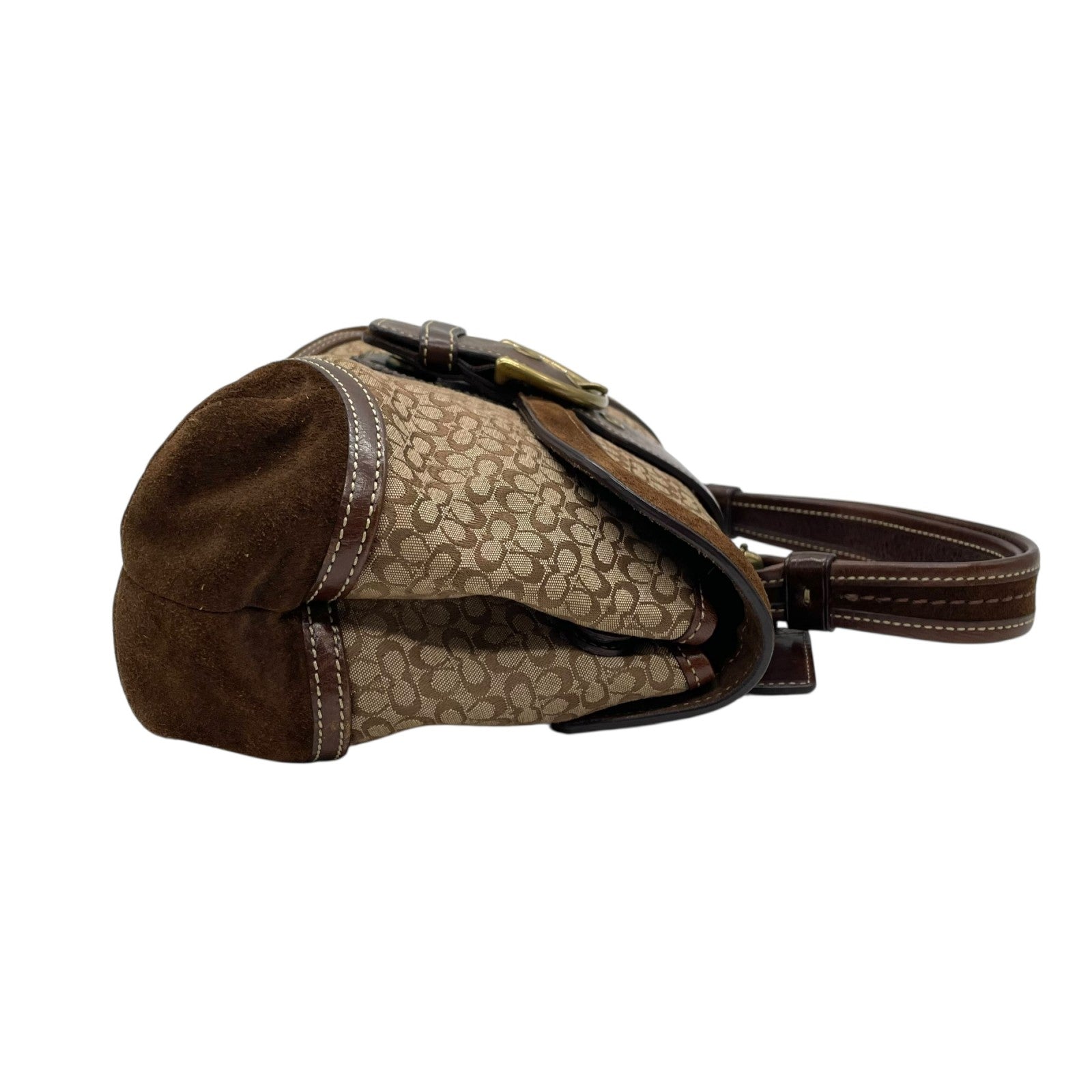 コーチ COACH シグネチャー スエード レザー ハンドバッグ 7078 茶色 ブラウン ゴールド金具 金金具 チャーム付き E10