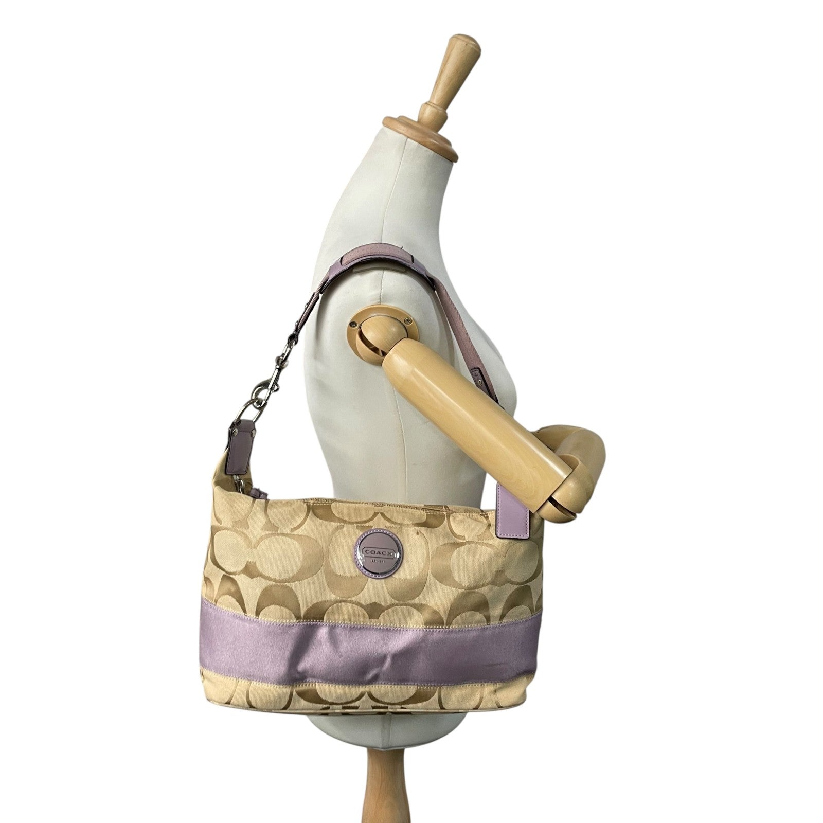 コーチ COACH シグネチャー ワンショルダー ショルダーバッグ F17434 ベージュ ライトパープル キャンバス レザー S18