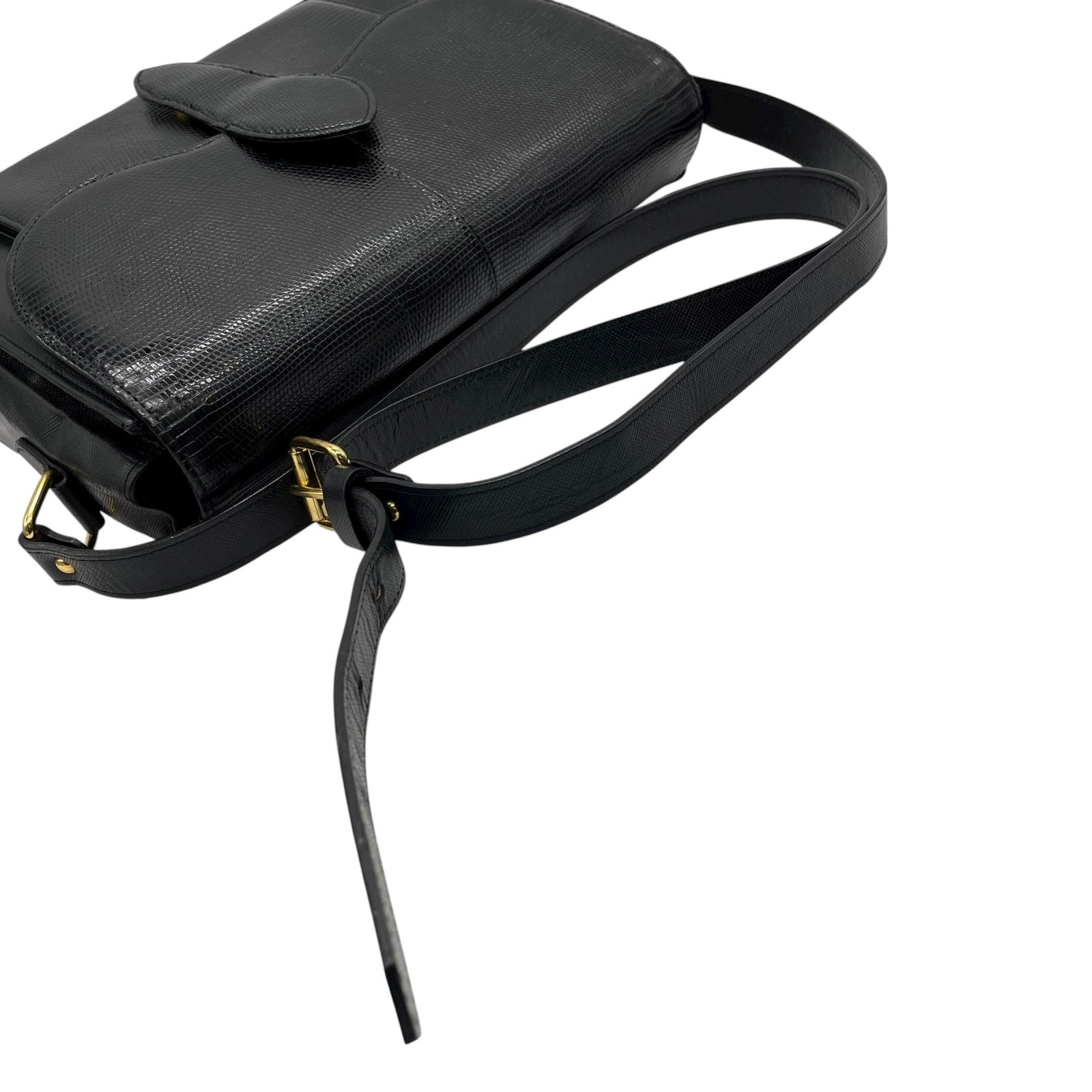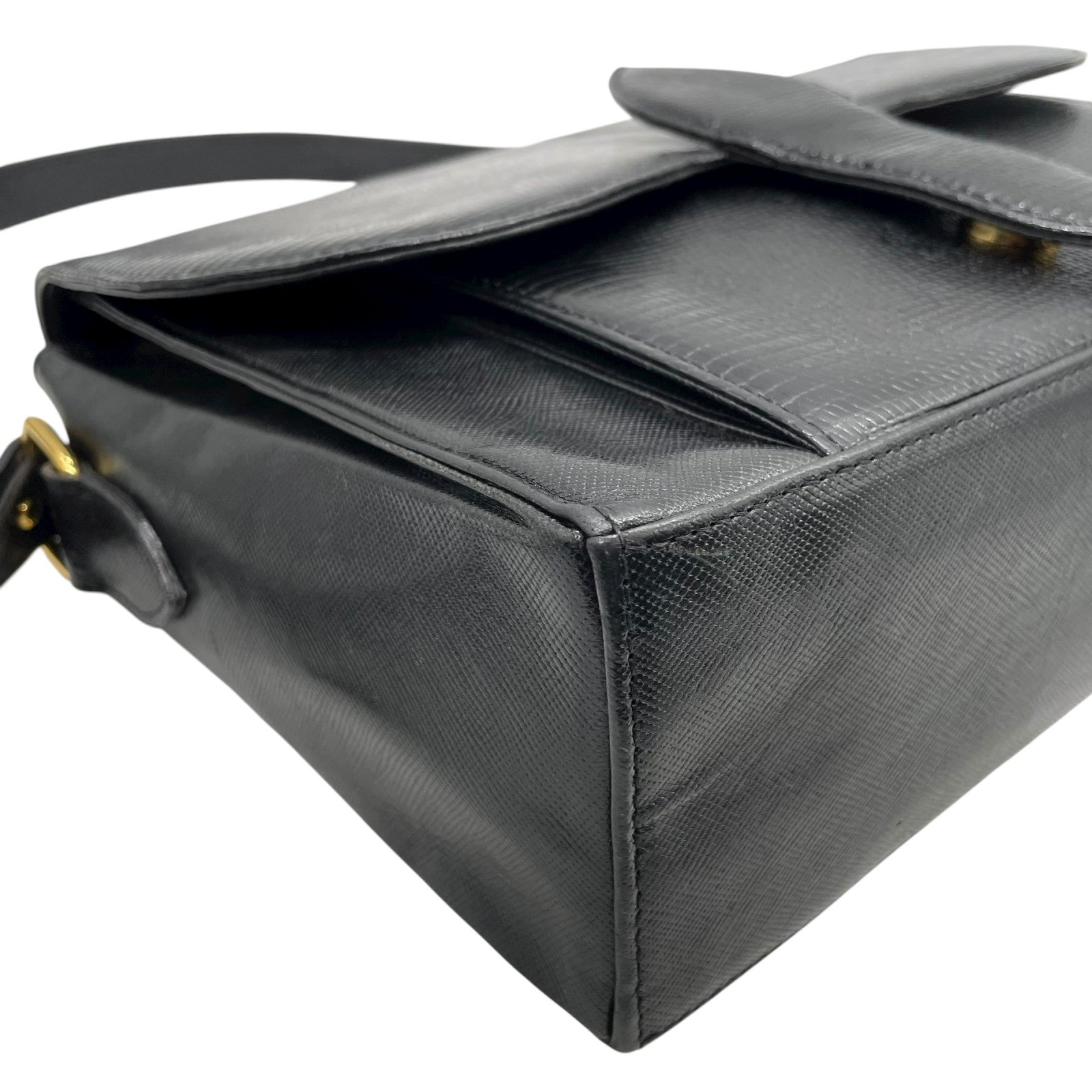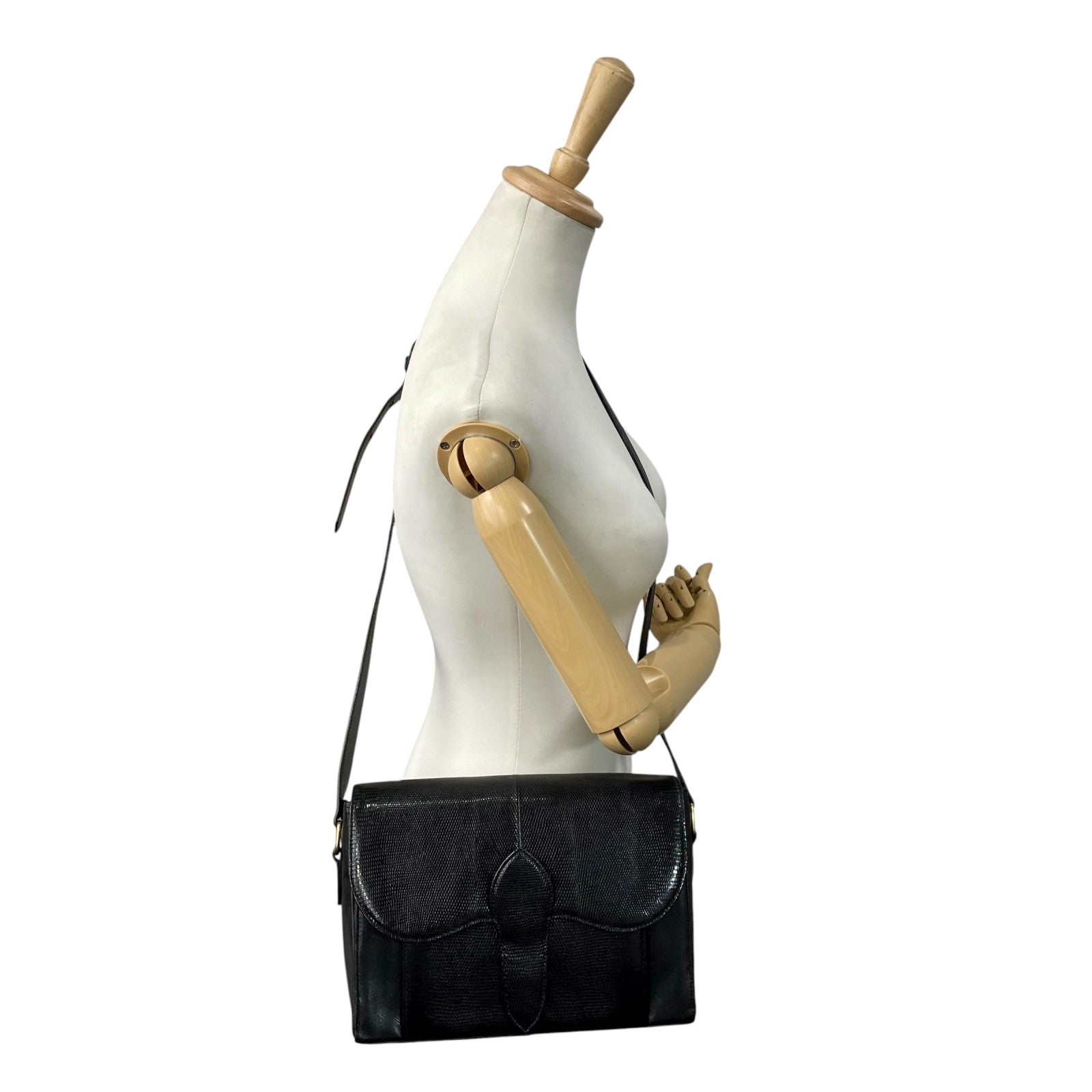 美品 イヴ サンローラン YVES SAINT LAURENT 型押し ショルダーバッグ 黒 ブラック レザー ヴィンテージ 金金具 ゴールド金具 K7