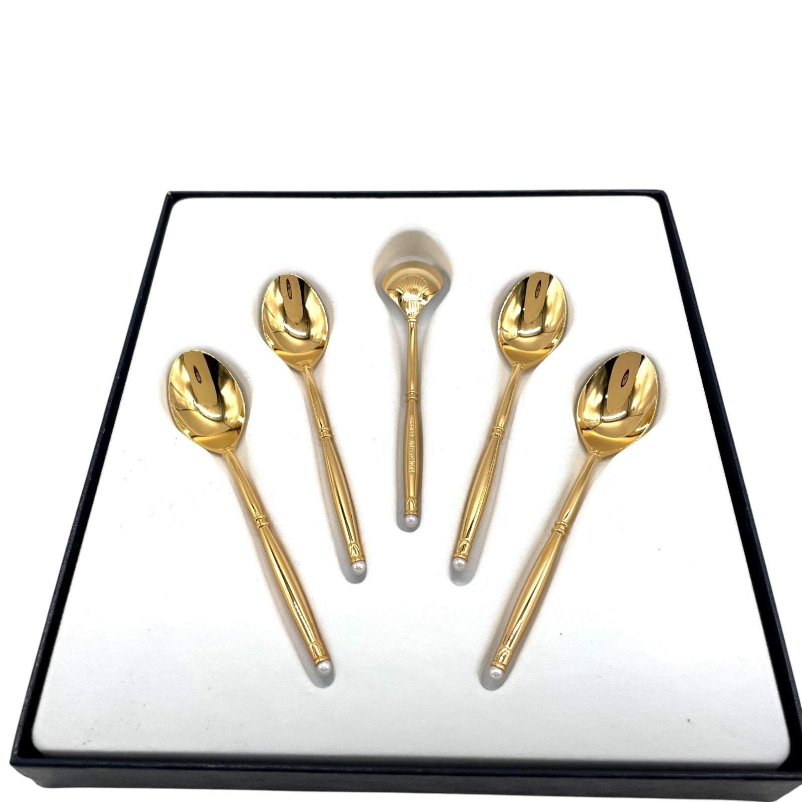 ミキモト MIKIMOTO ゴールドカラー 金 スプーン 5本セット パール モチーフ カトラリー ギフト 未使用 M4