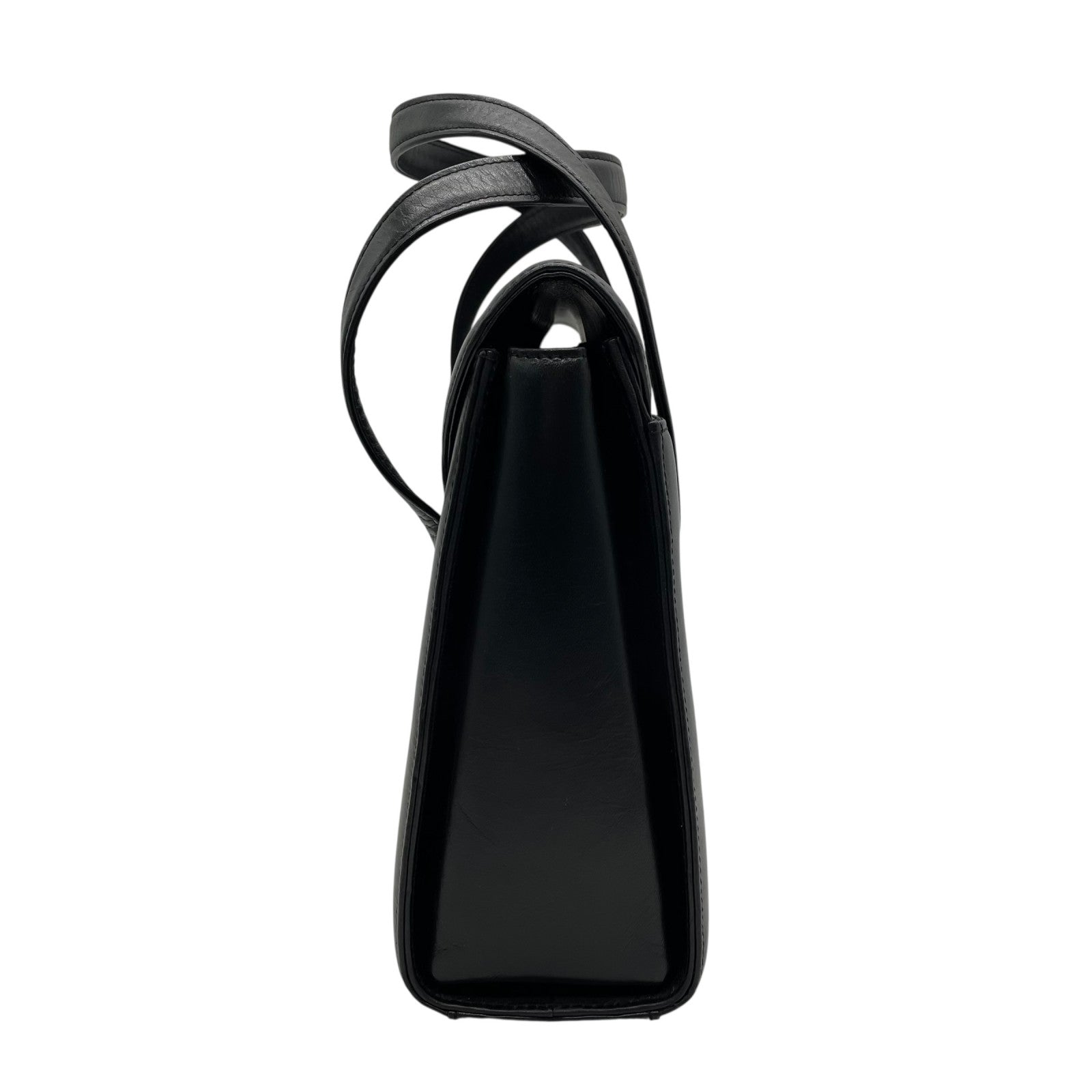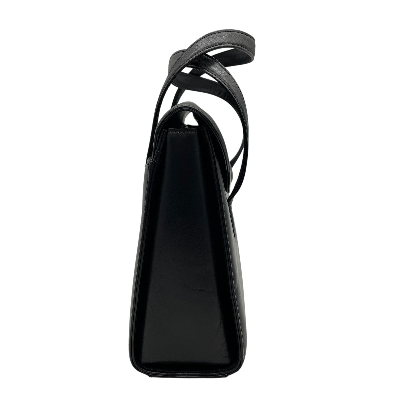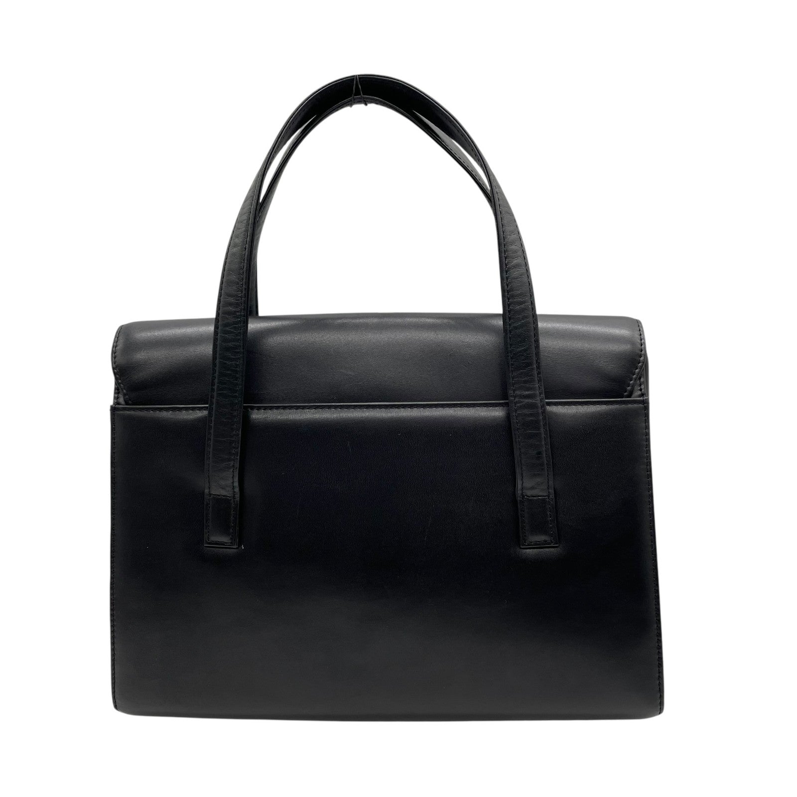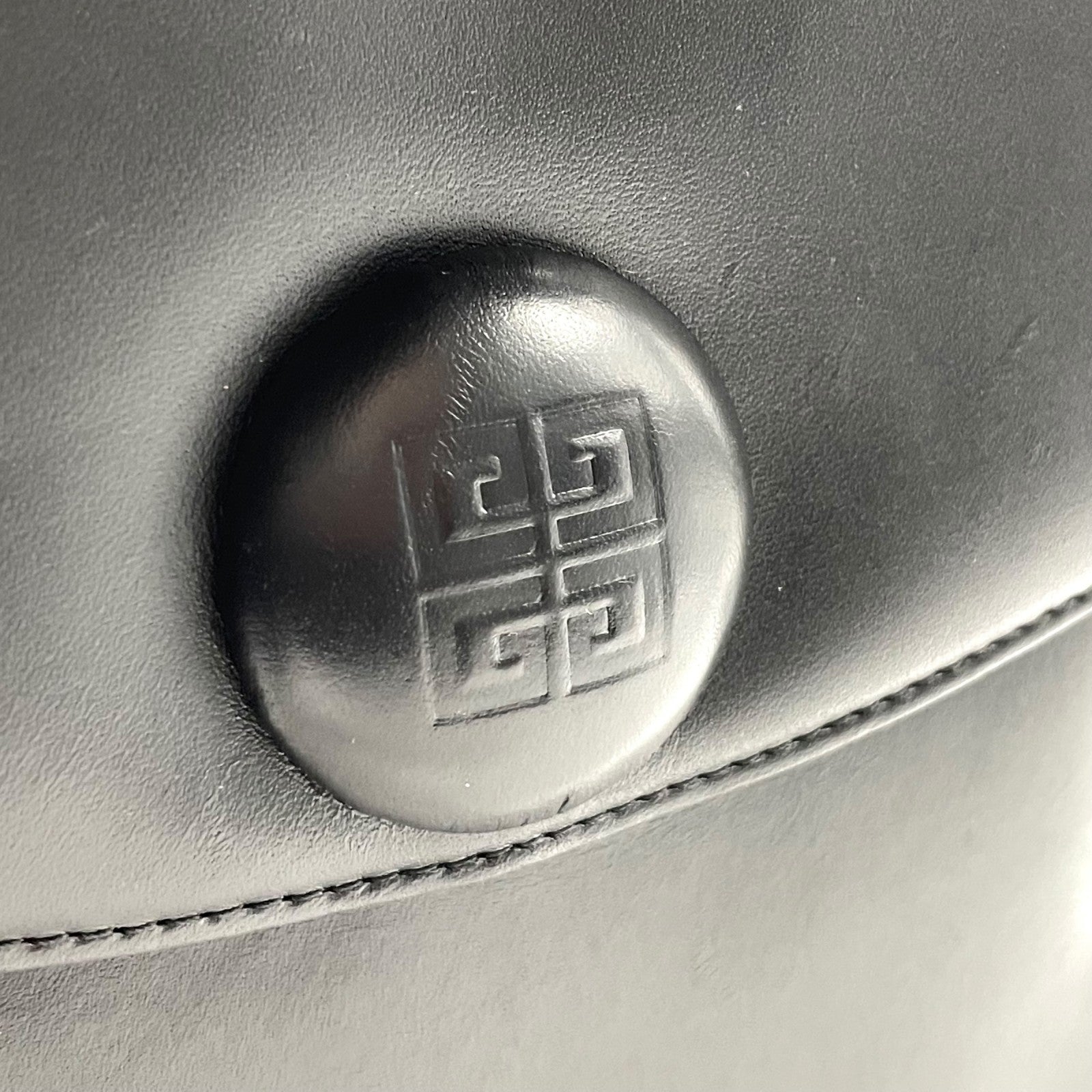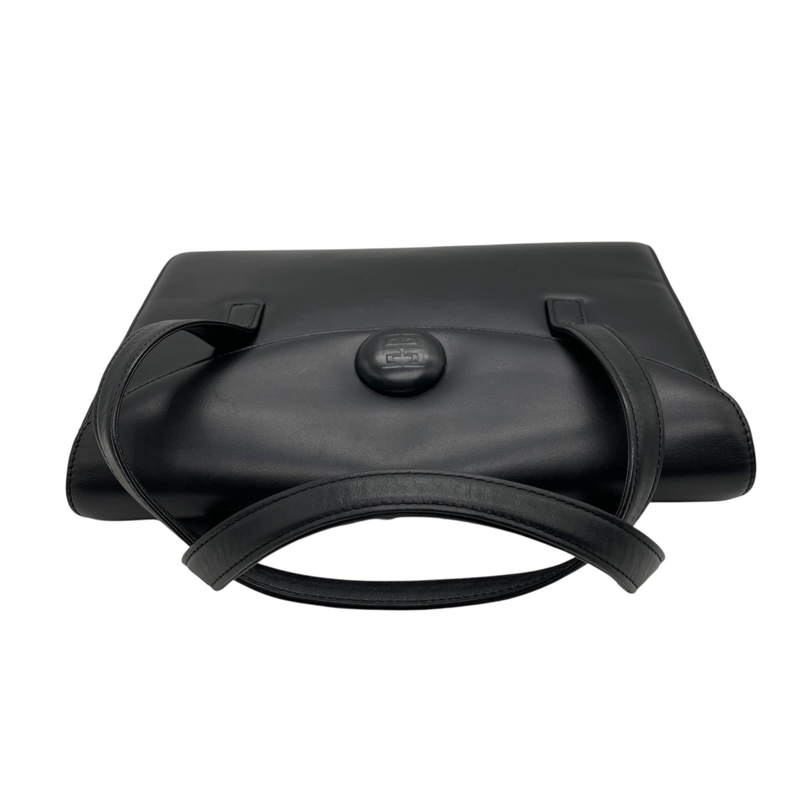 美品 ジバンシィ GIVENCHY ジバンシー レザー ハンドバッグ トートバッグ 黒 ブラック ロゴボタン フラップ フォーマルバッグ C1