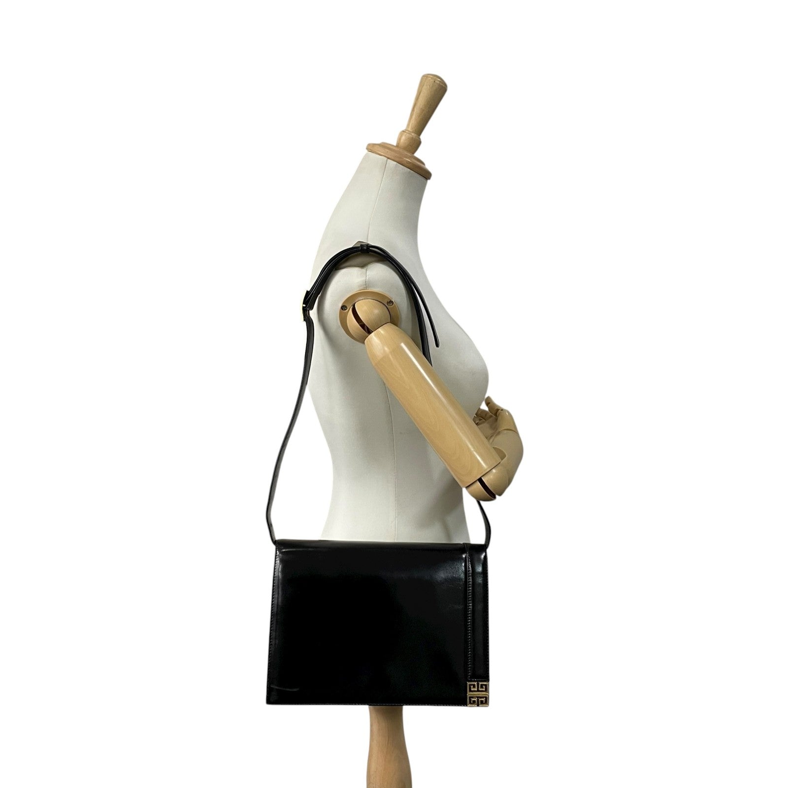 ジバンシィ GIVENCHY ジバンシー ショルダーバッグ レザー 黒 ブラック ゴールド金具 ロゴ ヴィンテージ C5