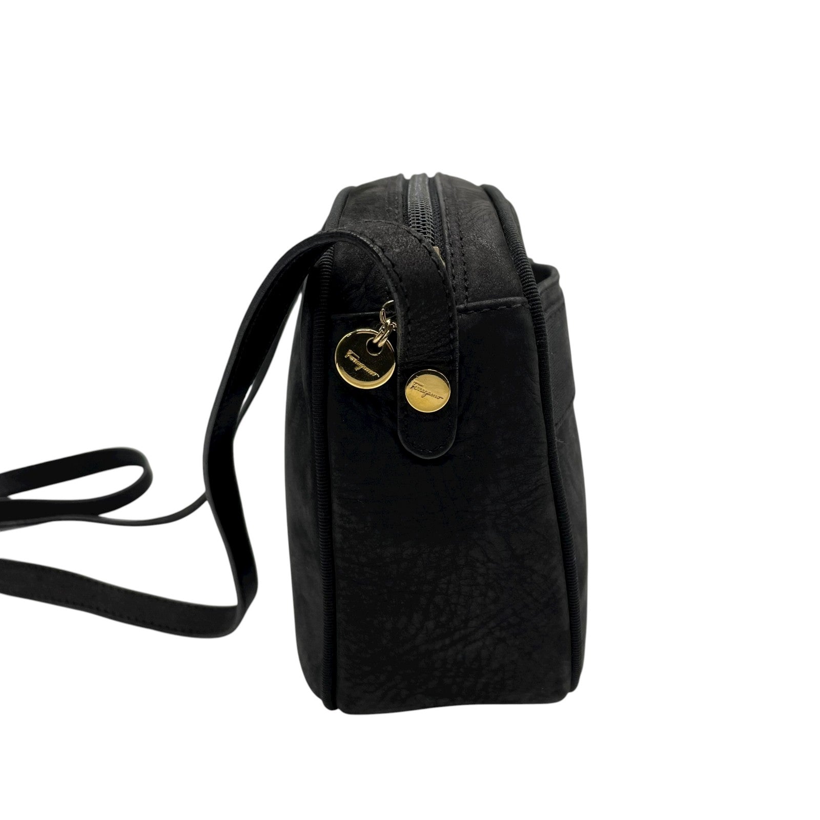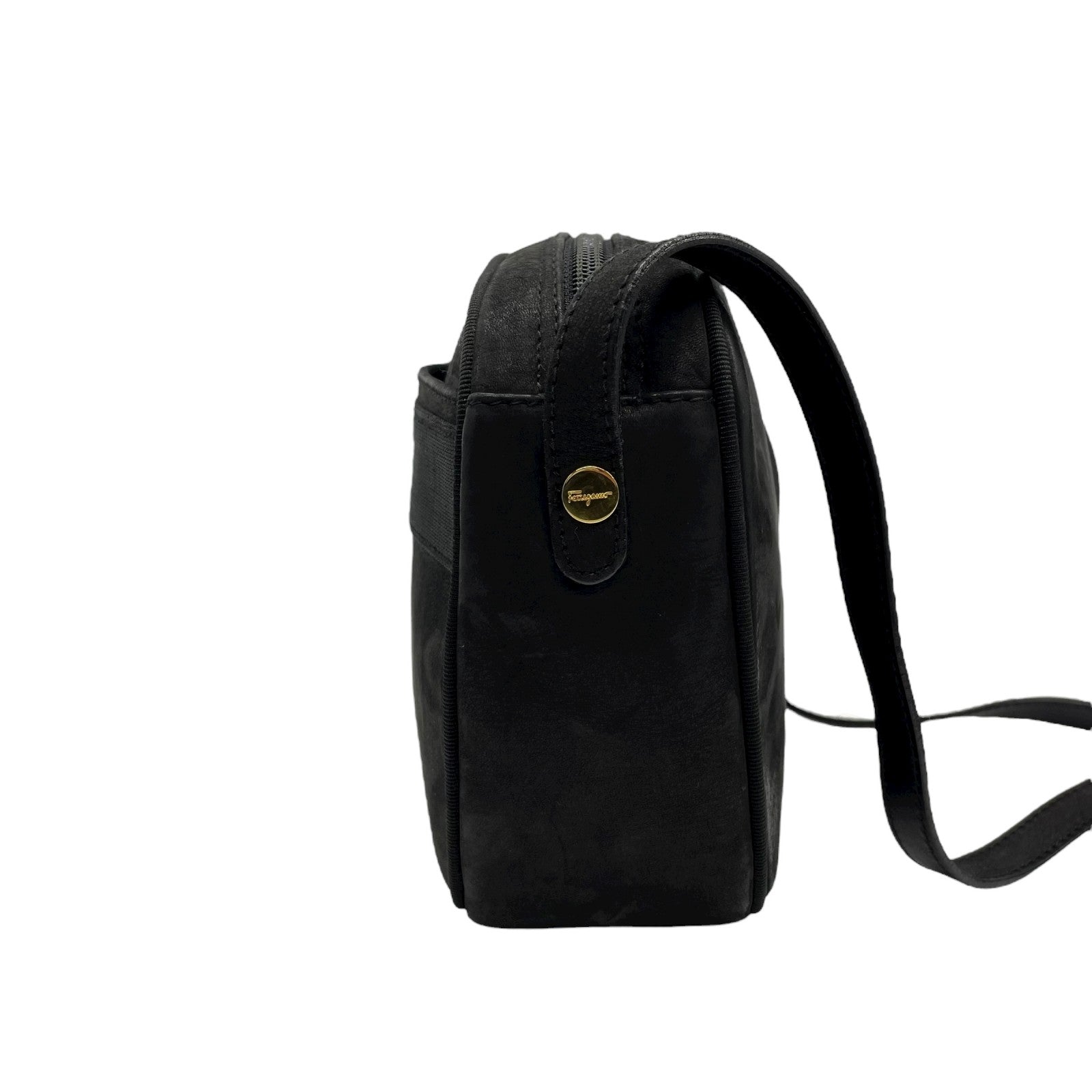 サルヴァトーレ フェラガモ Salvatore Ferragamo ヴァラリボン ショルダーバッグ スエード 黒 ブラック 金金具 ゴールド金具 ヴィンテージ C6