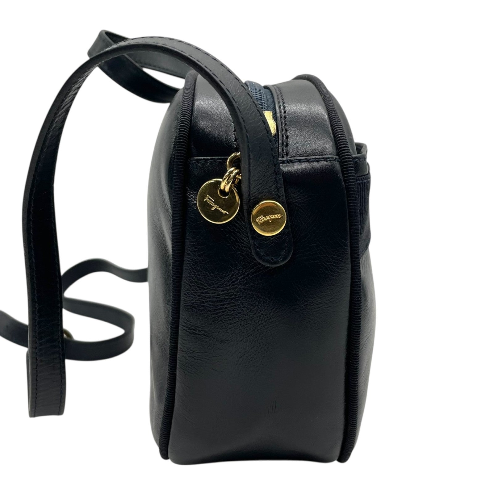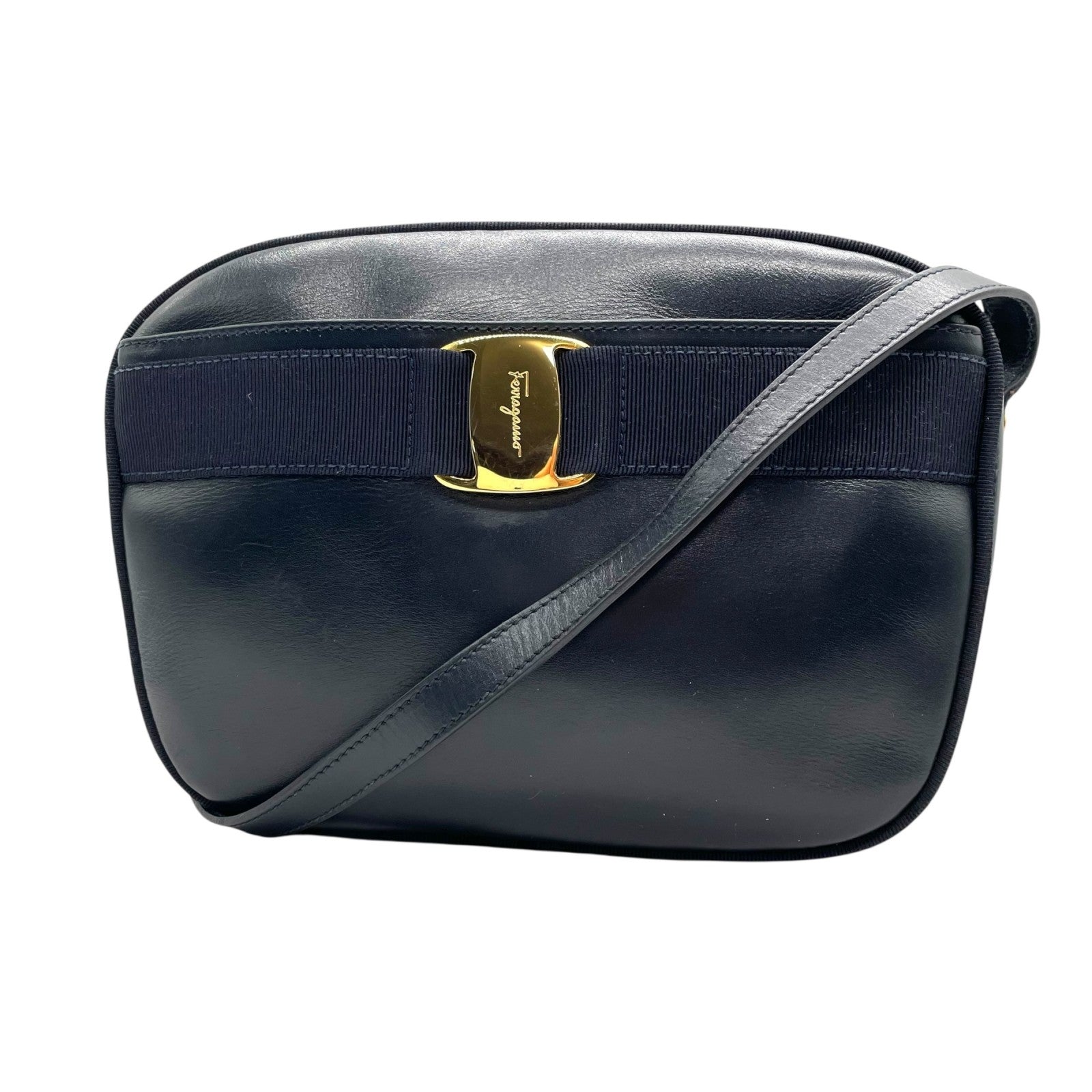 美品 サルヴァトーレ フェラガモ Salvatore Ferragamo ヴァラリボン ショルダーバッグ 紺 ネイビー レザー ゴールド金具 レディース B3