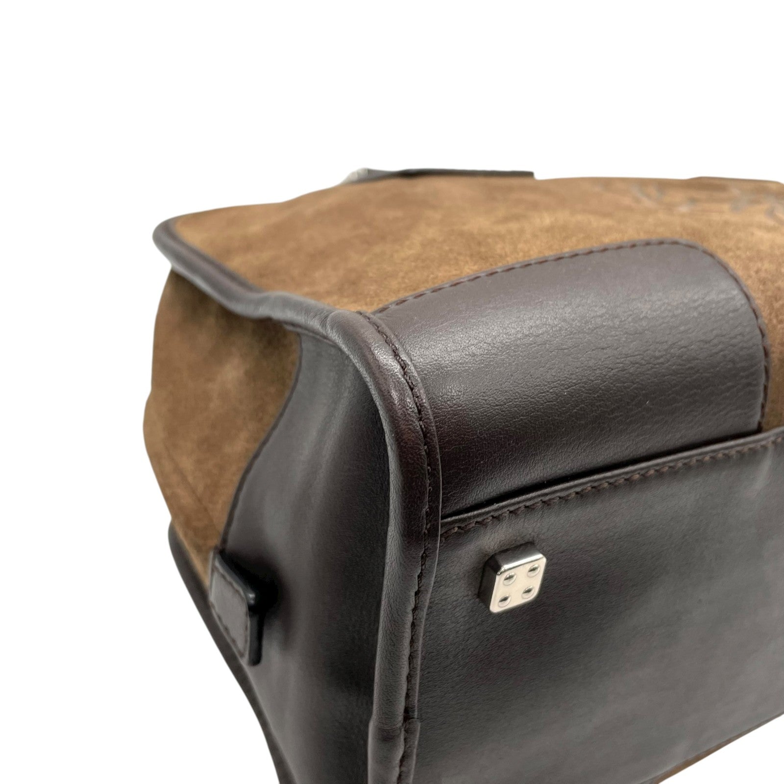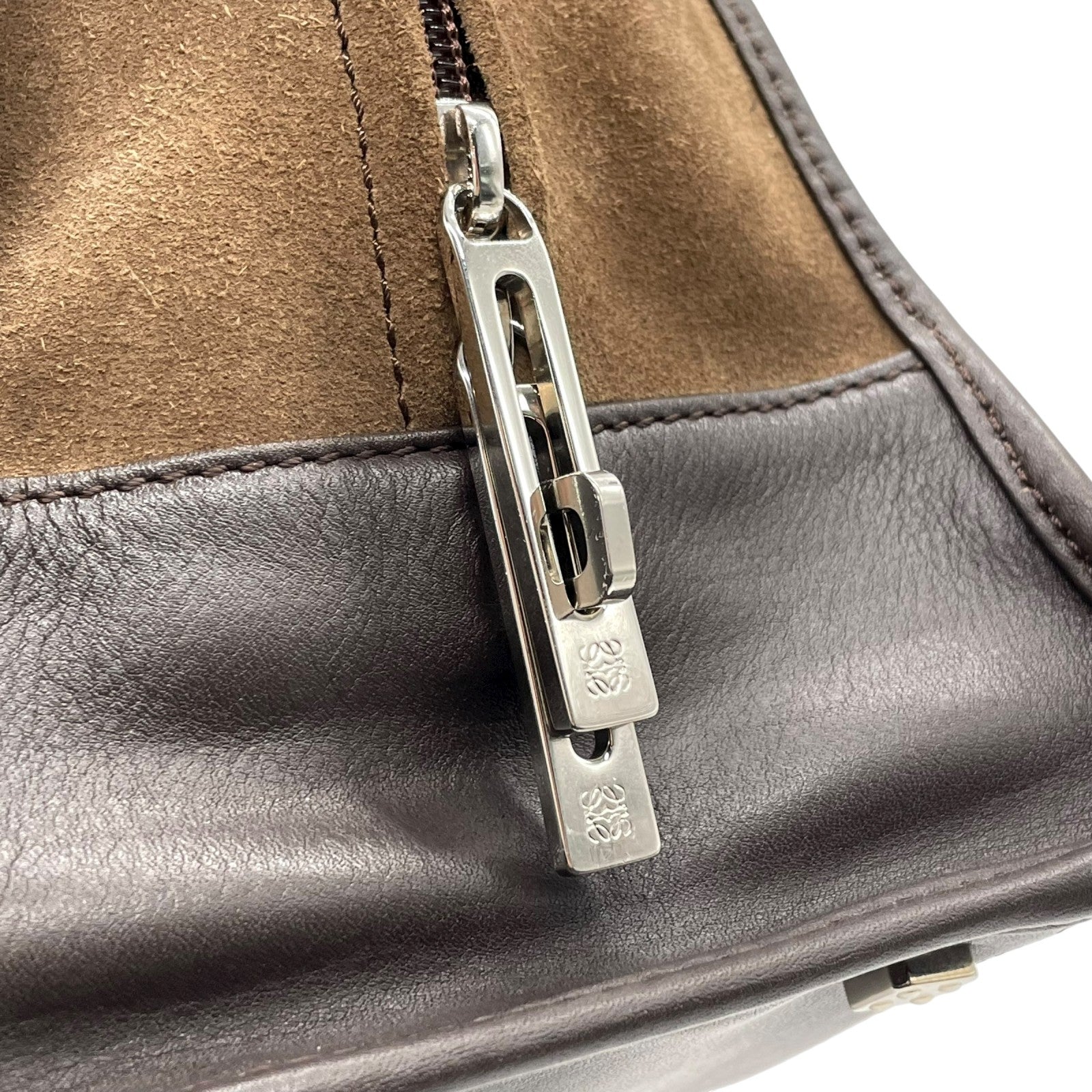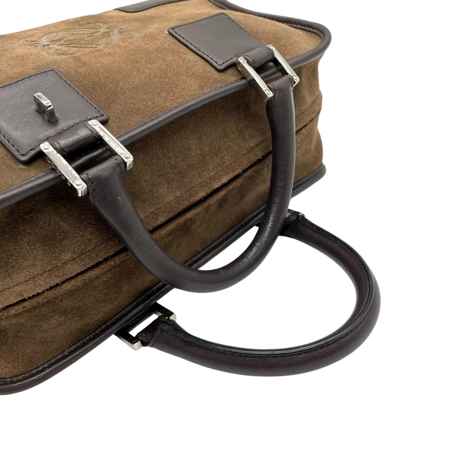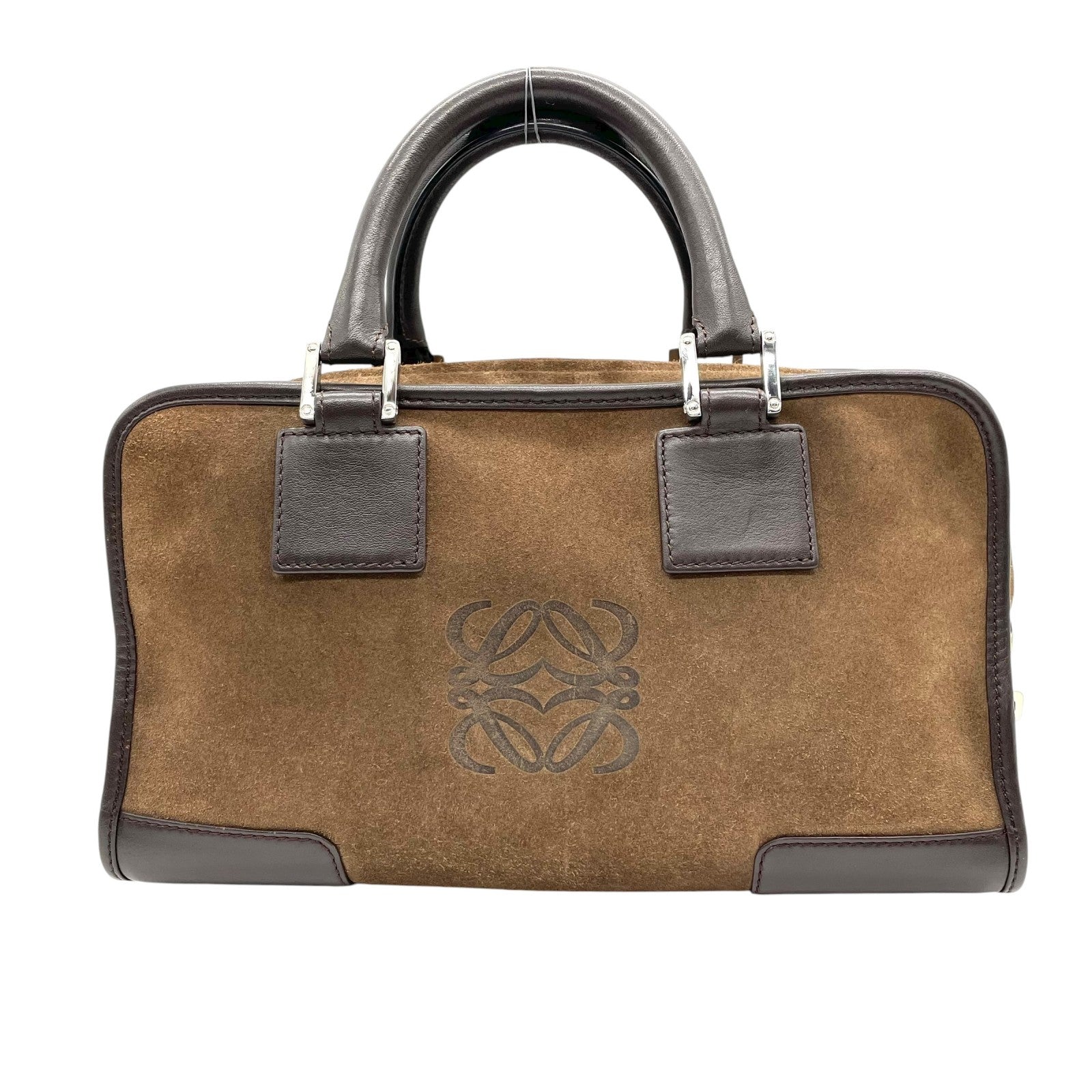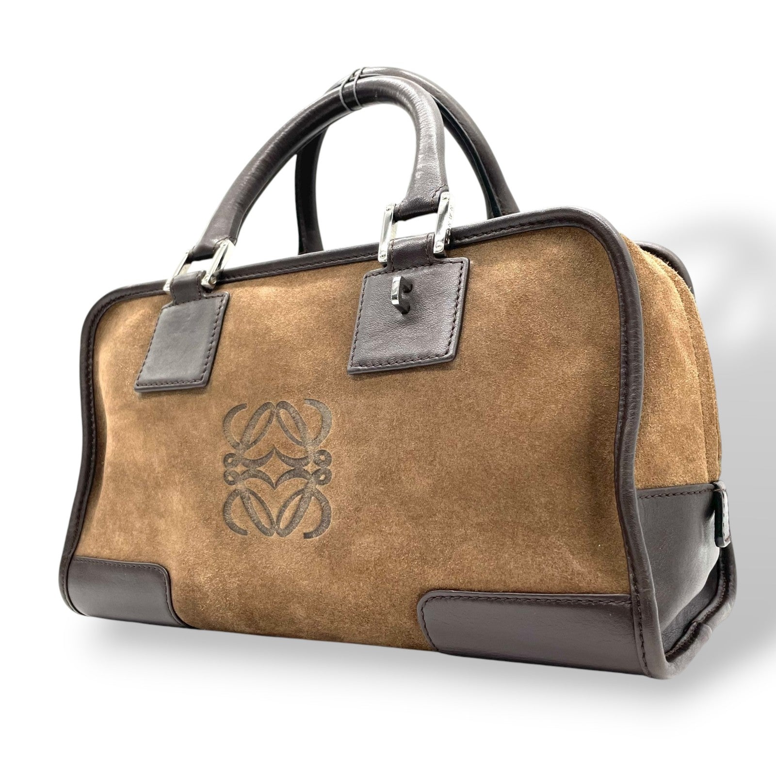 美品 ロエベ LOEWE アマソナ28 スエード×レザー ハンドバッグ 茶色 ブラウン アナグラム ロゴ ヴィンテージ B