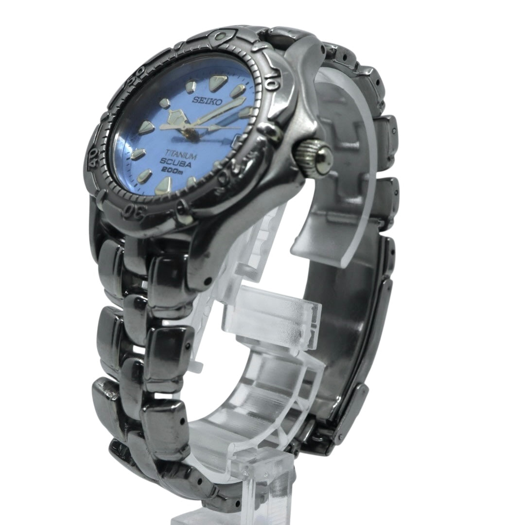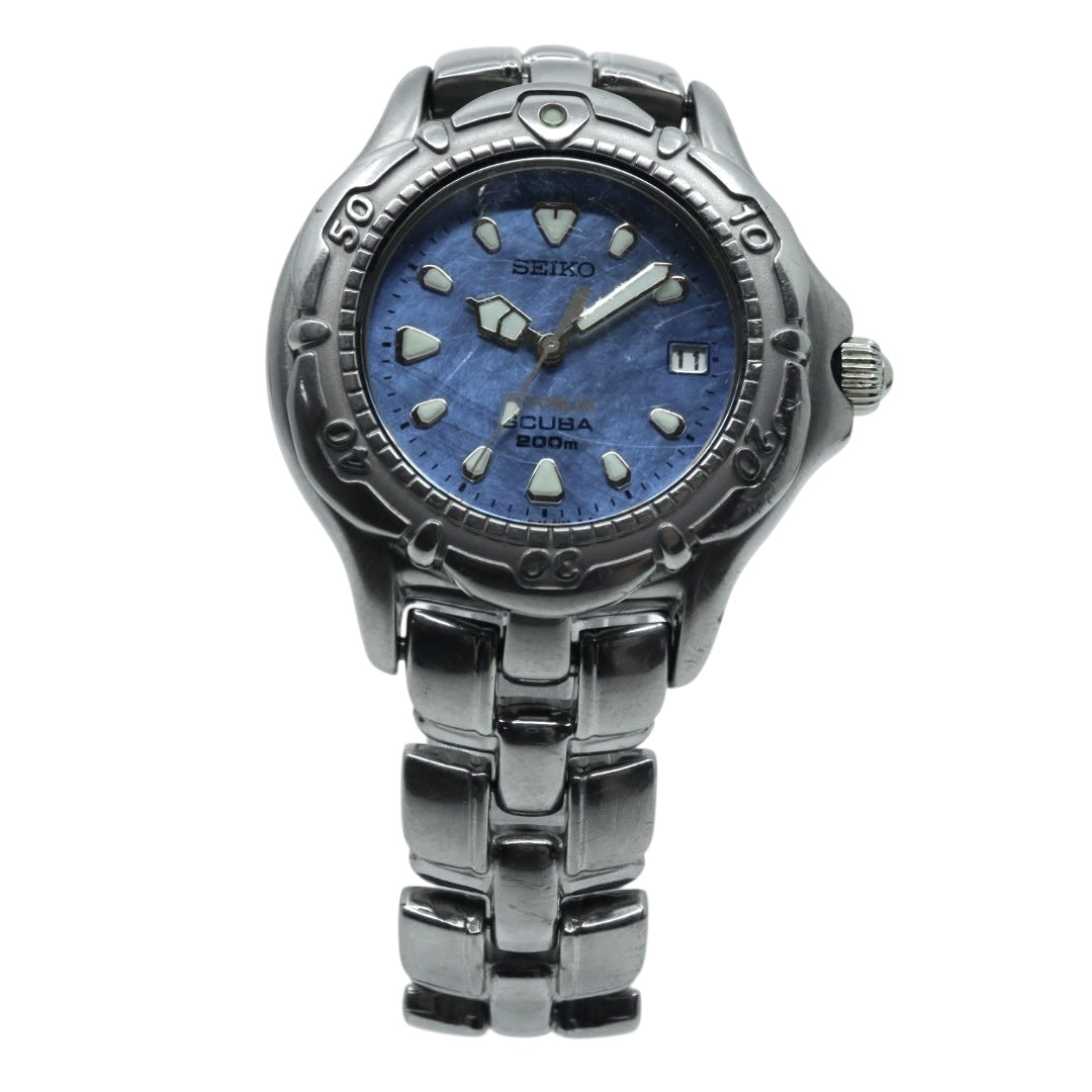 【電池交換済】 seiko セイコー プロスペックス スキューバ 200M 7N35-6120 ダイバーズウォッチ 腕時計 メンズ チタン クオーツ ブルーダイヤル デイト表示 回転ベゼル スポーツ ヴィンテージ 希少モデル クリーニング済み G4